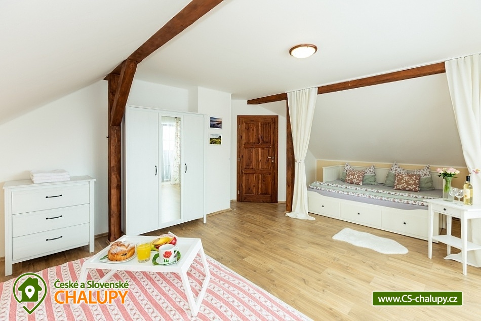 Šumavská chalupa s výhledem na vrch Plechý - ubytování v romantické šumavské chalupě s kachlovou pecí, infrasaunou a zahradou o rozloze 1.400 m2 a překrásným výhledem na nejvyšší horu Šumavy (Plechý). Kapacita chalupy je až 12 osob ve 3 ložnicích. V přízemí chalupy je plně vybavená kuchyně (el. sklokeramická varná deska a pečící trouba, mikrovlnná trouba, lednička, kávovar, myčka, varná konvice, toustovač, topinkovač, mixér, kachlový sporák s plotnou a pečící troubou) a obývací světnice: jídelní stůl, kachlová kamna, sedací souprava a TV. V patře celkem 3x ložnice: 1x 2-lůžková a 2x 4-lůžková (vždy dvoulůžka, obě 4-lůžkové ložnice mají každá jedno dvoulůžko získané rozložením pohovky). K dispozici jsou hračky a dětská postýlka. Sociální zařízení tvoří 2x koupelna (1x koupelna se sprchovým koutem, 1x koupelna s vanou a sprchou) a 2x WC. U chalupy je zahradní nábytek, gril, ohniště s posezením, pískoviště a garáž využitelná jako místnost k úschově sportovního náčiní. Pro pravé romantiky možnost přespání přímo na kachlové peci. K dispozici je Netflix 4K s neomezeným přístupem a Infrasauna pro až 5 osob - saunování bez omezení. Chalupa se nachází v jedné z nejvyhledávanějších a nejatraktivnějších turistických lokalit na celém šumavsku (malebná vesnička Želnava, 2 km od Nové Pece), a to zejména díky svojí poloze na okraji NP Šumava, v těsné blízkosti lipenské přehrady a na dosah místům jako jsou Schwanzenberský plavební kanál, Medvědí stezka, Plešné jezero, Jelení vrchy či zřícenina hradu Vítkův kámen. Na všechny tyto místa vede rozsáhlá síť cyklostras či skvěle značených pěších turistických stezek. Za zmínku jistě stojí pravděpodobně nejkrásnější in - line trasa v ČR, z Nové Pece do Stožce, podél horního toku Vltavy a skrz šumavské lesy. Možnost celoročního využití dokládá 400 km bílých stop, nejdelší bruslařská dráha na světě na zamrzlém Lipně, čítající cca 11 km nebo rozlehlé lyžařské středisko Hochficht. Těšíme se na Vás u nás.