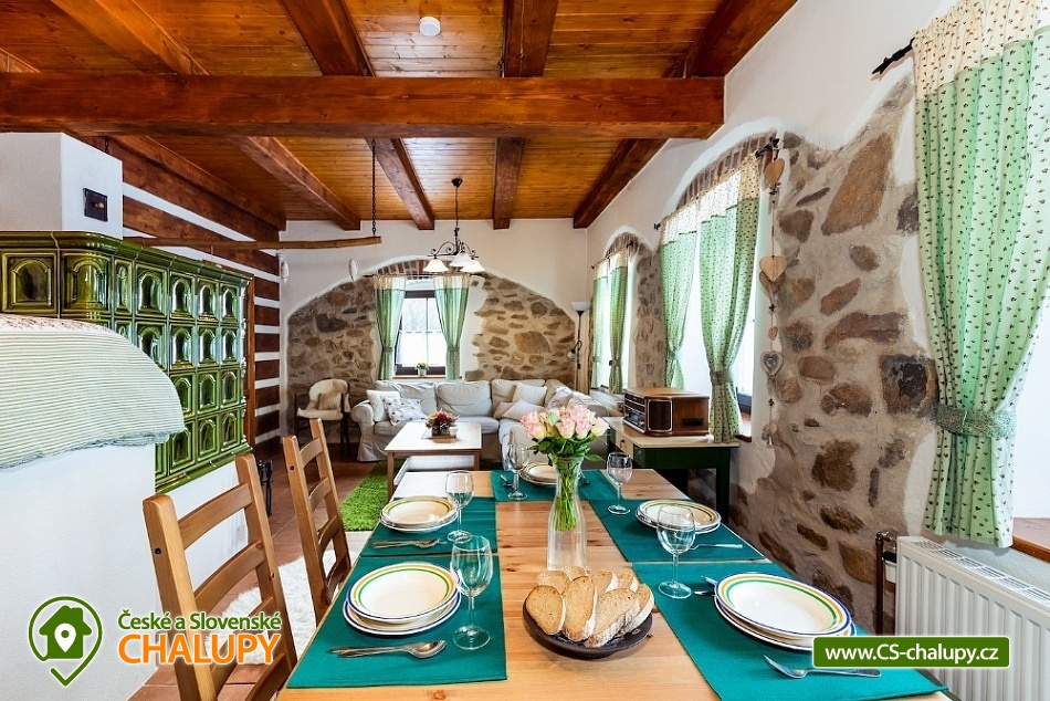 „Ubytování v romantické šumavské chalupě s kachlovou pecí a saunou“