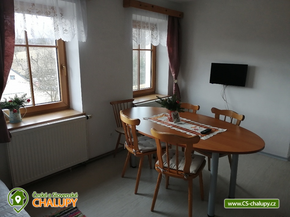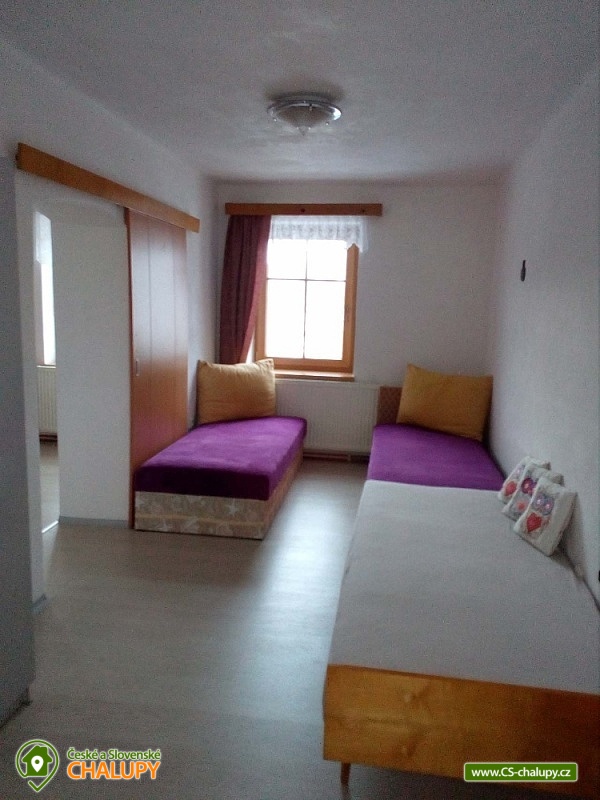 Šumavská chalupa s výhledem na Šumavské kopce a vrch Borek, poloha u obce a hradu Velhartice. Nabízíme pronájem útulné a čisté chalupy s kapacitou týdenních pobytů do 7 osob, víkendové pobyty možnost až 8 osob. V krásném místě proslaveným hradem Velhartice a Janem Werichem. Nádherná příroda, výhled na šumavské kopce i hrad. Chalupa se nachází na okraji malebné vesničky. Jedná se o původní chalupu, nově zrekonstruovanou. Chalupa nabízí krásný výhled do přírody. Z okna můžete vidět Velhartice, jak na dlani a mezi stromy na vás vykoukne slavný hrad Velhartice. Chalupa má 4 místnosti. Ložnice s manželskou postelí a kompletně vybavená kuchyň. Hlavní obývací pokoj s krbovými kamny, televizí, velkým stolem pro společné posezení je další místností, která poskytne lůžka 2 až 4 osobám. Vedle obývacího pokoje se nachází další útulná ložnice se 3 oddělenými postelemi. Všechny místnosti včetně koupelny a WC jsou v jednom podlaží. Pro děti k dispozici dětská dřevěná postýlka a dětská židlička. Plně vybavená kuchyň zahrnuje: pákový kávovar, nádobí, lednice s malým mrazákem, el. trouba, sporák, rychlovarná konvice a mikrovlnku. Chalupa je vytápěna krbovými kamny. Parkování přímo u chalupy. Dostupnost autem, autobusem (spojení z Klatov, Sušice). U chalupy je vám k dispozici venkovní posezení s krbem na grilovačku a bylinkový koutek. Velká oplocená zahrada je místem pro váš odpočinek a zábavu. Pro děti je připravené dětské pískoviště a houpačka, kuželník. Uzamykatelná úschovna kol případně v zimě lyží. Tipy na výlety: Hrad Velhartice, kde probíhá mnoho zajímavých akcí nejen pro rodiny s dětmi. V místě je Werichova chata, lesní rezervace Borek, Velhartický betlém a řezbářství, kostel na náměstí, památný hřbitovní kostel Maří Magdalény a další. Velhartice nabízí krásné procházky okolo hradu Velhartice naučnou stezkou až k Werichově chatě. Dále travnaté hřiště, cykloturistiku, koupání v rekreačním rybníku Bušek (2 km) a rybaření. Soukromé muzeum minerálů pořádá v létě pěkné procházky s výkladem o historii Velhartic, rýžování zlata, stříbra zábavné pro rodiny i jednotlivce. V obci je prodejna potravin - v létě otevřena i v neděli a od chalupy jste tam do 5 minut pěšky pro rohlíky na snídani :-), cukrárna na náměstí, pošta, zdravotní služba, autobusová zastávka. V okolí je možno navštívit hrad Rabí, Kašperk, Švihov, areál koupaliště Kolinec (7 km), synagoga Hartmanice, vyhlídka Svatobor u Sušice, Skleněný oltář Dobrá Voda nebo např. Šumavská jezera.