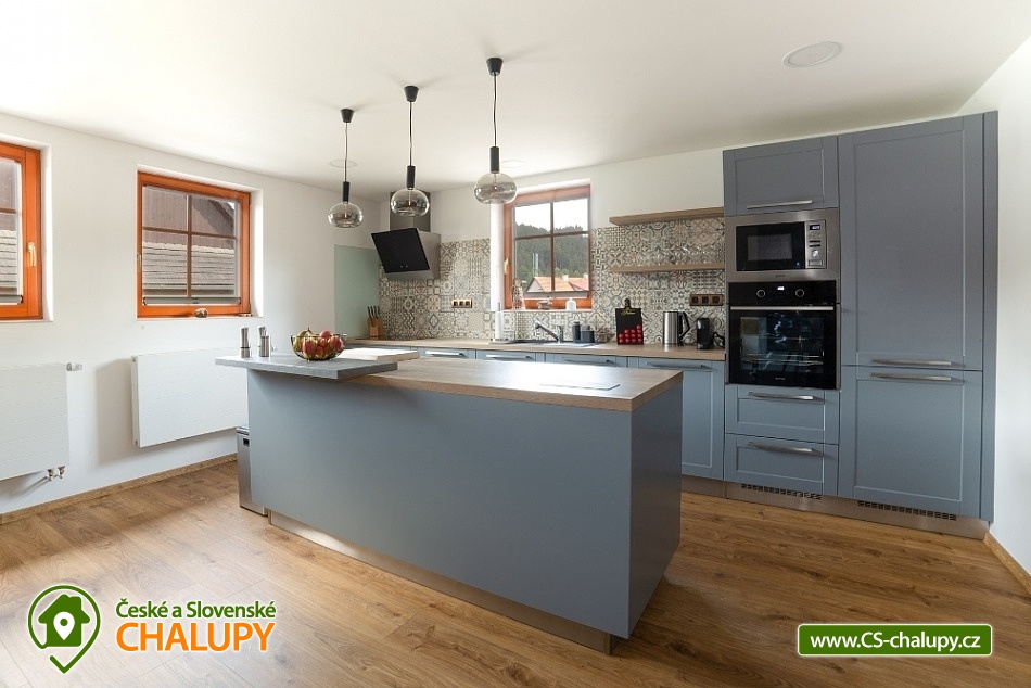 Valašská chalupa poskytuje ubytování pro až 22 osob ve 2 apartmánech. Útulné rodinné ubytování se nachází v krásné valašské krajině, která sama o sobě nabízí možnosti pro aktivní vyžití i klidný odpočinek. Nabízíme komfortní ubytování ve dvou velkých apartmánech: Apartmán Kamil má kapacitu 10 osob a je situován v přízemí. Apartmán Laďa pojme 12 osob a je umístěn v prvním patře. Oba apartmány jsou zařízeny masivním nábytkem, postele jsou vybaveny kvalitními zdravotními matracemi a lůžkovinami. V prostorné koupelně se sprchovým koutem jsou pro vás k dispozici toaletní potřeby, vysoušeč vlasů, sušák na prádlo a kosmetické zrcátko. Kuchyně jsou vybaveny lednicí s minibarem a mrazákem, varnou deskou, troubou, mikrovlnnou troubou, myčkou, varnou konvicí, toustovačem a kávovarem s kapslemi. V každém apartmánu je širokoúhlá led TV. Apartmán Kamil (max. 10 osob): 3 pokoje, 3 koupelny, velká kuchyň + obývací prostor, 1. a 2. pokoj je s manželskou postelí a vysouvacími šuplíky (dvoulůžko + 2 přistýlky na každém pokoji) a 3. pokoj s manželskou postelí. Apartmán Laďa (max. 12 osob): 2 pokoje, 1x samostatné WC, koupelna s WC, velká kuchyň s obývacím pokojem, 1. pokoj až 8 lůžek, 2. pokoj s manželskou postelí a přistýlkou pro dítě. Obývák s kuchyní (možno využít rozkládací gauč pro dva). Apartmány mají vlastní vchod. Lze je však oba propojit uzamykatelnou chodbou. Sociální zařízení: Apartmán Kamil 3 koupelny a 3 WC. Apartmán Laďa 1 koupelna a 2 WC. Vytápění: Ústřední vytápění a krb v Apartmánu Kamil. Pro děti máme připraveny hračky, jídelní židličku a cestovní postýlku. Wi - Fi připojení zdarma ve všech prostorách. Parkování přímo u objektu. Vaše kola, lyže a další sportovní vybavení můžete bezpečně uložit v naší úschovně. Na přání jsme schopni zajistit živou hudbu, malý i velký catering, elektrokola i pro větší skupiny, cyklovýlety s průvodcem a mnoho dalšího dle požadavků hostů. Výlety - Z centra obce vede množství oblíbených a dobře značených turistických tras pro pěší i cyklisty. Doporučujeme navštívit prales Razula s dvě stě let starými buky a jedlemi, přírodní jezero v údolí Jezerné, pramen Vsetínské Bečvy, rozhlednu na vrcholu Čarták, kopec Soláň, jelení oboru, přírodní nádrž Balaton a přehradu Karolinka. Těšíme se na Vás u nás.