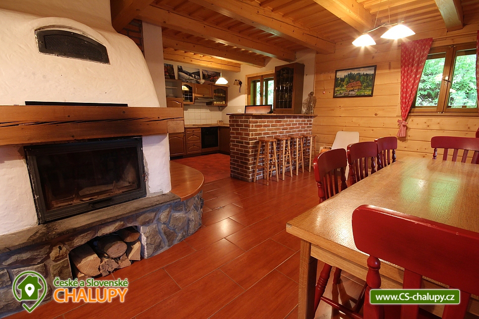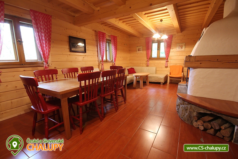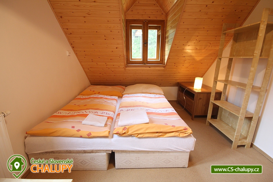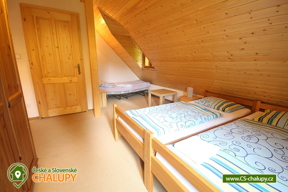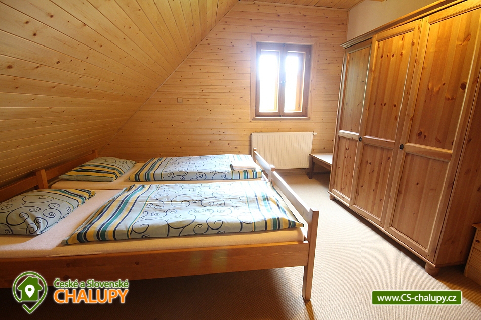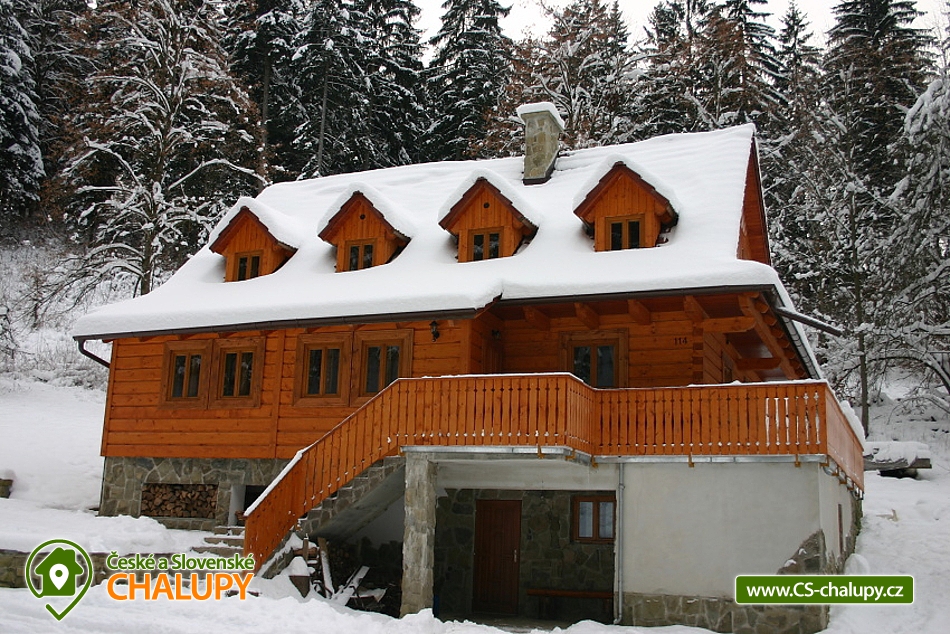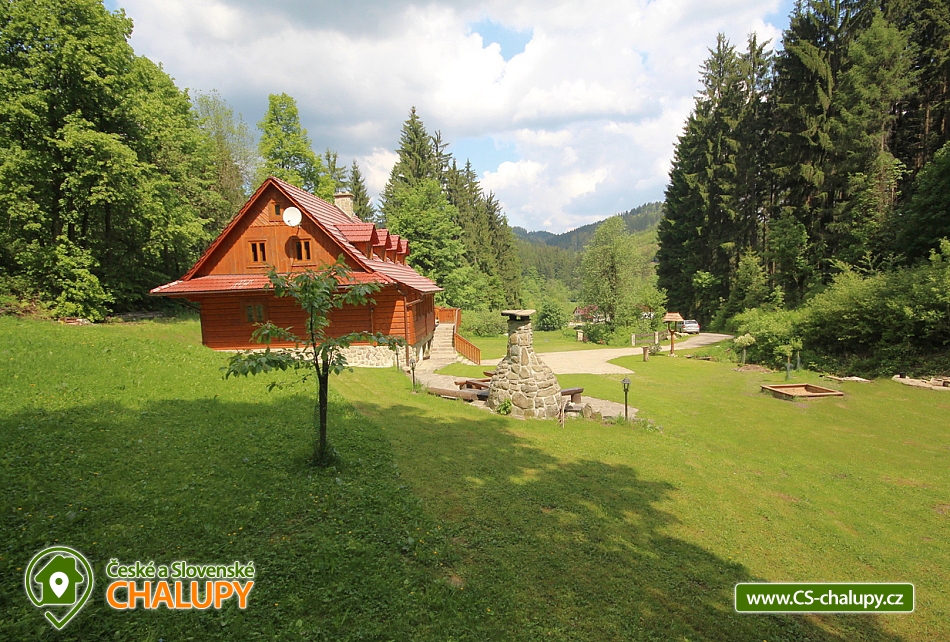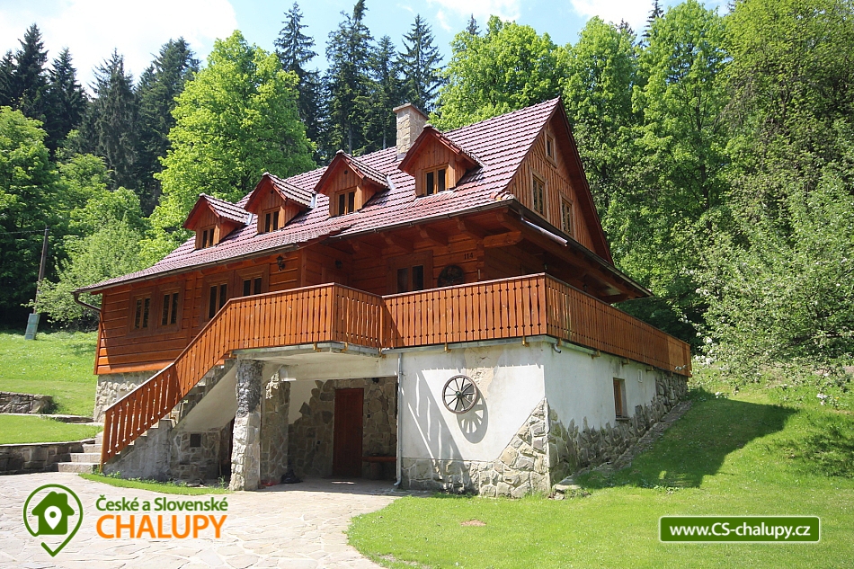 Rent cottage Karolinka - accommodation Beskydy. Comfortable cottage for rent with sauna, Vsetín district. The Karolinka cottage is located in the village of Karolinka, which is currently inhabited by 2,800 inhabitants. The village is situated in a picturesque valley along the Vsetínská Bečva river in the eastern part of the Vsetín district. Wooden cottage is situated in the village near the main road (cca 150m), but in the middle of the forest, so that the visitors are provided with complete and sufficient privacy. Inside there is a living room with a fireplace, a TV and a kitchenette equipped with a dishwasher, ceramic hob, fridge, microwave, kettle and all necessary utensils. In the cottage there are 3 separate apartments (6 bedrooms = 3 x 2 beds and 3 x 3 beds) with their own sanitary facilities (3 x WC + shower or bathtub), of which 2 separate rooms and 1 bathroom are on the ground floor; floor. There is an option for 1 extra bed. Heating is provided electrically and a fireplace with a liner (for wood). A salt sauna and a rest room are available. The cottage has a free area, a children's corner, a fireplace with a seating area, garden furniture and a terrace. The landlord does not live in the building. Parking possible at the cottage. In the vicinity of the cottage we recommend you to visit especially the beautiful nature of the Beskydy Protected Landscape Area. Many marked hiking trails will serve you, one of which will take you to the Miloňová tower. It is a wooden lookout tower that serves local forest fire controllers. From a height of 20 meters you will have a beautiful view of Vsetínské vrchy, part of the Beskydy Mountains and excellent visibility to Hrubý Jeseník. The well-known tourist resort of Pustevny is also worth a visit. It is a settlement that was named after the hermits living here until 1874. For Pustevny there are typical wooden buildings built in folk style at the suggestion of Dušan Jurkovič. You can also climb to the top of Radhošť Mountain, see the giant statue of Radegast - the god of the crop, herds and hospitality, or the town of Rožnov pod Radhoštěm, which includes the Wallachian Museum in the countryside. Rental cottage Moravian-Silesian Beskydy.