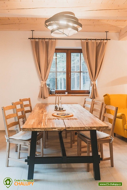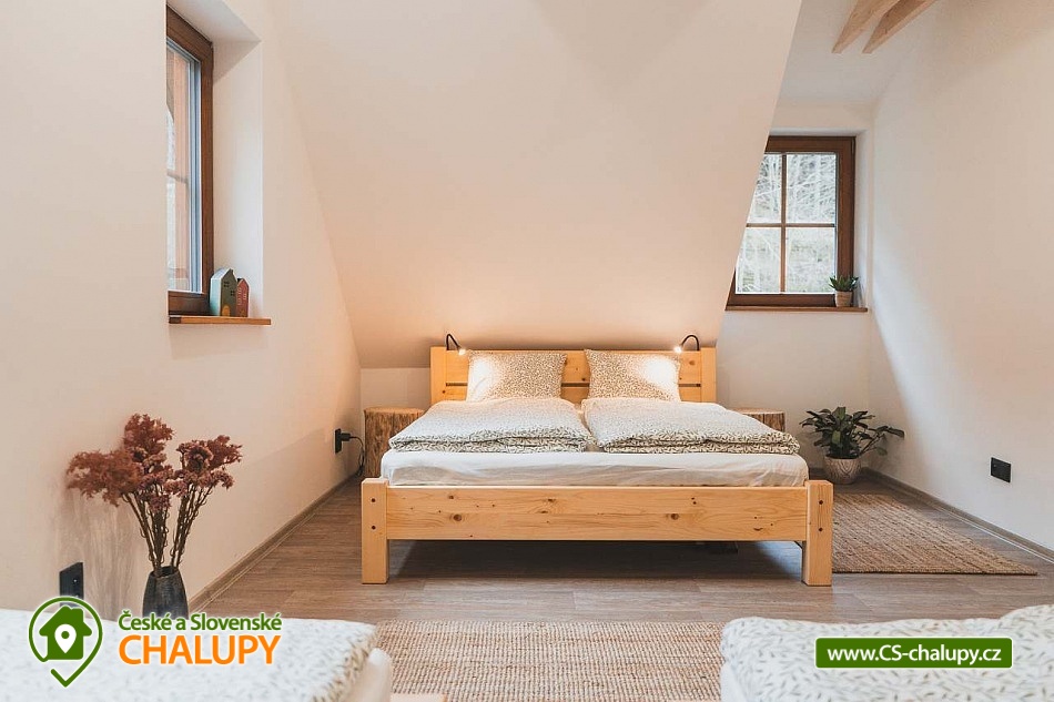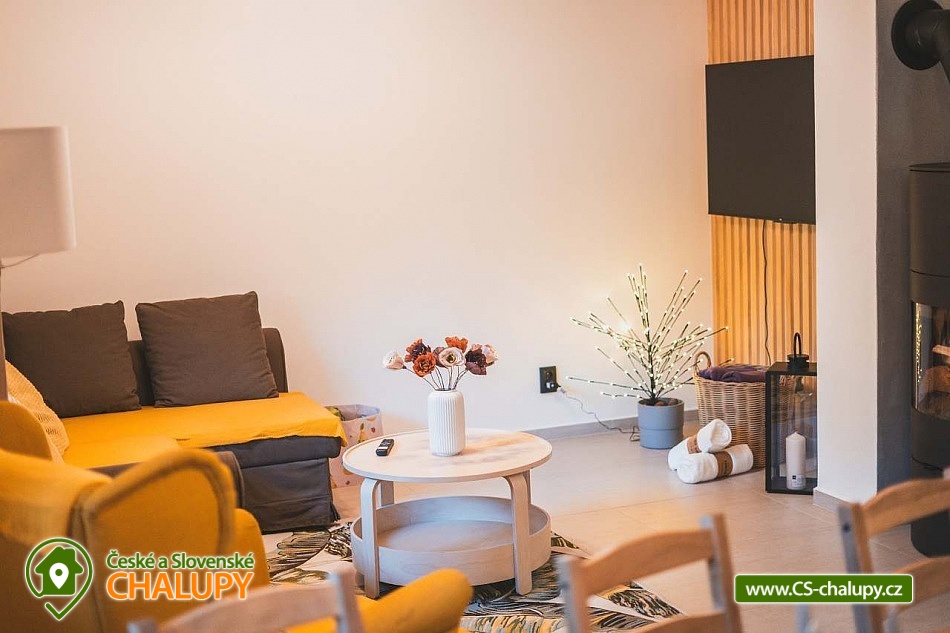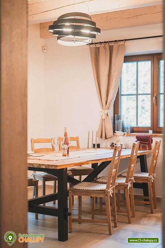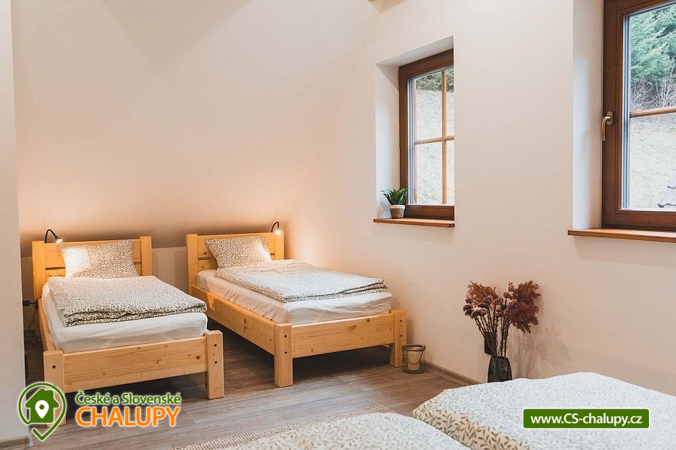 The Krajanka Cottage is located in a secluded area by the forest in the village of Nový Hrozenkov in the heart of Wallachia, just a short distance from the popular mountain resort of Kohútka. In the vicinity you can enjoy the beautiful nature of the Beskydy Mountains. The Krajanka Cottage with a modern interior offers accommodation for 8 people in three bedrooms. A cot is available for rent. Two additional beds can be arranged upon request. All three bedrooms are located upstairs. There are two double bedrooms with a double bed and one quadruple bedroom with a double bed and two single beds. On the ground floor of the cottage, there is a living room with a fireplace, sofa, TV with O2TV, dining table and fully equipped kitchen (coffee maker, dishwasher, refrigerator, induction hob, electric kettle, microwave and toaster). A high chair is available. The sanitary facilities include two bathrooms, one located on the ground floor and the other on the first floor. Both bathrooms are equipped with a shower, toilet, toiletries, hairdryer, soap and towels. There is a washing machine. Heating is provided by underfloor heating. In the living room there is the possibility of making a fire in the fireplace. There is WIFI internet access throughout the building. You can sit outside on the outdoor terrace. There is a fireplace. Parking is available directly at the building. In the vicinity of the cottage there is the possibility of hiking, cycling, swimming, mushroom picking, skiing and cross-country skiing. Swimming options include, for example: the nearby natural gravel swimming pool Na Stanoch "Balaton" or you can visit the Water World of Velké Karlovice (swimming pool, wellness and saunas), the thermal pools of Wellness Horal (Velké Karlovice), the Wellness Center of the Grand Hotel Tatra, the swimming pool biotope Bečva, the Vsetín - Městské lázně swimming pool and others. In winter, nearby ski resorts are available: Kohútka, Čertov, Vranča, SKI Ráztoka - Horná Mariková, Karolínka, Synot - Kyčerka, Huslenky, etc. The Miloňová, Sůkenická (Čarták) and Ztracenec lookout towers, the Antonín Strnadl Monument, Klenov Castle, the Charles Museum, Soláň, the Wallachian Open Air Museum in Rožnov pod Radhoštěm, Pustevny and Radhošť attract visitors to our place. We look forward to seeing you there.