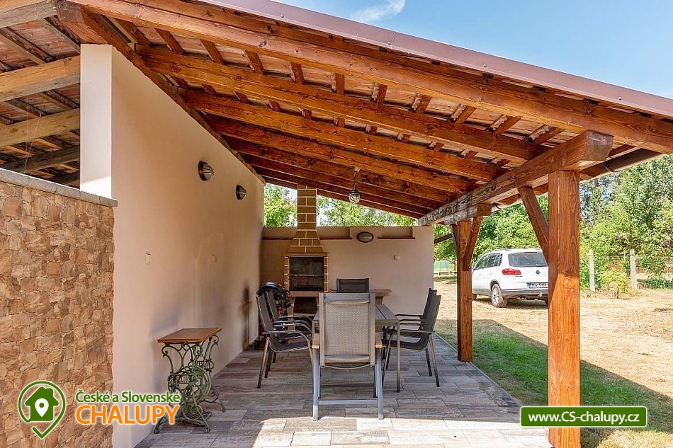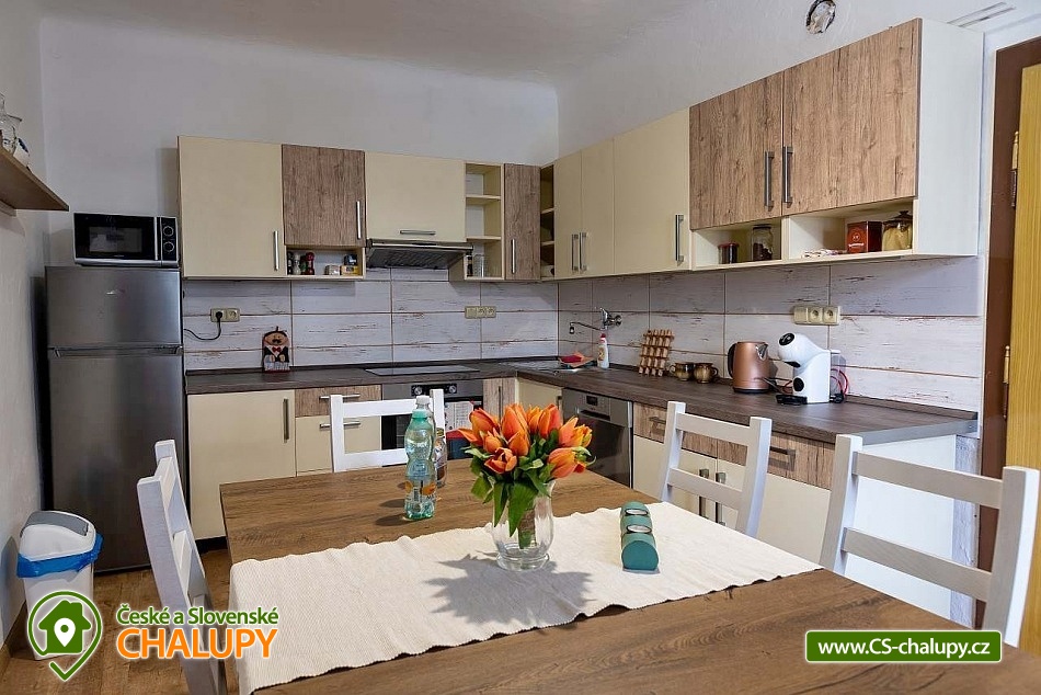Vesnická chalupa Třeboňsko se nachází v jižních Čechách u řeky Lužnice a města Rožmberk nad Vltavou, obec Vlkov v CHKO Třeboňsko. Chalupa je obklopené krásnými lesy, malebnými pískovnami a rybníky či cyklostezkami. Těšit se můžete na klid a soukromí. Chalupa s uzavřeným dvorkem se zápražím, dvěma obytnými místnostmi, kuchyní a koupelnou s WC nabízí ubytování pro až 6 osob. K dispozici je jedna čtyřlůžková ložnice s manželskou postelí, patrovou postelí, skříněmi a psacím stolem a v obývacím pokoji dvě přistýlky řešené rozkládací pohovkou. Součástí obývacího pokoje jsou také krbová kamna, televize, konferenční stůl a dvě křesla. Dále je k dispozici plně vybavená kuchyň (mikrovlnná trouba, sporák, trouba, myčka, rychlovarná konvice, lednička s mrazákem, kávovar Dolce Gusto, základní kuchyňské vybavení - nádobí, příbory, utěrky, prostředky na mytí nádobí a kapsle do myčky) s jídelním stolem. Společné chvíle lze také trávit v tzv. párty místnosti oddělené od obytné části domu a zařízené ve venkovském stylu. Součástí místnosti jsou krbová kamna, prostorný jídelní stůl a také posezení u baru. Sociální zařízení v chalupě zahrnuje jednu koupelnu s vanou se sprchou, umyvadlem, WC a pračkou. K dispozici jsou ručníky a mýdlo. Vytápění je řešeno krbovými kamny v obývacím pokoji a centrálně ovládanými elektrickými přímotopy v kuchyni, obývacím pokoji a ložnici. V celém objektu je k dispozici WIFI připojení na internet. Venku u chalupy lze trávit společný čas v zastřešeném posezení přímo v uzavřeném dvorku nebo v nově postavené pergole s krbem a grilem na rozlehlé zahradě (cca 2000 m2) umístěné za chalupou. Součástí zahrady je také ohniště a prostor na stanování. Děti si vyhrají na pískovišti. K dispozici je kolárna. Celý objekt je oplocený. Parkovat lze přímo u objektu. V okolí chalupy možnost turistiky, cykloturistiky, koupání, houbaření a rybaření. V blízkosti jsou tenisové kurty. Vlkov je obklopen pěti pískovnami, z nichž zejména Vlkovská a Veselská pískovna jsou velmi oblíbená místa pro koupání. Mezi další možnosti koupání patří např.: Mazelovský rybník, rybník Dvořiště, Velký Řečický rybník, rybník Rožmberk, Dubenský rybník, koupaliště Soběslav, Velký Hatínský rybník, lom Dunajovice, bazén Jindřichův Hradec - Frankův Dvůr, atd. Nedaleko obce se prostírají rybníky Vlkovský, Vlček a Krajina, mezi nimiž prochází turistická stezka pro pěší i cyklisty vedoucí k největšímu jihočeskému rybníku Rožmberk. Dále se lze vydat ke Zlaté stoce, vodnímu kanálu propojujícímu pomocí dalších stok rybníky na levém břehu Lužnice. K dalším výletům láká lázeňské město Třeboň - Zámek Třeboň, Masarykovo náměstí s historickými budovami a mariánským sloupem, dům Štěpánka Netolického, Schwarzenberská hrobka, dále Lomnice nad Lužnicí, Soběslav, Tábor, České Budějovice, Jindřichův Hradec, Zámek Červená Lhota nebo Zámek Hluboká nad Vltavou. Těšíme se na Vás u nás.