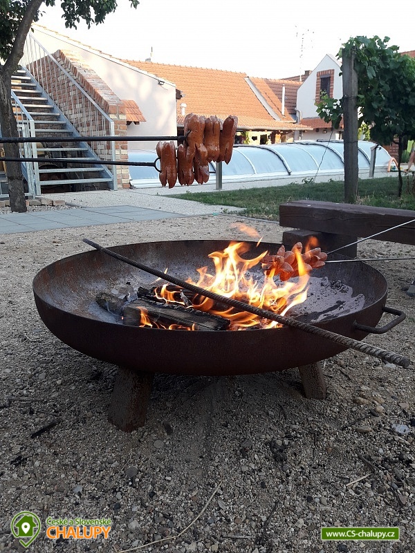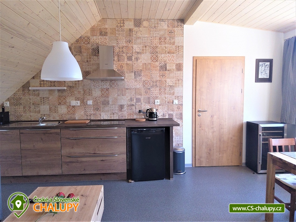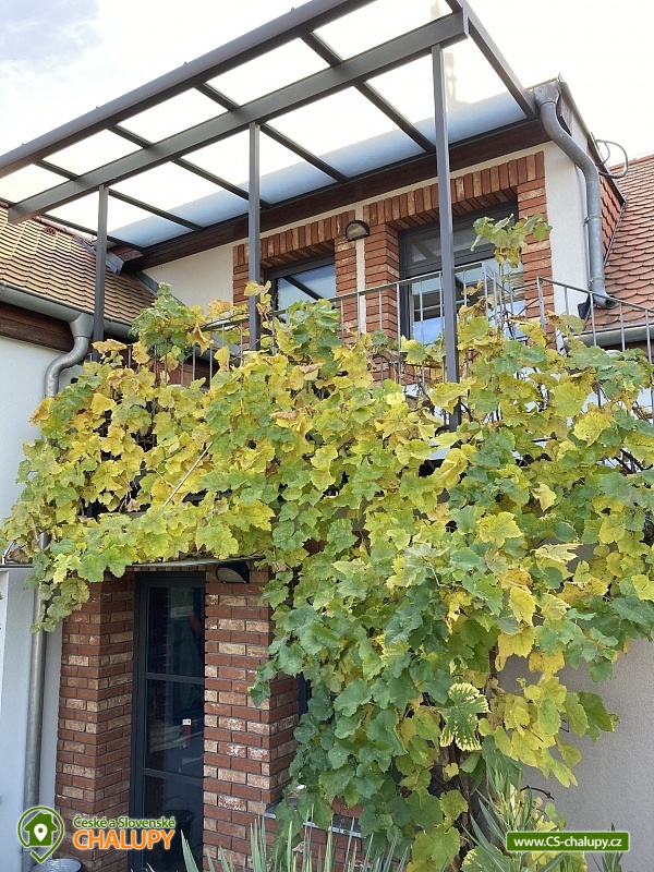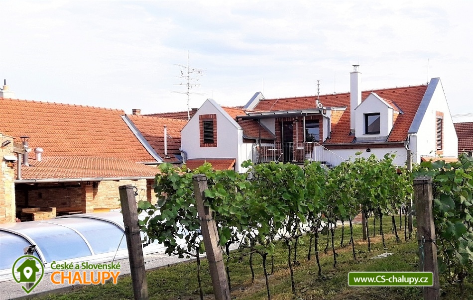 Chalupa bazén a vinný sklep (krytý bazén se slanou vodou) - ubytování vhodné pro rodinnou rekreaci. Nabízíme ubytování u Novomlýnské nádrže, cyklostezky a CHKO Pálava ve 2 plně vybavených apartmánech (5 + 4 osoby) v malebném prostředí vinařského dvora s vinohradem a krytým bazénem o velikosti 3,5 x 8 m se slanou vodou. Společným prostorem pro oba apartmány je zastřešená venkovní kuchyně s grilem a posezením. Tento prostor je vybaven vinotékou a pračkou. Apartmán 1 (73 m2) pro až 5 osob je zařízen v koloniálním stylu a díky své velikosti umožňuje pohodlný pobyt jak pro rodinu, tak i pro skupinu přátel. Zahrnuje 2x ložnici, obývací pokoj, koupelnu a vlastní terasu. V každé ložnici jsou dvě samostatná lůžka a v obývacím pokoji je rozkládací sedačka. Z apartmánu je výhled na Pálavu a na vodní nádrž Nové mlýny. Apartmán 2 (47 m2) pro 3 - 4 osoby (vhodné pro rodinu s dětmi) je útulně zařízen v moderním stylu s výhledem na Pálavu. Zahrnuje ložnici vybavenou manželskou postelí a jednolůžkem. Dále obývací pokoj s kuchyňským koutem, kde je umístěna rozkládací sedačkou š.140 cm, koupelna a vstupní terasa s výhledem. Apartmány jsou umístěny na protilehlých částech dvora, což zajišťuje soukromí hostů. Na pozemku je původní vinný sklep z roku 1858, kde mohou probíhat degustace vína z vlastní produkce. Majitelé jsou k dispozici o víkendech. Obec je díky své poloze jednou ze čtyř obcí napojených na lodní dopravu na vodní nádrži Nové mlýny. Hned za ubytováním vede cyklotrasa Velkopavlovická (přes ulici Isidor), pro cyklistiku lze využít i příjemnou cyklotrasu Kolem novomlýnských nádrží. Díky této poloze je vynikající dostupnost do vyhlášených vinařských obcí - Pavlov, Strachotín, Dolní Věstonice. V blízkosti se nachází Lednicko-valtický areál, Mikulov, Aqualand Pasohlávky a nebo rakouské lázně Laa an der Thaya.
