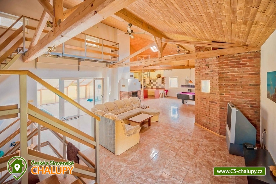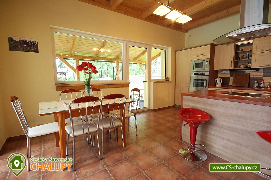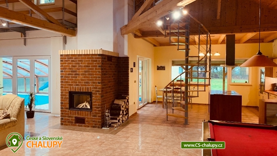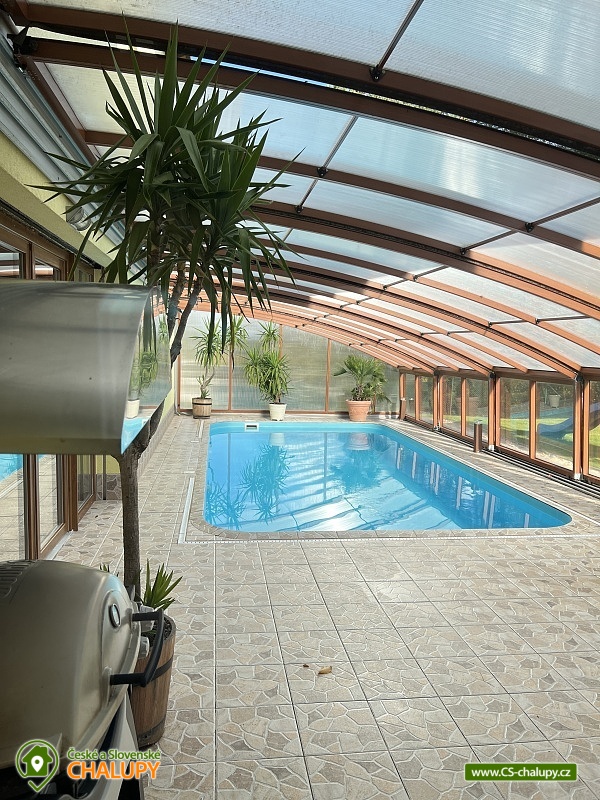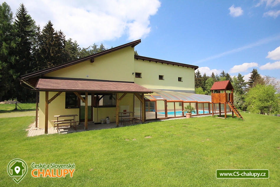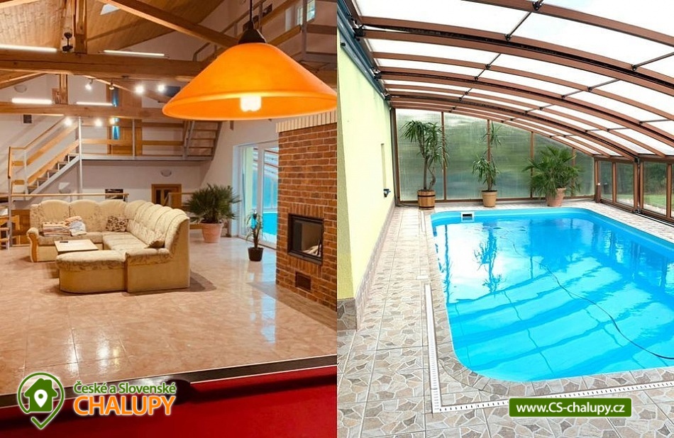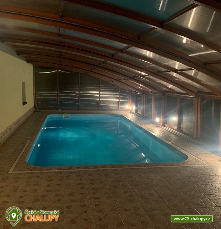 Wellness chalupa s bazénem u hradu Lipnice nad Sázavou, obec Vilémovec - Lipnice nad Sázavou. Mimořádně luxusní rekreační chalupa s bazénem, saunou a vířivou vanou. V přízemí komfortně zařízeného objektu se nachází prostorná hala: plně vybavená kuchyně (sklokeramická varná deska, mikrovlnná trouba, 2x lednice, kávovar, varná konvice, myčka, toustovač), jídelna a obývací pokoj zahrnující 3x sedací soupravu, krb, TV+SAT, DVD a kulečník. Dále ložnice, se 4 lůžky z toho dvakrát jednolůžko dvě palandy. 2. pokoj 1x dvoulůžko a 2x palanda + plazmová televize. V podkroví chalupy je ložnice se 2 lůžky ,1x rozkládací lůžko a jedna válenda. Sociální zařízení tvoří jedna koupelna se sprchovým koutem, umyvadlem a samostatné WC. Druhá koupelna s umyvadlem a vířivkou. V objektu je voda z vrtu. Vytápění objektu je kombinované krb, podlahové, elektrické a solární ohřev vody, fotovoltaika. Solární ohřev vody, fotovoltaická elektrárna(tyto energie vyrobené na střeše se neúčtují). Účtují se pouze energie odebrané ze sítě. Chalupa má vlastní wellness - saunu, vířivou vanu, zastřešený venkovní solárně vyhřívaný bazén se slanou vodou a skluzavkou pro děti (8 x 4 x 1,4 m). Přístup k bazénu přímo z obývacího pokoje a kuchyně. Bazén je provozován od dubna do září. Teplota vody závisí vždy na slunečním svitu. Mimo toto období se bazén používá jako ochlazovací ze sauny. Bazén je v ceně pobytu. Na oploceném pozemku je zahradní altán s krbem a udírnou, ohniště s posezením a přenosný plynový gril. Parkování přímo u domu. Majitel zde nebydlí. V létě v okolí možné houbaření ,rybaření(rybník Váha 2,4km. Rybaření pouze s rybářským oprávněním) a dále také množství turistických tras i cyklostezek s atraktivními cíli. V okolí rekreačního domu Vám doporučujeme navštívit především krásnou přírodu Českomoravské vrchoviny protkanou lesy a řadou turistických cest. Navštívit můžete nedaleký hrad Lipnice v Haškově Lipnici nad Sázavou nebo renesanční zámek ve Světlé nad Sázavou. Mnoho kulturních i sportovních zážitků Vám nabízí i nedaleký Havlíčkův Brod se svým historickým centrem s městskými hradbami nebo Humpolec se svou vyhlídkovou věží a židovskou synagogou. Vysočina - pronájem rekreačního domu s vlastním wellness! Majitel zde nebydlí.