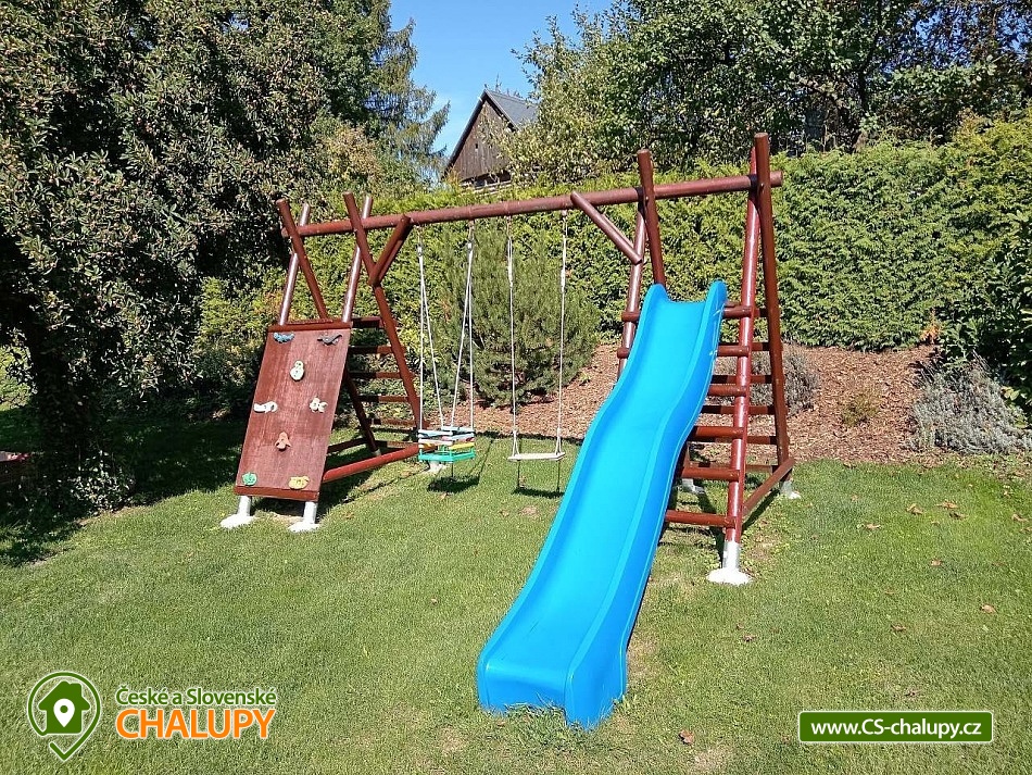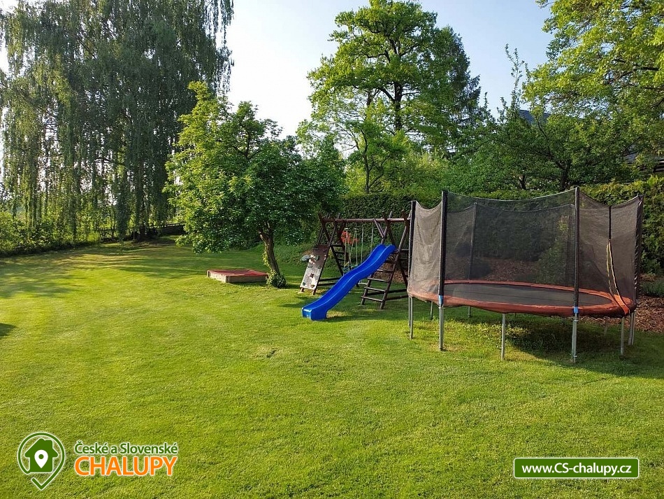 Wellness chalupa s bazénem nedaleko dětského areálu astná země v Radvánovicích u Turnova - Český ráj a výhled na hrad Trosky. Wellness - finská sauna, vířivka a bazén 4x9m. Dále grilování ve venkovním krbu v prostorné pergole a stolní tenis. Prostě dovolená jak má být. A pro děti máme také pískovitě, houpačky, skluzavku a velkou trampolínu. Kapacita chalupy je a 12 osob ve 4 lonicích. Chalupa je rozdělena na dva apartmány. Jeden pro ubytování (pergola, bazén, zahrada a okolí....) a druhý jako zázemí pro sluby ubytovaným. Vchody a zahrady jsou oddělené. V podkroví se nachází 2 pokoje dvoulůkové a 2 pokoje čtyřlůkové s masivními postelemi a s kvalitní ortopedickou matrací ze studené pěny. V přízemí se nachází hlavní obytná místnost s kuchyní, pohovkou, pískovcovým barem a bukovým stolem pro 12 osob. Sociální zařízení: 2 x koupelna se sprchovým koutem a umyvadlem. 2 x WC. Vytápění je mono v krbových kamnech nebo přímotopy. Plně vybavená prostorná kuchyně. Okolí - Ve vzdálenosti asi 2km od chalupy se nachází obchod Troskovice, restaurace pod Troskami, letní restaurace Křenovský enk, kemp Svitačka, přírodní zábavný areál pro děti "tastná země". V okolních historických objektech se koná mnoho letních akcí např. jarmarky, erm, jízda na koni, loutková divadla pro děti, četné cyklostezky a spousta dalích atrakcí. Okolo nai chalupy vede tzv. Zlatá stezka, která spojuje hrad Trosky a Podtrosecké údolí. Můete také navtívit zámek Sychrov, Hrubý Rohozec, Hrubá Skála, hrad Kost, Valdtejn, hrad Trosky, Humprecht, Údolí podtroseckých rybníků, Prachovské skály, Jinolické rybníky, Muzeum panenek v Troskovicích, Muzeum vojenské techniky v Újezdu pod Troskami, Moto muzeum Borek pod Troskami ....atd.