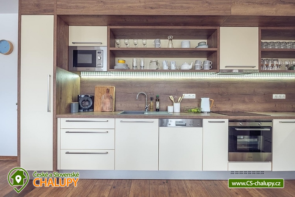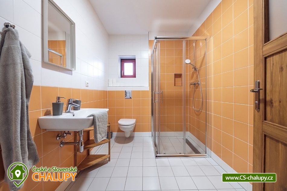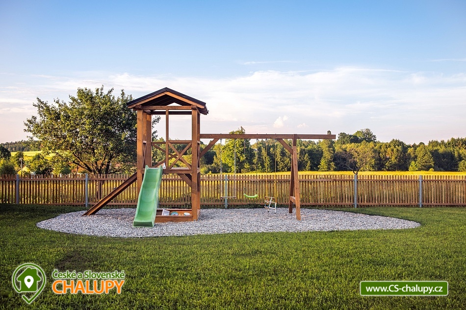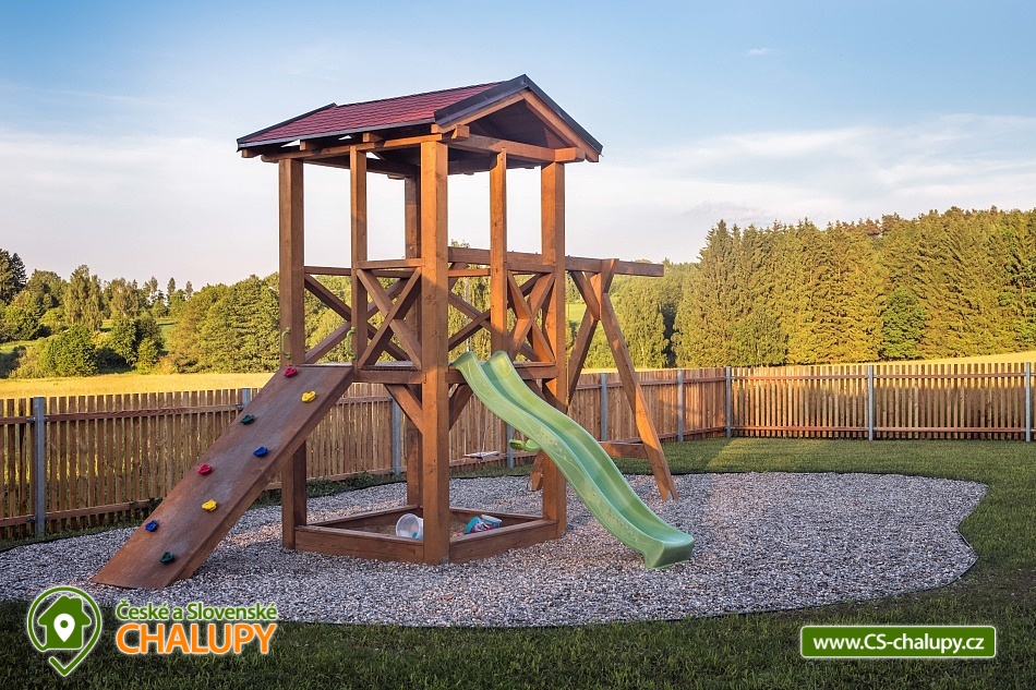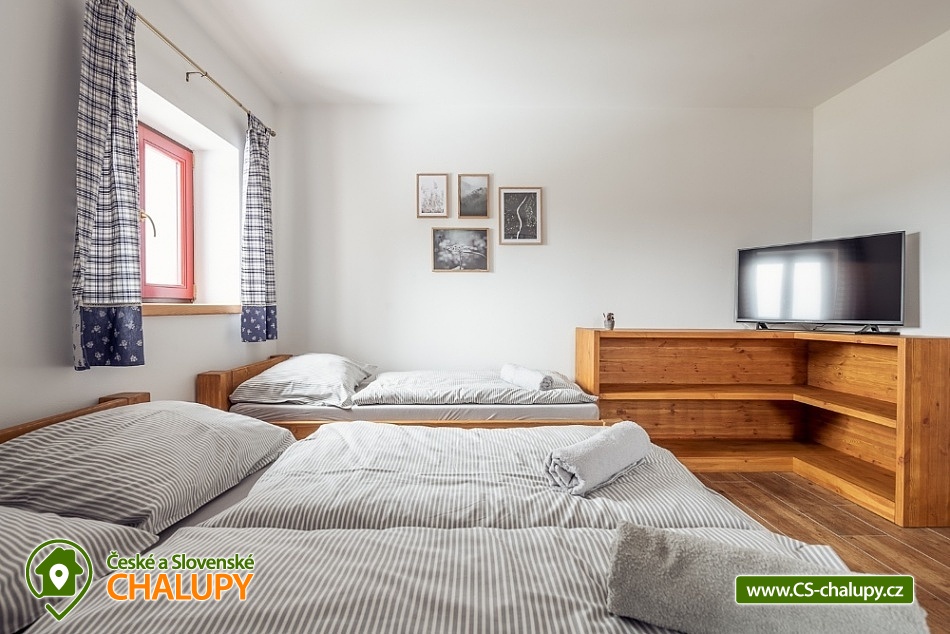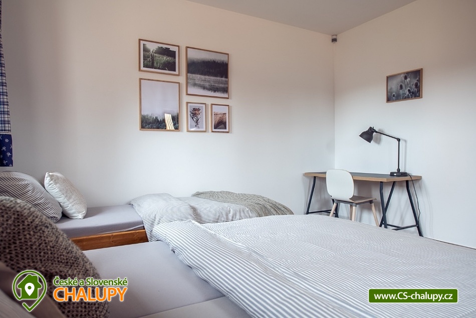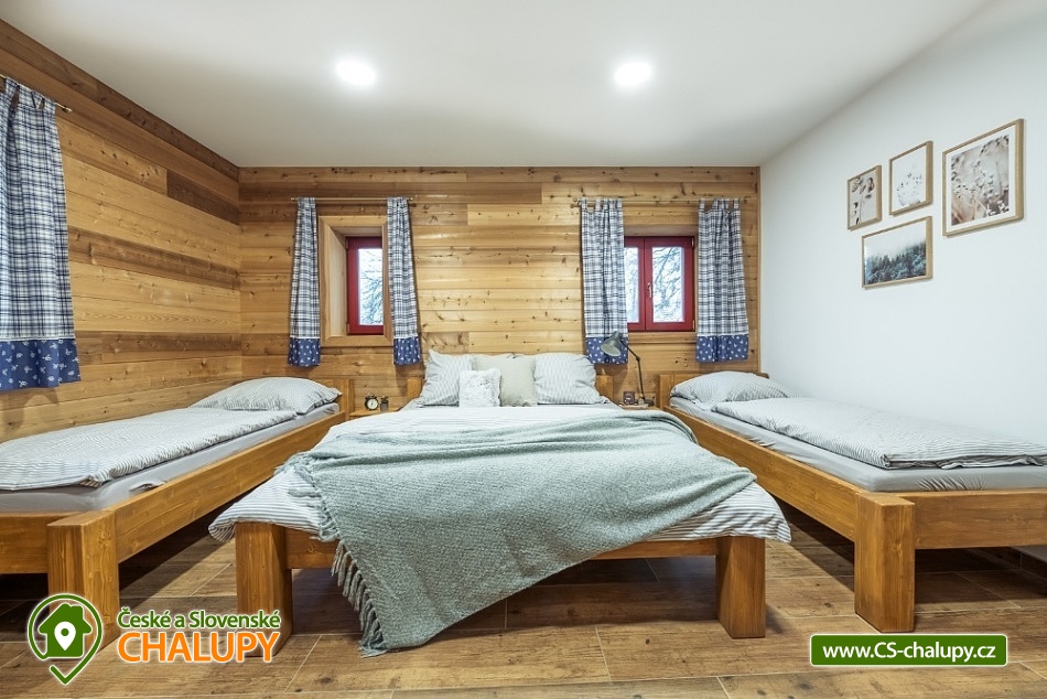 Wellness chalupa s koupacím jezírkem a venkovním bazénem SPA v krásném prostředí v oblasti Novohradských hor v jižních Čechách. Chalupa k pronajmutí poskytuje ubytování pro až 26 osob v 6 ložnicích. V chalupě se nachází 6 prostorných apartmánů s vlastním soc. zařízením. V přízemí jsou 2 ložnice, jedna se čtyřmi lůžky a jedna s pěti lůžky. V patře se nachází 4 ložnice, tři se čtyřmi lůžky a jedna s pěti lůžky. V každém apartmánu je jedna manželská postel a 2 - 3 jednolůžkové postele s lůžkovinami a ručníky. Dále TV - SAT, stůl se židlí a lampou, nočními stolky u postele. Přízemí: Ve velké obytné místnosti s přímým výhledem na přírodní jezírko a louku je TV - SAT, krbová kamna, stolní fotbal, jídelními stoly s 26-ti židlemi a prostorná kuchyně (plně vybavený kuchyňský kout: sklokeramická deska, elektrická trouba, mikrovlnná trouba, velká americká lednice s mrazákem, myčka, rychlovarná konvice, kávovar (Dolce Gusto), toastovač a sendvičovač, výčepní zařízení, dostatek veškerého kuchyňského nádobí.. ). Samostatná místnost s finskou saunou a sprchovým koutem. Patro: Na patře jsou dva menší plně vybavené kuchyňské kouty (sklokeramická deska, el. trouba, mikrovlnná trouba, myčka, rychlovarná konvice, kávovar, velká americká lednice, dvě menší ledničky jako součást kuchyně) a jídelní stůl. WI - FI připojení k internetu v celém objektu. Exteriér: Oplocený pozemek, přírodní koupací jezírko 100 m2,vířivka, zastřešené venkovní posezení, venkovní gril (na dřevěné uhlí), zahradní nábytek, dětský koutek, uzamykatelný přístřešek na uskladnění kol nebo lyží. V objektu se nachází 6 koupelen. Všechny apartmány mají vlastní koupelnu se sprchovým koutem a toaletou. V přízemí je navíc jedna společná toaleta v předsíni a sprcha u sauny. Ze společenské místnosti je kouzelný výhled na zahradu, louku a les. Vytápění chalupy: Tepelné čerpadlo - v celém objektu je podlahové vytápění. Možnost si snadno regulovat teplotu v každém pokoji samostatně. V každé koupelně je umístěn žebříkový radiátor. Parkování u objektu s dostatečným počtem parkovacích míst. V okolí doporučujeme: Nejbližší koupaliště Horní Stropnice 2 km, vodní areál Gmünd 25 km (svět koupání: skalní solný bazén, sportovní sladkovodní bazén, dětský krytý i venkovní bazén, saunový svět: achátová, křišťálová, ametystová), rybník 500 m. Turistika a cykloturistika v jižních Čechách. Výlety do okolí: klášter Zlatá Koruna, Český Krumlov (UNESCO) - množství kulturních a společenských akcí, hrad, otočné divadlo, návštěva CHKO Novohradské hory - Žofínský prales, Terčino údolí, rozhledna na Kraví hoře, tvrz Žumberk, Nové Hrady, v okolí prameny s léčivou vodou, prameniště Pohorského potoka, Trocnov (památník Jana Žižky), Rožmberk nad Vltavou, České Velenice, Gmünd, celodenní výlety do Rakouska.