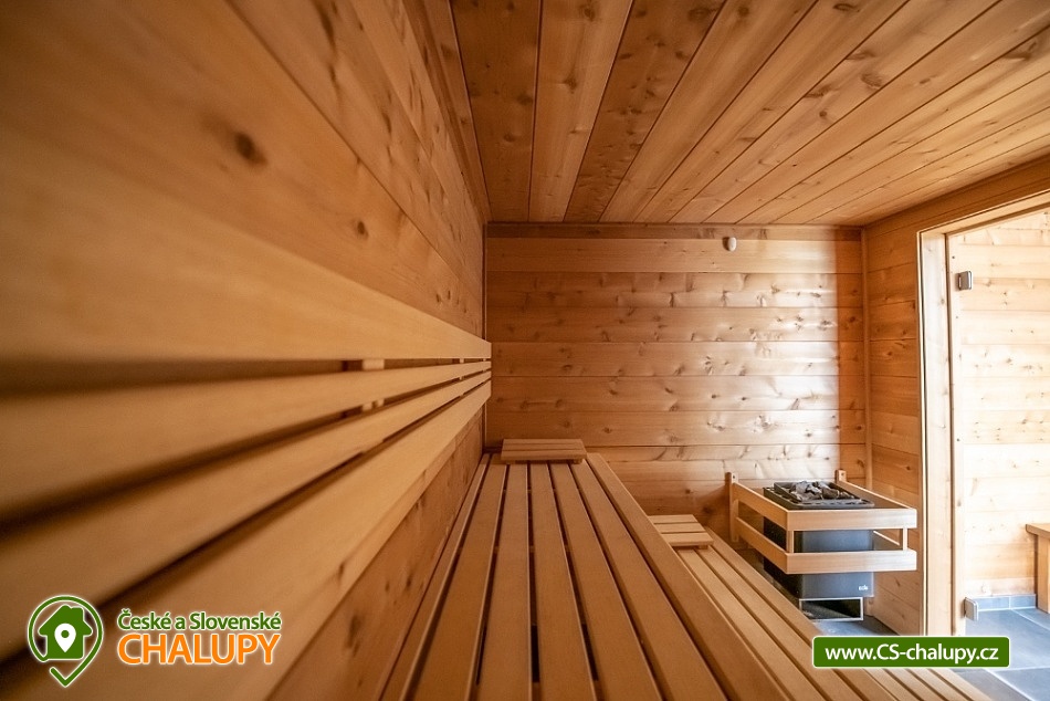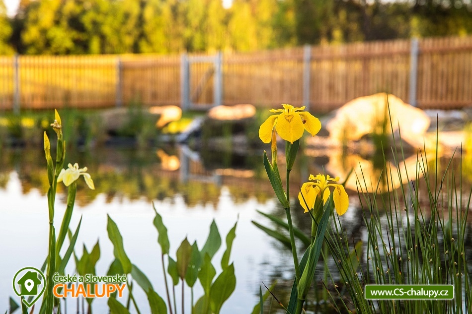 „Wellness chalupa s koupacím jezírkem, bazénem SPA a saunou.“