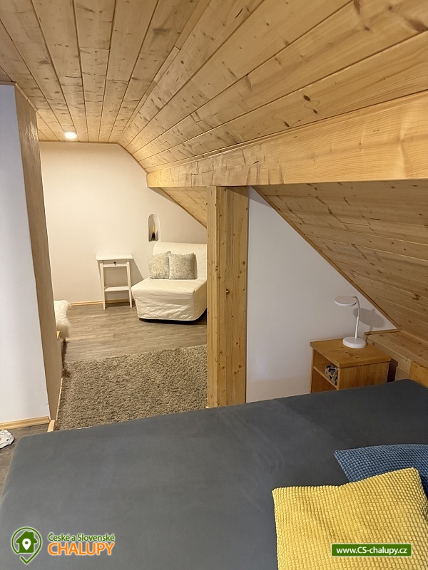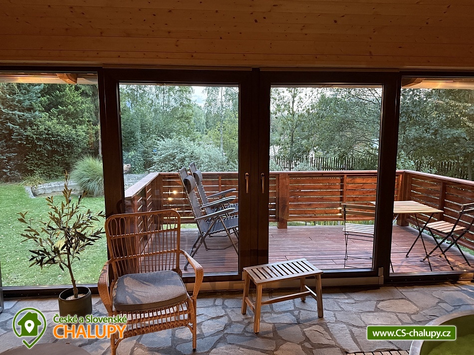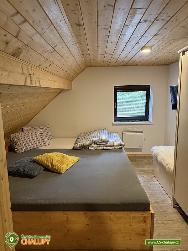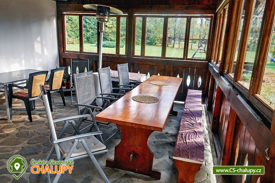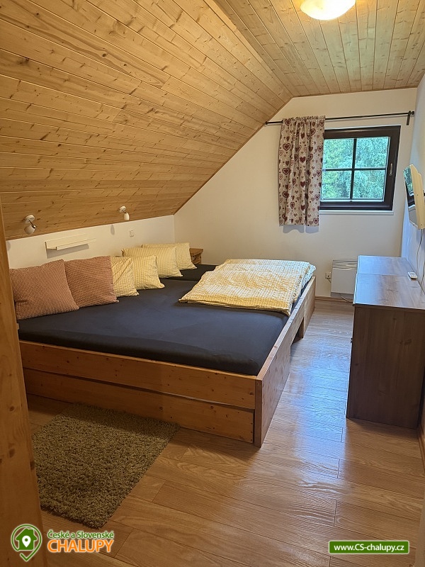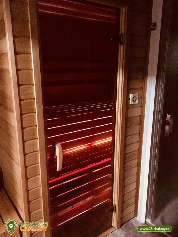Wellness chalupa a koupací jezírko na úpatí hory Radhošť v CHKO Beskydy. Chalupa má kapacitu až 12 osob ve 3 ložnicích. Chalupa s wellness (sauna a vířivka) a koupacím jezírkem na vlastní velké zahradě. Do chalupy se vchází přes prostornou, zasklenou verandu s příjemným posezením i v nepříznivém počasí. Sociální zařízení objektu tvoří 2 samostatné WC a 2 koupelny se sprchovým koutem a žebříkovým topením. Dále v přízemí chalupy naleznete plně vybavenou kuchyň (lednička s mrazničkou, myčka, el. varná deska, varná konvice, kávovar, mikrovlnná trouba, dvě remosky), společenskou místnost se stylovými krbovými kamny, jídelním stolem a TV. Součástí chalupy je zařízená herna s pingpongovým stolem, kde jsou k dispozici i další venkovní hry (petanque, kroket...). Po dřevěných schodech se dostanete do podkroví, kde jsou 3 ložnice: 2 ložnice jsou 3-lůžkové (na 1 posteli umístěná vedle sebe 3 lůžka o velikosti 90x200 cm) a dále mají obě ložnice možnost 1 přistýlku 80x200 cm řešené vysouvacím lůžkem z uvedené postele. Třetí ložnice je také 3-lůžková (na 1 posteli vedle sebe umístěná lůžka o rozměru 2x 80x200 cm a 1x 90x200 cm) s možností 1 přistýlky na rozkládacím křesle (80x190 cm). Vytápění chalupy zajišťuje krb ve společenské místnosti a elektrické přímotopy. U objektu je vlastní rozsáhlý pozemek 3500 m2, koupací přírodní jezírko 8 x 6m, dětské prolézačky se skluzavkou a pískovištěm, gril, ohniště, kuželky, badminton, míče na fotbal a volejbal. Vedle chalupy je sad, kde se nachází minigolf a hřiště pro volejbal/nohejbal. Parkování je možné u objektu. Svojí polohou je chalupa ideálním výchozím bodem pro turistiku a cykloturistiku. V okolí chalupy Vám doporučujeme navštívit krásnou přírodu a známá místa CHKO Beskydy. K těm nejvýznamnějším patří bezesporu Pustevny. Najdete zde typické dřevěné stavby postavené v lidovém slohu na návrh architekta Dušana Jurkoviče. Dále si můžete udělat výlet na vrchol hory Radhošť, odkud lze spatřit jeden z nejkrásnějších pohledů na beskydské panorama. Za shlédnutí stojí také socha Radegasta - boha úrody, stád a pohostinství nebo město Rožnov pod Radhoštěm, jehož součástí je Valašské muzeum v přírodě a známý skanzen. Těšíme se na Vás u nás.