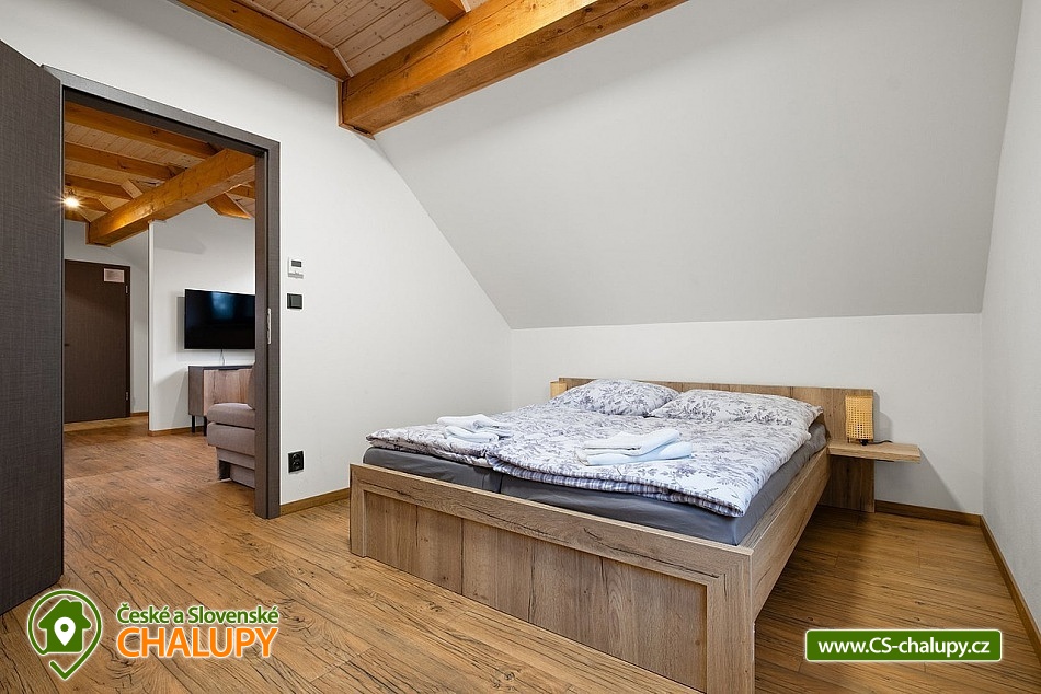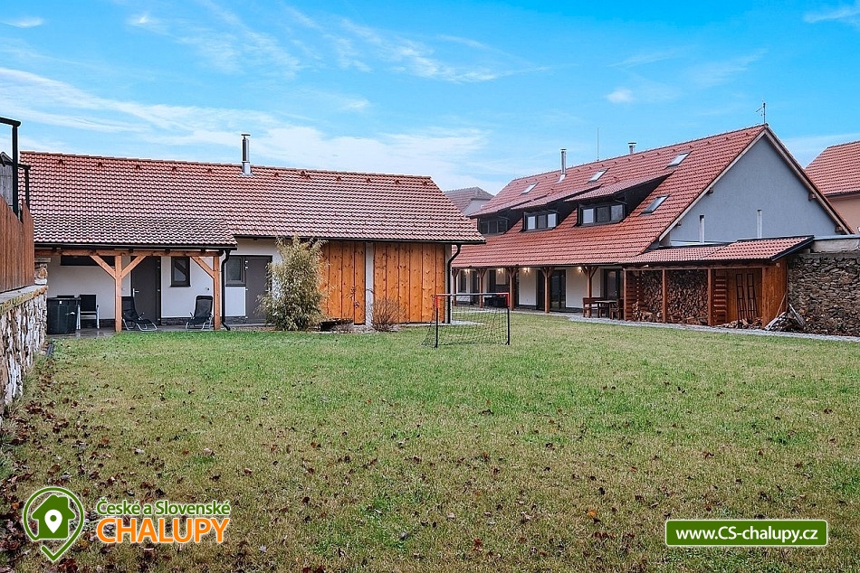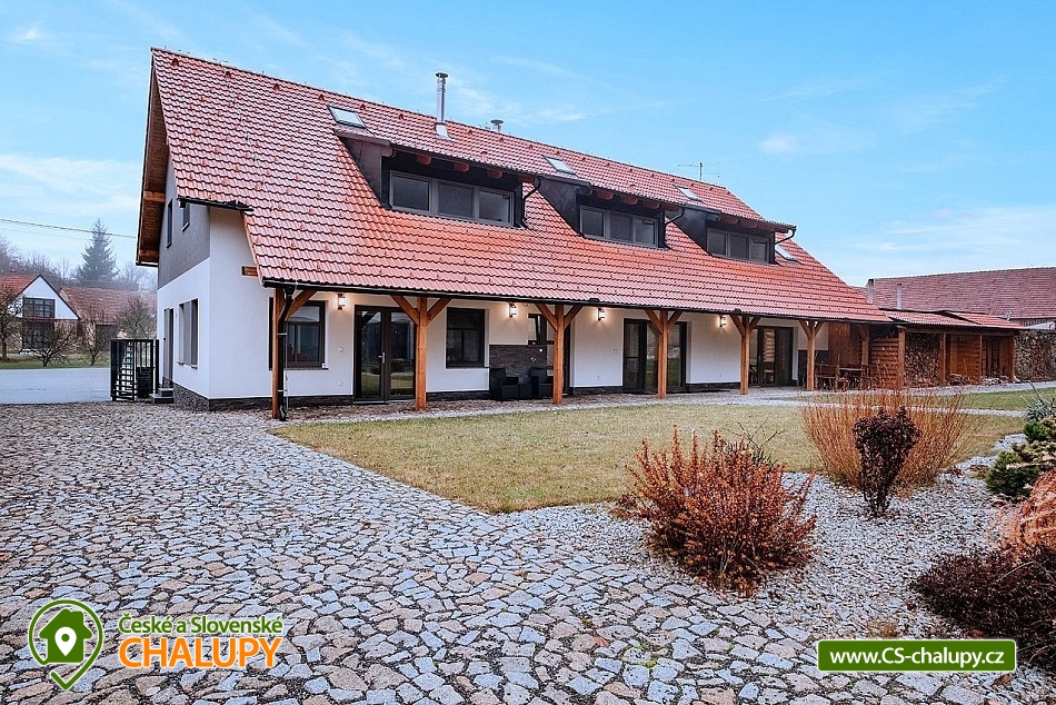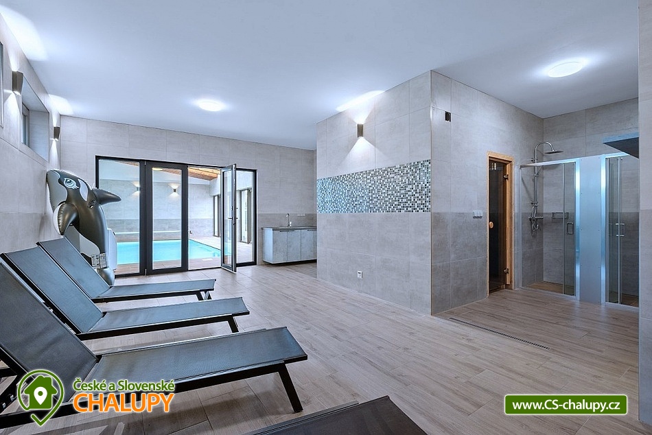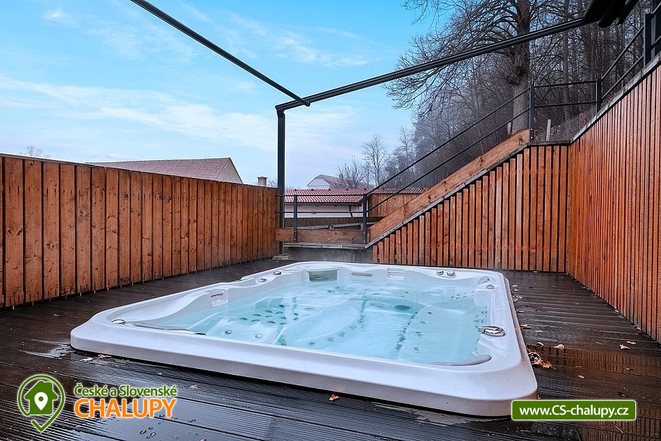 Wellness cottage with an indoor pool near the Oslava and Dalešické dam nature park, Vysočina region. There is a heated indoor saltwater pool, a wood-fired sauna and an outdoor jacuzzi. There is also a terrace with a barbecue and for children there are football goals and a ping-pong table. The cottage can accommodate up to 16 people (8 beds + 8 extra beds) in 4 apartments. DESCRIPTION: APARTMENTS: Comfortable apartments with their own fully equipped kitchen, modern bathroom and comfortable double bed. A sofa bed offers flexibility for additional guests or family. Another spacious sofa is located in the living room. TV, dining table + 4 chairs. Equipped kitchen - electric kettle, microwave, hob, fridge with freezer, toaster. Separate bathroom with shower and toilet. Towels and bed linen. COMMON ROOM: Equipped kitchen - electric kettle, microwave, hob, fridge with freezer, electric oven, toaster, contact grill, dishwasher, coffee maker, bar with tap equipment. Sanitary facilities, fireplace, wifi, TV, couch, tables and chairs. OUTDOOR AREA: covered terrace with garden furniture, grill. Football goals, ping-pong table available. Outdoor jacuzzi. BUILDING WITH SWIMMING POOL: heated saltwater pool, changing room, wood-fired sauna, showers, sanitary facilities, relaxation room with sun loungers. Nearby: Jinošov Game Reserve, Mohelenská Hadcová Steppe, Dalešická Dam, Oslava Nature Park, Šikland, Velké Meziříčí Chateau, Budišov and Valeč, Jaroměřice Chateau Park, Sedlce Waterfalls, Velká Skála and Templštějn Ruins, Studánka u Jakub. Lookout towers: Fajtův kopec, Wilsonova skála, Pekelný kopec and Babylon. We look forward to seeing you at our place.
