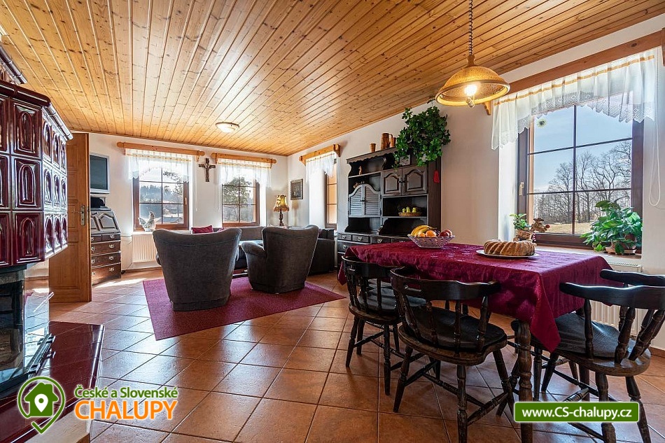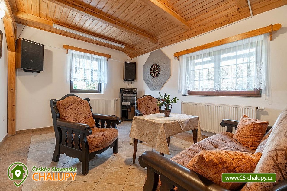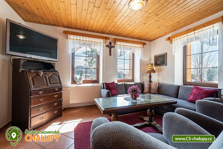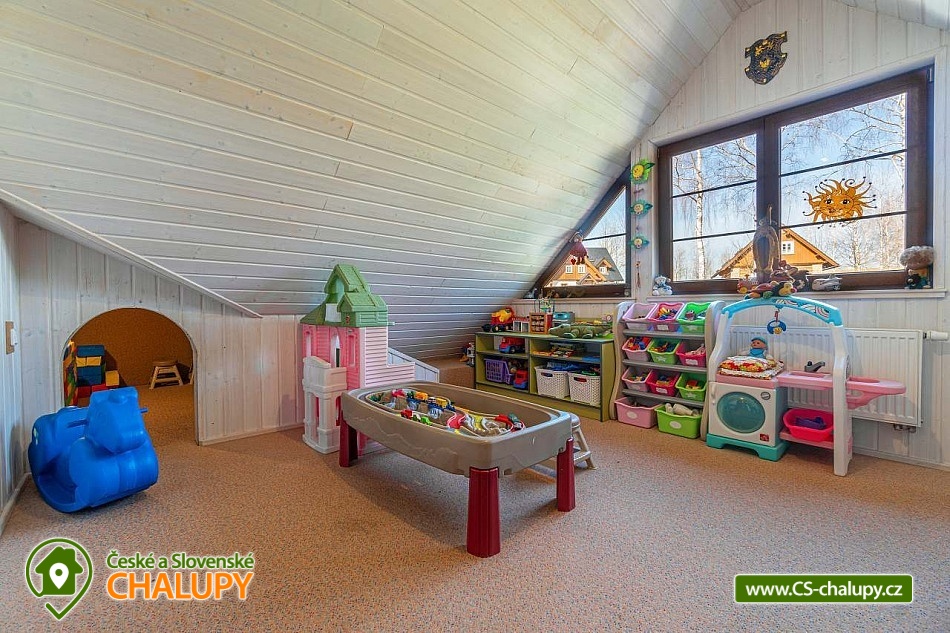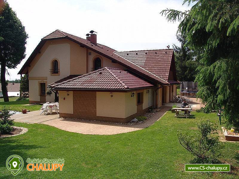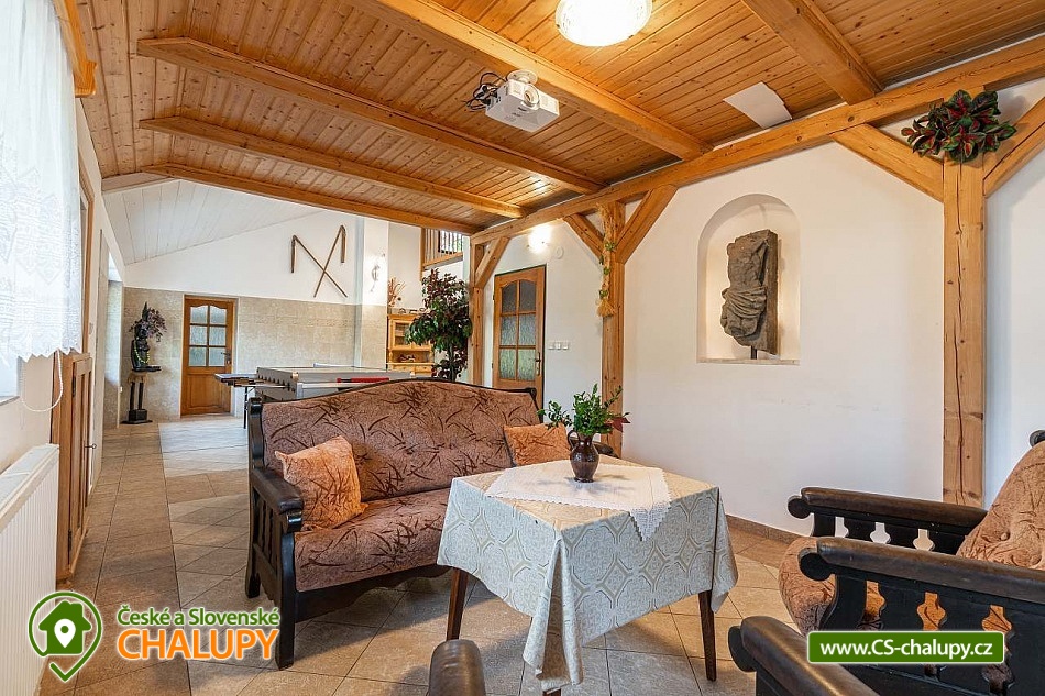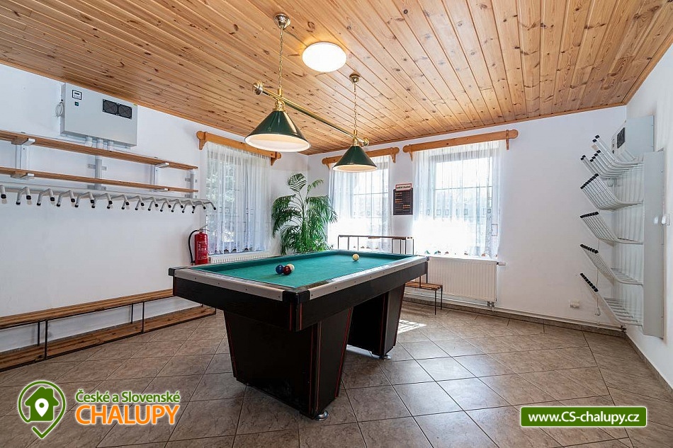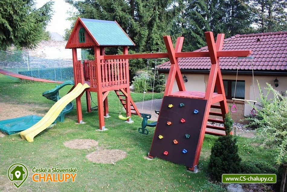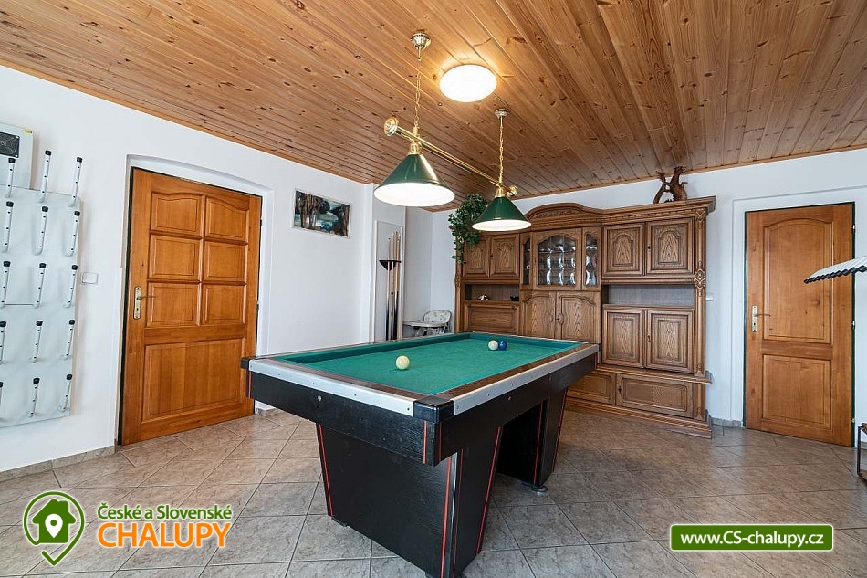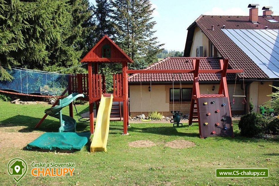 Rent cottage U Kohouta - Rampus. Accommodation cottage with indoor swimming pool and sauna Orlické hory. Spacious, luxuriously furnished holiday cottage is located in the picturesque village of Rampus. Inside a very comfortably furnished cottage there is a fully equipped kitchen (refrigerator with freezer, dishwasher, stove with ceramic hob and oven, microwave, electric slicer, robot, toaster, coffee maker) and a dining room with a living room where there are fireplace tiled stove , TV + SAT, internet connection and DVD player. There is a large hall where you can play darts, billiards, table tennis, table football and use the sauna and beer cooling. There is also a home cinema: projection screen, speakers, projector. On the ground floor there is a stylishly designed room with a relaxing pool with pearl bottoms, massage jets, seat cushions and lighting. At the pool shower, and toilet. On the first floor there is a fully equipped children's playroom, 2-bed apartment, kitchenette, private bathroom and toilet. There is also a second apartment with 2 beds and 2 extra beds, kitchen, private bathroom, toilet and third apartment with 2 beds, bathroom and toilet. On the 1st floor there is a children's room with a bunk bed, a double bed, a cot and a children's chair. On the second floor there is a loft room with 4 beds. The heating is provided by the central heat pump, the floor heating and the fireplace insert with a warm air distribution on the cottage. There is a volleyball court, a football field, a trampoline with a safety net, a children's garden for children, 2 sandpits, 2 slides, a swing, garden furniture, a barbecue and a sitting area on a wooden terrace overlooking a small pond. Above the cottage is covered outdoor seating. Parking is possible at an object for up to 6 cars. The cottage is close to cross-country skiing tracks and cycling routes. The newly opened ski slope in Zdobnice is just 3 km away from the cottage. Nearby ski resorts around: Ski center Zdobnice, Říčky in O.h., Rokytnice v O.h. - Farak, Orlické Záhoří - Černá Voda, Start - Deštné v Orlických horách, Orlické Záhoří - Jadrná, Deštné v Orlických horách. The scenic area of the Orlické Mountains near the border with Poland attracts visitors all year round. Long views, beautiful folk architecture and several important cultural monuments await you. The most important are Rychnov nad Kněžnou, the Renaissance chateau Častolovice, Nové Město nad Metují, Doudleby nad Orlicí, Opočno and Potštejn Castle. To the most visited places of Orlické hory belongs the educational trail Zemská brána, visit to the fortress Hanička and Šerlišský Mlýn. If you are with children, we recommend visiting the ZOO in Dvůr Králové n. L. or going swimming in Dobruška, Vamberk or Rychnov nad Kněžnou. We recommend to visit the Lanopark and Motopark in Říčky and Deštné in Orl. mountains. List of listed locations and many other tips for trips will be handed over on arrival.