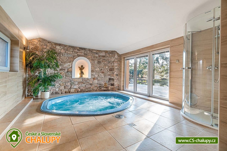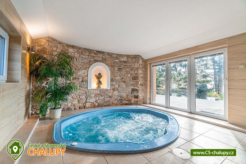 „Chalet U Kohouta Rampuše: Indoor massage pool and sauna.“