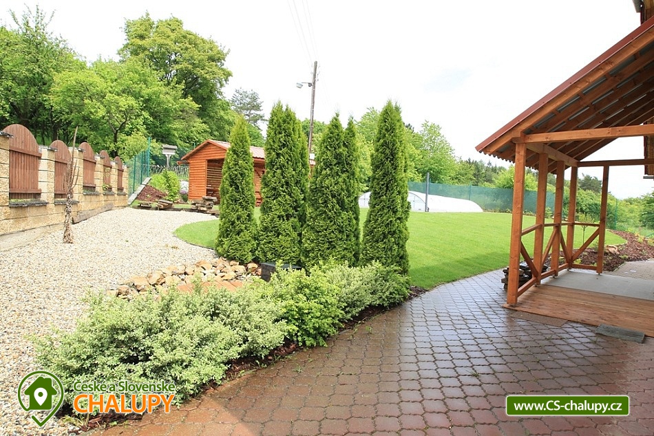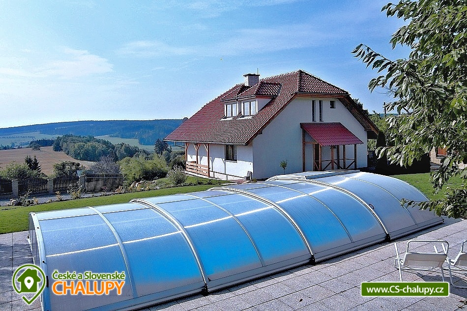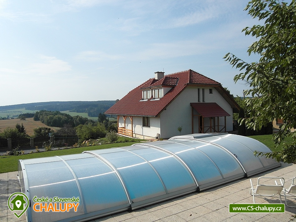 Wellness chalupa u hradu Bouzov. Pobyt pro maximálně 10 osob včetně dětí. Pronájem chalupy s bazénem a saunou na Moravě v blízkosti Olomouc a Litovel. Srdečně Vás zveme k odpočinkovému pobytu v malebné krajině Bouzovska. Najdete zde spoustu přírodních i historických zajímavostí. Na své si přijdou milovníci cyklistiky, turistiky a také ti, kteří chtějí v klidu relaxovat v lese, u bazénu, v sauně či u krbu. V přízemí chalupy se nachází plně vybavená kuchyně (el. sklokeramická deska a pečící trouba, mikrovlnná trouba, lednička, malý mrazák, myčka, varná konvice) a prostorný obývací pokoj: jídelní kout, krb, sedací souprava a TV. Dále v přízemí ložnice se 2 lůžky. V patře jsou celkem 4 ložnice, v každé 2 lůžka. Sociální zařízení tvoří koupelna v přízemí (koupelna s vanou a sprchou) + samostatné wc, druhá koupelna je v patře (koupelna se sprchovým koutem) + samostatné wc. Topení je zajištěno kotlem na tuhá paliva (s rozvodem tepla do radiátorů do všech místností) a krbovými kamny v obývacím pokoji. Možnost využití infrasauny (pro až 4 osoby) v suterénu. Součástí objektu je lodžie s nádherným výhledem, na oploceném pozemku zapuštěný krytý venkovní bazén s uzamykatelným zastřešením (3,5 m x 7,5 m, hloubka 1,2 m), zahradní nábytek, pergola s posezením a gril. Parkování pro až 5 vozidel přímo u objektu, posledních 100 m k chalupě vede nezpevněná kamenitá svažitá cesta. Vzhledem k poloze chalupy v klidové zóně není chalupa určena pro hlučné skupiny, pořádání oslav a večírků. Reprodukovanou hudbu prosím pouze v objektu, ne venku. Také prosíme o dodržování nočního klidu po 22.hodině - týká se hlavně pobytů na zahradě v pergole a v bazénu. Mezi možnosti koupání patří např.: koupaliště Loštice, koupaliště Nová Ves, Moravičanské jezero, pískovna Moravičanské jezero, bazén Mohelnice, plavecký bazén Mohelnice, koupaliště Litovel, koupaliště Morava camp, koupaliště Náměšť na Hané, pískovna Náklo, přírodní koupaliště Městečko Trnávka, atd. V zimním období je k dispozici blízké lyžařské středisko Kladky. K výletům v okolí lákají Javoříčské a Mladečské jeskyně, Zámek Čechy pod Kosířem muzeum kočárů, ZOO Olomouc, zámek Úsov, Bílá Lhota. Arboretum, Muzeum výroby a prodejna Olomouckých syrečků v Lošticích nebo Muzeum papíru a Termální Aquapark Velké Losiny. Těšíme se na Vás u nás.