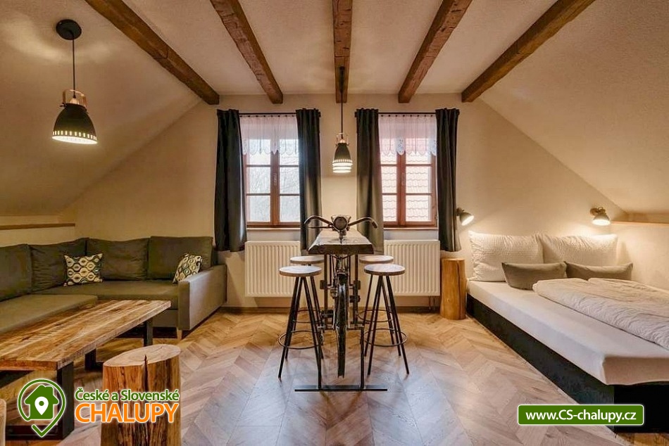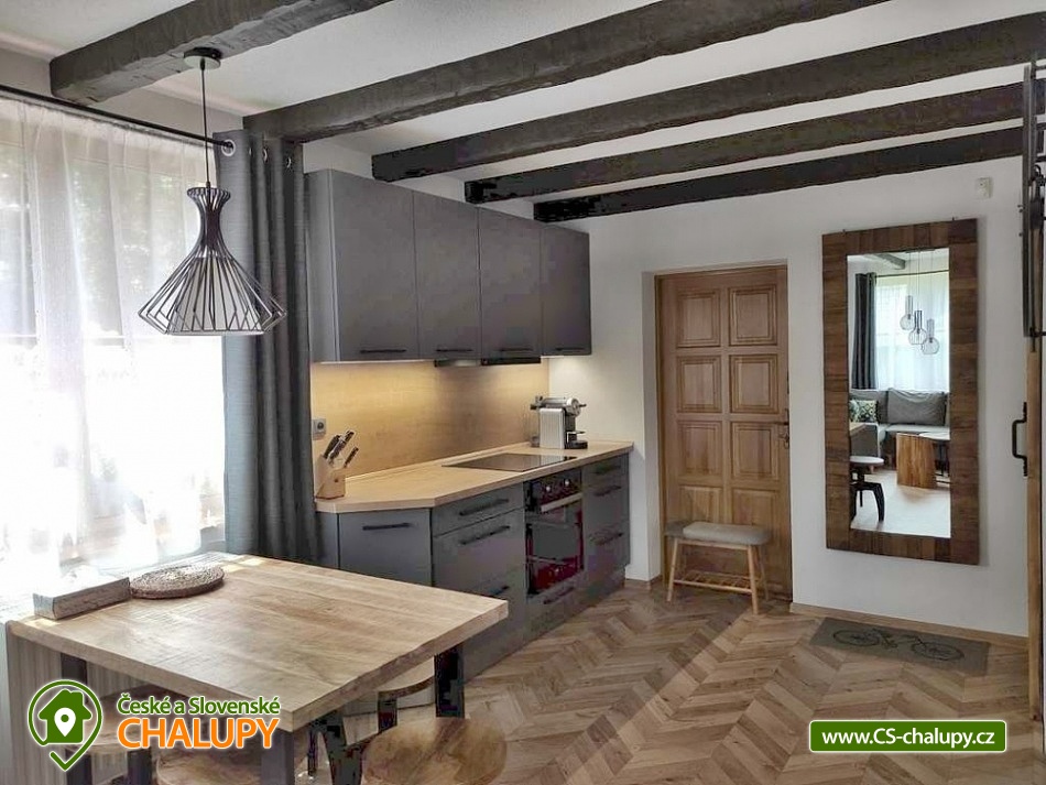 Wellness chalupa Čeladenka se nachází u řeky Čeladenky v klidném prostředí Beskyd nedaleko obce Malenovice a Frýdlant nad Ostravicí. Těšit se můžete na relax ve finské sauně nebo na zahradě v letní vířivce. Chalupa poskytuje ubytování pro až 8 osob, celkem jsou k dispozici 4 pevná lůžka a 4 přistýlky řešené rozkládací sedací soupravou (obývací pokoj a ložnice č.1). Dětská postýlka je k dispozici. V přízemí chalupy je plně vybavená kuchyň (varná deska, lednička, mrazák, myčka, mikrovlnná trouba, rychlovarná konvice a kávovar Nespresso) s velkým jídelním stolem. Kuchyň je součástí obývacího pokoje s krbovými kamny, pohodlnou rozkládací sedací soupravou a TV. V patře je umístěná menší ložnice s manželskou postelí. Dále se v patře nachází prostorná ložnice s manželskou postelí, krbovými kamny, rozkládací pohovkou, konferenčním stolkem, plochou televizí a originálním stolečkem ve tvaru cyklo pultu s barovými židličkami. V celém objektu k dispozici WIFI připojení na internet. Sociální zařízení zahrnuje jednu koupelnu se sprchovým koutem, WC a saunou v přízemí a druhou koupelnu s vanou a WC v patře. Vytápění je řešeno ústředním vytápěním a krbovými kamny v obývacím pokoji a v druhé ložnici. Dále k dispozici: Terasa se zděným krbem a posezením. Další venkovní posezení s ohništěm se nachází níže u řeky. V létě lze odpočívat ve venkovní vířivce. Pro děti je k dispozici trampolína a pískoviště. Parkovat lze přímo u objektu. V okolí možnost turistiky, cykloturistiky, koupání, houbaření, rybaření, lyžování a běžkování. V blízkosti se nachází golfové hřiště, tenisové kurty a jízdárna. Mezi možnosti koupání patří např.: koupaliště Frýdlant nad Ostravicí, přehrada Baška, bazén Frenštát pod Radhoštěm, přehrada Olešná, aquapark Frenštát pod Radhoštěm, aquapark Frýdek Místek - Olešná. V zimním období blízká lyžařská střediska: Malenovice, Lysá hora a další. Od chalupy vede cesta k Přírodní památce Vodopády Satiny (expozice Ráj dřevěných soch), dále výstup na horu Smrk a nejvyšší vrchol Beskyd - Lysou horu. K dalším výletům láká Lanové bludiště Opičárna, Bobová dráha Čeladná, Multifunkční areál Na Pile, hrad Hukvaldy, město Štramberk, Frenštát pod Radhoštěm, Rožnov pod Radhoštěm, Technické muzeum Tatra – Kopřivnice, Zámek Frýdek nebo muzeum Velký svět techniky Dolní Vítkovice. Těšíme se na Vás u nás.