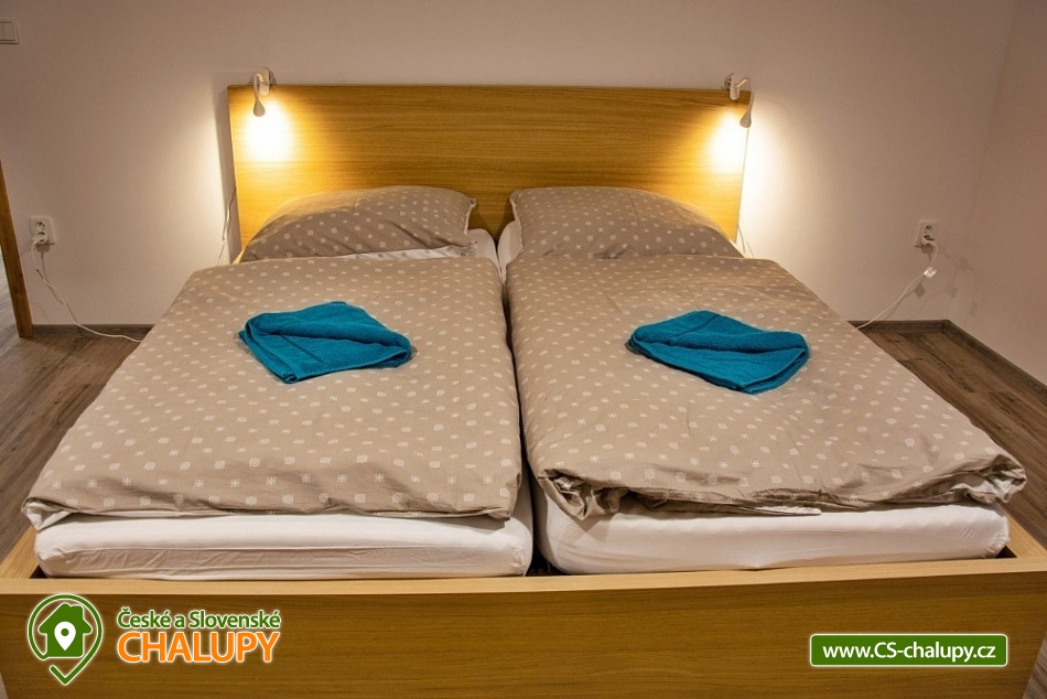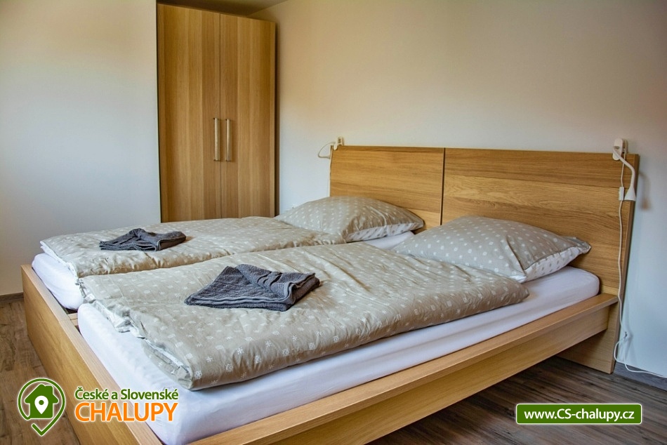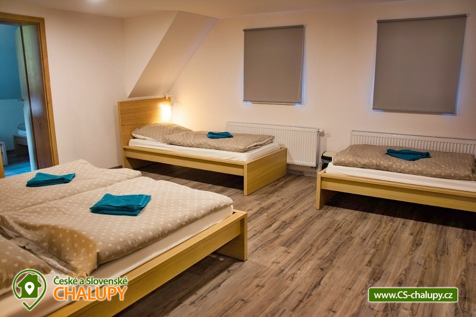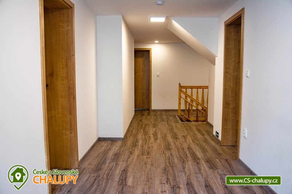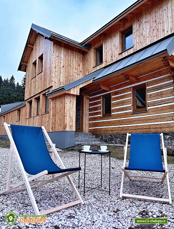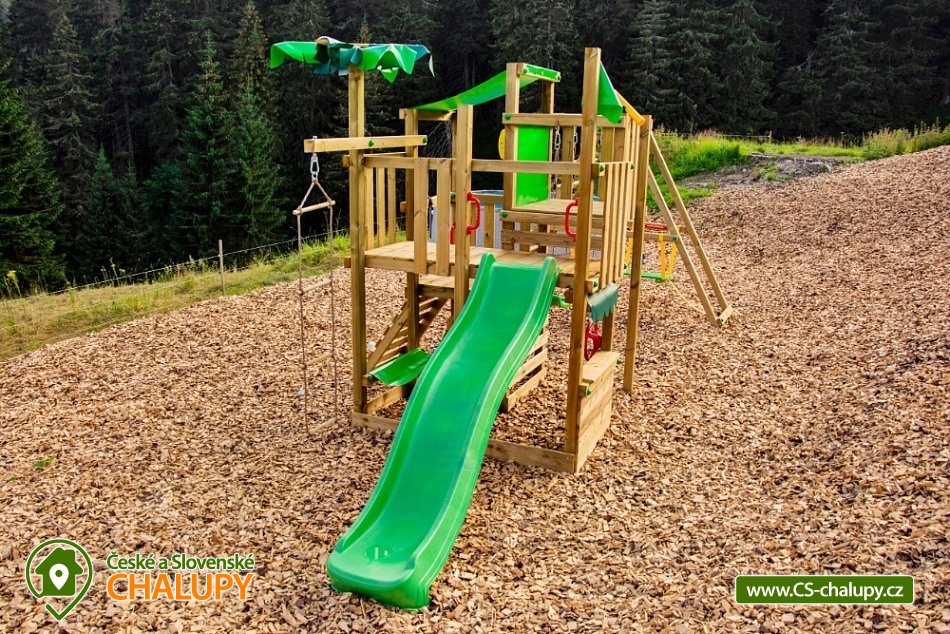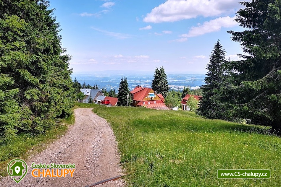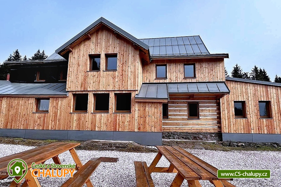Wellness chalupa Černá hora se nachází na samotě, uprostřed lesů, na vrcholu Krkonoš (1190 m. n. m.) v bezprostřední blízkosti největšího krkonošského Černohorské rašeliniště a nedaleko od města Janské Lázně, poloha přímo na trase Krkonošské magistrály, kde můžete v letních měsících prožít krásné turistické, cyklistické, či koloběžkové zážitky. Blízké okolí nabízí spoustu možností pro odpočinek i aktivní dovolenou. Během ubytování se můžete těšit na svěží vůní horského lesa, na relax ve wellness se saunou a vířivkou. Chalupa poskytuje ubytování pro až 20 osob v 7 ložnicích. Ložnice se nachází v 1.patře chalupy a nabízí nezapomenutelné výhledy do okolní krajiny. Čtyři ložnice jsou dvoulůžkové, z toho tři s manželskou postelí a jedna s dvěma jednolůžky. Další tři ložnice jsou čtyřlůžkové s manželskou postelí a dvěma jednolůžky. Třetí a čtvrtá ložnice jsou spojené. Dětská postýlka je k dispozici. Pro společné chvíle slouží obývací pokoj se sedací soupravou a smart TV připojenou na internetovou televizi a prostřednictvím bezdrátového připojení se lze připojit na jakékoli vaše zařízení. Součástí chalupy je plně vybavená kuchyň (americká lednice, varná deska s šesti plotnami, trouba, kontaktní gril, mikrovlnná trouba, kávovar na kapsle, mixér a mnoho dalšího vybavení). V celém objektu je k dispozici WIFI připojení na internet. Relaxovat lze ve wellness zóně se saunou pro 6 - 8 osob a vířivkou. Sociální zařízení zahrnuje v přízemí 2x samostatné WC, 1x koupelnu s WC a sprchovým koutem. Dále dva sprchové kouty v přízemí u wellness. V prvním patře jsou další dvě koupelny se sprchovým koutem a toaletami. K dispozici je pračka. Vytápění je řešeno ústředním elektrickým kotlem. Každá z koupelen a wellness zóna mají navíc podlahové vytápění. Venku u chalupy je připraveno venkovní posezení s grilem a krásným výhledem do přírody Národního parku Krkonoše. K dispozici je ohniště. Malí návštěvníci se mohou těšit na dětské hřiště s prolézačkami, klouzačkou a houpačkou. V letních měsících lze parkovat přímo u objektu. V zimním období (zhruba od konce října do poloviny dubna) jsou zajištěna parkovací místa na parkovišti v Jánských Lázních a za poplatek lze zajistit dopravu k chalupě pásovým terenním vozidlem. Dále je možné se k ubytování dostat kabinovou lanovkou na Černou horu a ve stylu „expedice Apalucha“ dojít či sjet k chalupě. V okolí chalupy možnost turistiky, cykloturistiky, koupání, houbaření, lyžování a běžkování. V blízkosti jsou také tenisové kurty, lanový park a hřiště. Mezi možnosti koupání patří např.: aquacentrum Jánské Lázně, koupaliště Čistá, koupaliště Retro park Sejfy, Trutnov - Pekelský rybník, aquacentrum Aquacentrum Vrchlabí, rybník Vejsplachy, aquapark Špindlerův Mlýn, přehrada Labská, koupaliště Valteřice, jezero Bukówka, rybník Dolce, bazén Trutnov, atd. V zimním období blízká lyžařská střediska: Černá hora - Jánské Lázně, Košťálka, Skiport - Velká Úpa, Svoboda nad Úpou, Černá hora - Černý Důl, Pec pod Sněžkou, Třešňovka - Horní Maršov, Pěnkavčí vrch a další. K okolním výletům dále láká Černá hora s vyhlídkou a půjčovnou koloběžek, skalní vyhlídka Modré kameny, Stezka korunami stromů Krkonoše, Sněžka, Lanový park v Jánských Lázních, Lázeňská kolonáda v Jánských Lázních nebo Baldův svět a letní tubing Mladé Buky. Těšíme se na Vás u nás.
