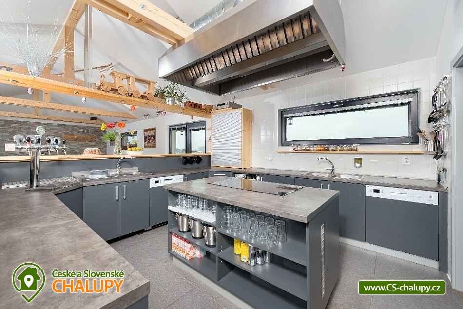 Wellness chalupa Český ráj nedaleko zámku Sychrov s bazénem a saunou. Luxusní chalupa pro až 25 osob, která se pronajímá vždy jedné skupině klientů v soukromí. Objekt je rozdělen do několika funkčních celků: ubytovací část tvoří apartmány, které jsou stylově zařízené, prostorné, postele velké, čisté a pohodlné, s podlahovým vytápěním, takže je všude sucho a teplo. K dispozici je 5 apartmánů pro 1x3os., 2x4os., 1x6os. a 1x8os, Každá rodina nebo skupinka 3 až 8 osob má k dispozici vlastní sociální zázemí (sprcha nebo vana) s minimalistickou kuchyňkou. Druhá část je velká společná jídelna s krbovými kamny, měkkými sedacími lavicemi, smart TV, dětským koutkem, klavírem a velkou poloprofesionální kuchyní oddělenou jen barovým pultem, kde je k dispozici profi pípa s 5 kohouty a chlazením. K jídelně jsou samostatná wc. Prostor je oddělen od ubytovací části chodbou - to aby se „sovy a skřivani“ vzájemně nerušili. Jídelnu obklopují venkovní terasy s posezením pod střechou. K dispozici je kvalitní kávovar s vlastní obsluhou a profi pípa na nápoje s 5 kohouty a chladícím zařízením. Použít můžete také prádelnu a bezplatné připojení k internetu. Jen pár metrů od hlavní budovy je v samostatném objektu sauna se sprchou a odpočívárnou a v těsné blízkosti je venkovní bazén se slanou vodou a terasou s lehátky. V rámci oploceného pozemku máte k dispozici rovněž velkokapacitní ohniště s dostatkem dřeva a dětské hřiště s houpačkami a skluzavkami. Nabízíme také univerzální halu 100m2 - hernu s vlastním sociálním vybavením, kde je ping - pongový stůl, může zde probíhat i společenská akce, cvičení, školení apod. Pozemky okolo areálu jsou našim hostům plně k dispozici vč. vstupu na naši rozhlednu, ze které je krásně vidět například Ještěd, Trosky a nebo hrad Bezděz. Příjezd je bezproblémový i v zimě. Parkování je na vlastním pozemku za zavřenými vraty s kamerovým dohledem. Výhodou obce je její naprostý klid, ze zahrady je vidět dominanta severních Čech – Ještěd 1012 mnm, v dálce pak siluety Trosek a Bezdězu. Tipy na výlety: bobová dráha Javorník, zimní stadion, pronájem lodí nebo koloběžek, liberecká ZOO, aquapark Liberec, IQ Landia, paragliding, letiště nejen pro větroně, golf a malebná příroda Českého ráje - všude kolem. Krátkou procházkou se od nás můžete zajít podívat například na Hodkovické letiště, k řece Mohelce, na státní zámek Sychrov a nebo můžete jen obejít naši klidnou obec a potkat pár srnek. Ze vzdálenějších míst s dojezdem 15minut můžeme vyjmenovat Malou Skálu, Frýdštejn, volnočasové středisko Javorník, přírodu Českého ráje, koupaliště přírodní i krytá, nebo zimní stadion v Turnově a samozřejmě Ještěd a lákadla Liberce.