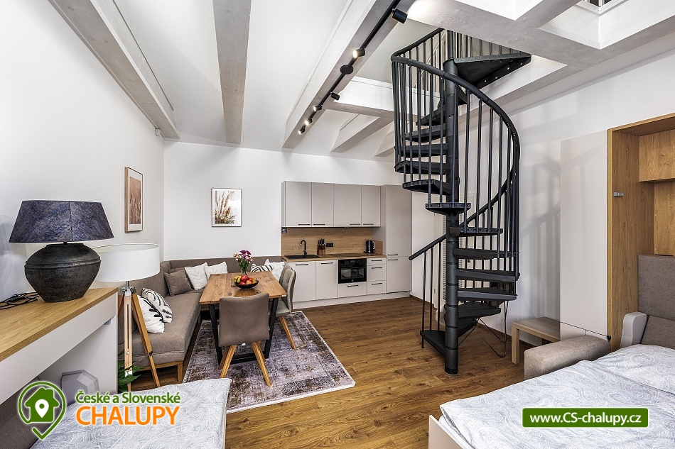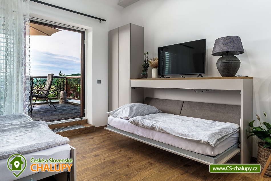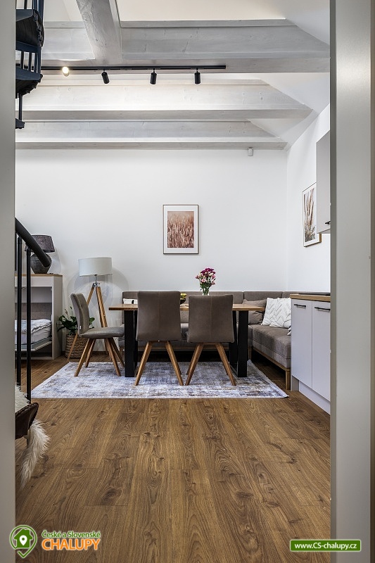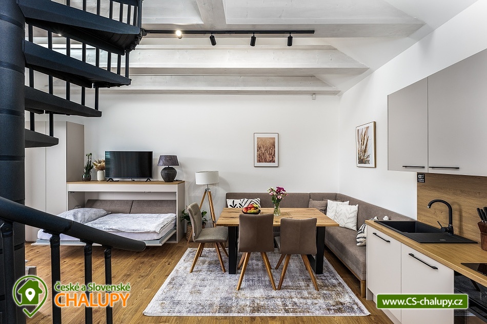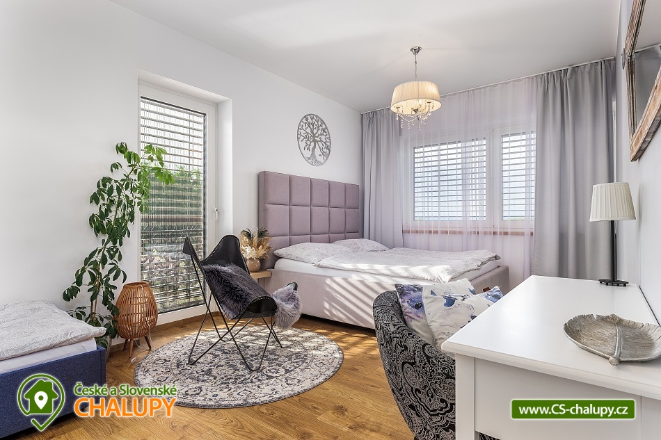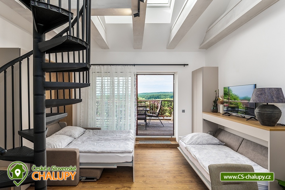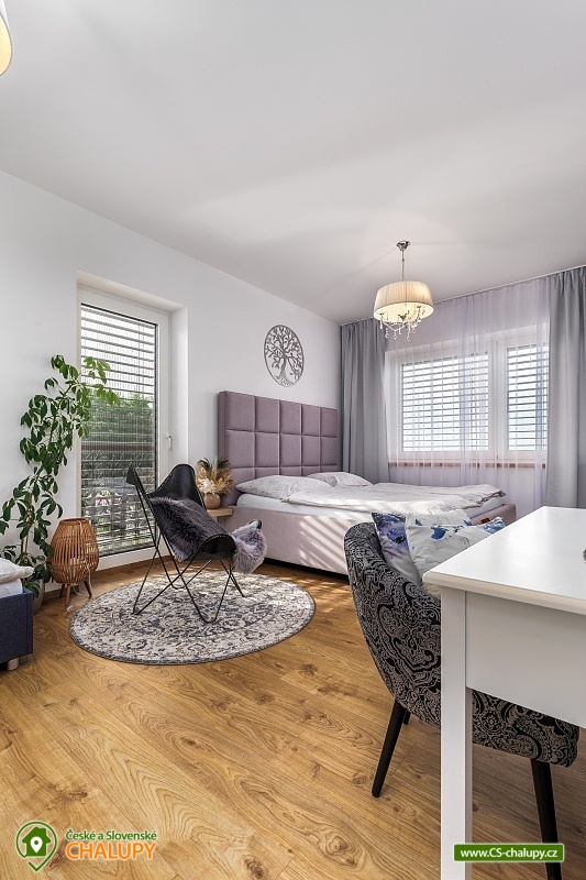 Comfortable cottage - apartment with biosauna and natural lake is located in the village of Kublov, in the picturesque landscape of the Křivoklátsko Protected Area, and is therefore an ideal place for lovers of hiking, cycling and relaxation. The accommodation is located in the upper part of the cottage, where you will have your privacy throughout your stay (the ground floor of the cottage is empty). The cottage offers accommodation for 12 people in three bedrooms. There is 1 double bedroom, 1 triple bedroom and 1 seven-bed bedroom (3 beds in the living room on a comfortable folding double bed and a folding single bed and 4 beds in an open maisonette above the living room). The living room also features a dining area with a bench and chairs, a TV, access to an outdoor terrace, stairs to an open maisonette bedroom and a fully equipped kitchenette (dishes, fridge, freezer, dishwasher, stove, oven, microwave, automatic coffee maker, toaster and kettle). The bathroom includes 2 bathrooms with showers and 2 toilets. A hairdryer, towels and Wi-Fi are available. The property has electric heating. The cottage has a separate private garden exclusively for guests, a biosauna with a natural saltwater pond and a terrace with seating, which is accessible directly from the living room. Another outdoor seating area is located at the entrance to the cottage. Guests can use a bicycle shed with the possibility of charging electric bicycles and parking spaces for up to four cars. A hot tub is also available for an additional fee. Swimming options: Zdice swimming pool, Hořovice aquapark. Tips for trips in the area: Křivoklát Castle, Valley of Silence nature trail, Vraní skála, Točník Castle ruins, Žebrák Castle, Skryjská Lakes, Velká Buková lookout tower, Nižbor Chateau. We look forward to seeing you at our place.