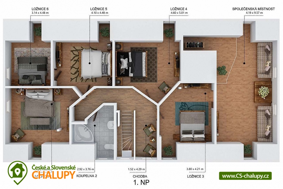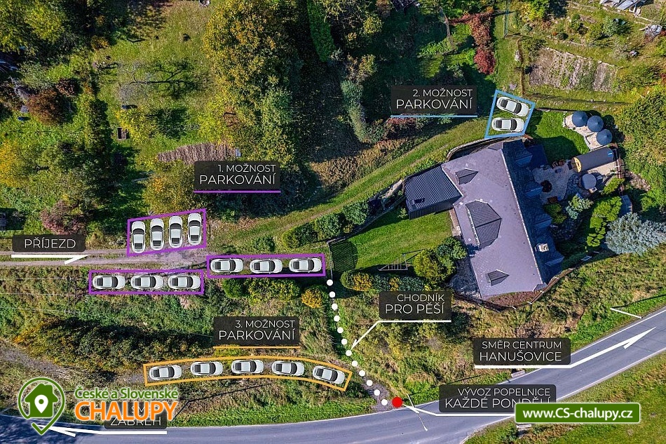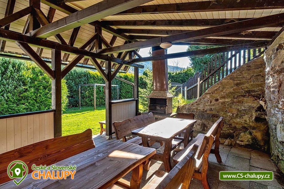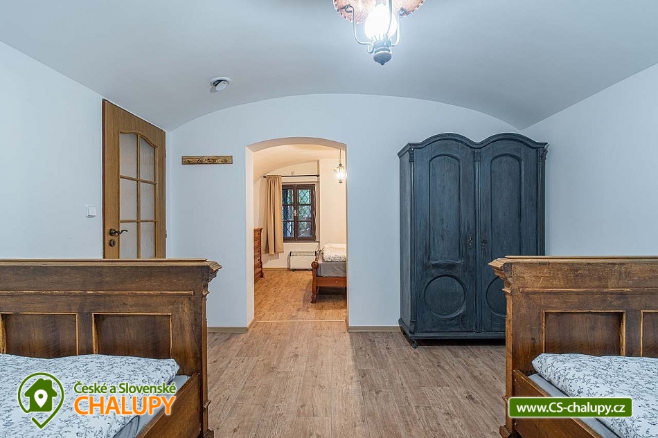 A stylish cottage on the quiet edge of the village of Hanušovice - location by the forest with a fenced garden and wellness is an ideal place for a family vacation or a relaxing stay with friends. With its unique location, the cottage will offer you the opportunity to explore attractive tourist spots in Jeseníky. BO! the cottage for rent provides accommodation for up to 22 people in 8 bedrooms. DESCRIPTION: The cottage is designed for a maximum of 22 people, of which there are 18 beds + 2 extra beds + 2 mattresses. There are a total of 7 bedrooms, 2 bathrooms, 2 common rooms with TV, 2 kitchens and a dining room. On the ground floor there are 2 bedrooms, bathroom with toilet, common room, dining room, 2 kitchens. On the first floor there are 5 bedrooms, a common room, a bathroom with a toilet. The cottage has two equipped kitchens with the possibility of preparing breakfast, lunch or dinner. For joint dining, you can use the table in the dining room as well as the tables in the common room. Interior equipment - 2x kitchen with all kitchen equipment including microwave, kettle, hob, 2x fridges, ovens, beer tap, electric grill. In the bathroom there is a washing machine with a dryer + clothes dryer. Social facilities: 2x bathroom with toilet. Heating: Electric direct heaters in each room. Stylish tiled stove in the living room with vents to the rooms. Exterior equipment - outdoor covered terrace with seating, grill, fireplace, outdoor swimming pool, Finnish sauna, cooling shower. A smaller workout area with a swing. Grass area for sports. Parking right next to the cottage. Nearby: X park Františkov (skiing in winter, climbing frames + trampolines in summer). Branná - Kolštejn Castle, can also be reached by train from Hanušovice (Proskil Branná Ski Resort in winter). Králičák - Ski resort Králičák. Ramzová (summer and winter attractions). Horní Lipová - zoo Faunapark. Jeseník - swimming pool. Dolní Morava - famous summer and winter resort. City of Šumperk - aqua center. We look forward to seeing you here.