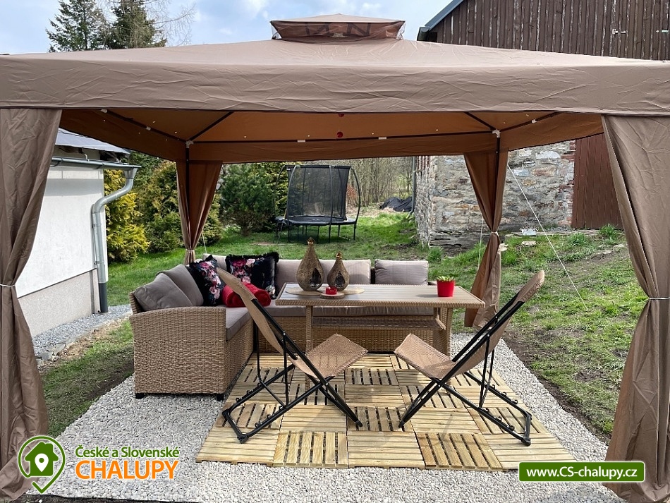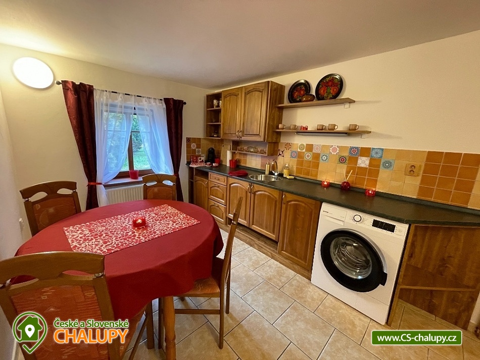 Wellness chalupa Jeseníky nabízí originální wellness ubytování s finskou saunou, venkovní vířivkou a posezením s krytým ohništěm s grilem. Chalupa přímo v srdci Jeseníků, nedaleko lázní Karlova Studánka, města Zlaté Hory, Jeseník a hory Praděd, obec Heřmanovice. V okolí chalupy se nachází sjezdovky, běžkařské a turistické trasy a cyklotrasy. Chalupa k pronájmu poskytuje ubytování pro až 13 osob ve 4 ložnicích. Ložnice a pokoje: Ubytování je ve čtyřech oddělených pokojích, z čehož jeden je umístěn v přízemí a tři v prvním patře. Kapacita je 13 osob, možnost přistýlky + dětská herna s postýlkou, hračkami a posezením pro děti. Přízemí: 2 x kuchyně (lednice s mrazákem, sklokeramická varná deska, trouba, varná konvice, kávovar, topinkovač), TV, WIFI a finská sauna v koupelně. Sociální zařízení v přízemí: 1x koupelna se sprchovacím koutem a vanou, finská sauna v koupelně, 1x WC s umyvadlem. Vrchní patro: 1x WC s umyvadlem. Vytápění: Automatický kotel s regulací s posuvným přikladačem na uhlí, ohřev vody bojlerem. Chalupa je obklopena částečně oplocenou zahradou s wellness zónou včetně venkovní vířivky a relax posezení s grilem. Parkování u chalupy. Je zde prostor pro kola, lyže a jiné. Chalupa je citlivě zrekonstruovaná zachovává některé prvky ze své původní stavby a tvoří tak jedinečné místo s duší. Nachází se v CHKO Jeseník a v chalupě teče voda z místních pramenů. V okolí - výlety: Aquapark Bruntál a Rýmařov, Nejvyšší hora Jeseníků Praděd s nadmořskou výškou 1491 m. Naučná stezka vodopády Bílé Opavy, Rešovské vodopády, Rejvíz a Mechová jezírka. Biskupská kupa, nejstarší rozhledna v Jeseníkách. Přečerpávací vodní elektrárna Dlouhé Stráně. Přehrada Slezská Harta. Stezka v oblacích Dolní Morava a nejdelší vysutý most na světě. Hrad Sovinec. V zimě: Lyžařský vlek Horní Údolí (8 km), Ski Aréna Vrbno pod Pradědem (14 km), Skiareál Kopřivná (25 km) a Ski Aréna Karlov 12 km propojených sjezdovek (29 km). Těšíme se na Vás u nás.