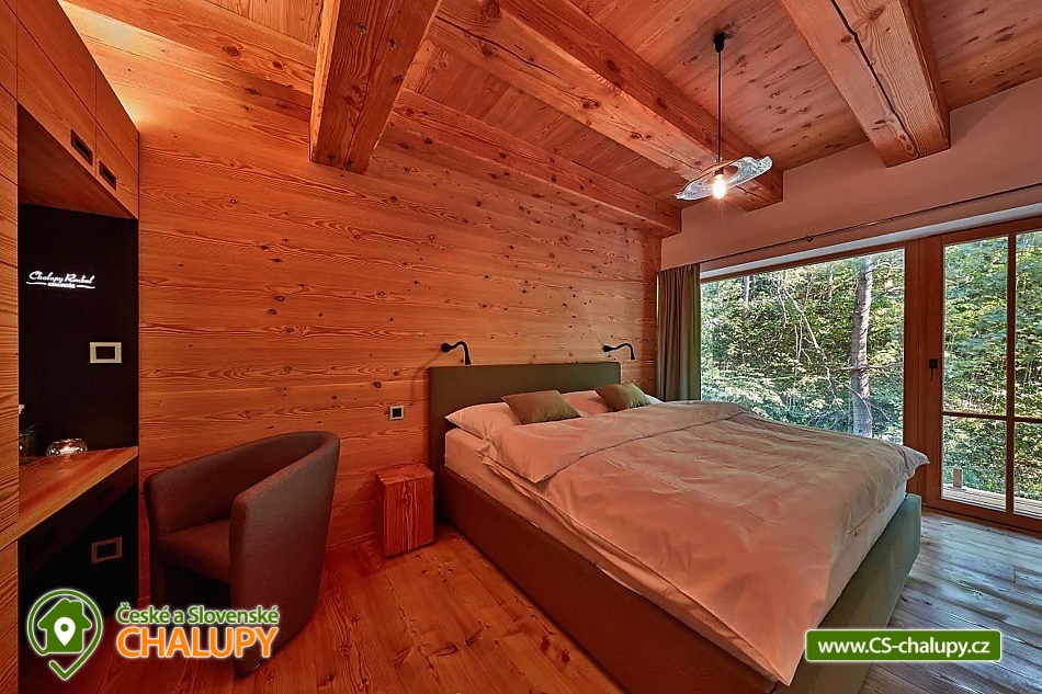 Cottage Brusírna - Černý Důl, Giant Mountains. Rent cottages Černý Důl - Krkonoše. Accommodation Giant Mountains - Extraordinary experience - Above standard equipped luxury cottage Brusírna is located in the Giant Mountains in the mountain resort Černý důl in the Trutnov district. In the cottage there are two four-bed apartments and two 2-bed rooms. Roubenka is made of coniferous tree - douglas pine, is in modern pure style and therefore has bigger glazed windows than usual in classic woods. Thanks to them you will have a wonderful view of the trees. The interior of the Brusírna is in a modern design using granite, glass and iron materials. For a while, the tiled stoves and the sauna with an outdoor bath bar will make your stay more pleasant. Part of the timetable is the wine cellar. A pleasant feeling of relaxation will bring in a pleasant, all-day pleasant noise as well as a nearby mountain stream. Surrounding nature invites for hiking and cycling, in winter there are ideal conditions for skiing.