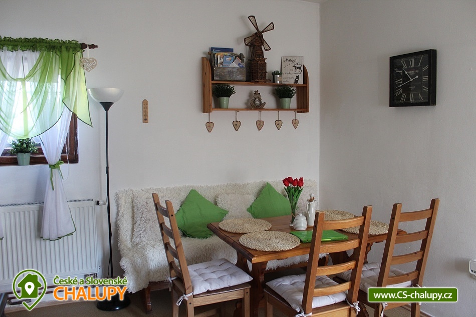Wellness chalupa Moravský kras s koupacím jezírkem nabízí příjemný rodinný pobyt u obce Krásensko v Moravském krasu. Apartmán ve stylu venkovské chalupy, kde načerpáte pohodu a vesnickou atmosféru - ubytování pro max. 5 osob + 1 dítě do 10 let + miminko v dětské postýlce. K dispozici je Relax domeček, který nabízí klid a pohodlí (Infra sauna a spa vířivka pro skvělé chvilky odpočinku). POPIS: Apartmán má dvě ložnice. První ložnici nazýváme dětský pokoj, je v ní patrová postel. Spodní část postele pro 2 osoby, horní část pro 1 osobu. Dále postýlka pro dítě do 10 let, hračky a úložné skříně. Druhá ložnice disponuje manželskou postelí a postýlkou s přebalovacím pultem pro vaše nejmenší. Sociální zařízení: sprchový kout, wc a pračka. Kuchyň je plně vybavena a připravena pro Vaše vaření. Naleznete zde i kávovar, kontaktní gril, mikrovlnou troubu, plynový sporák a televizi. WIFI zdarma po celém domě. Pozemek je plně oplocený se zahradou pro Váš odpočinek a zábavu. Dvorek u chalupy je uzavřený. Na dvorku se nachází pergola, ve které je příjemné posezení. Pro děti: pískoviště, trampolína, prolézačky, dětská postýlka a koupací jezírko, parkování přímo u chalupy. V okolí doporučujeme: Punkevní jeskyně, Jeskyně Balcarka, Kateřinská jeskyně, Sloupskošošuvské jeskyně, Jeskyně Výpustek, Rybník Olšovec, Sigle trade Jedovnice, Ranč Kopaniny (přímo v Kulířově), Zámek Boskovice, Staré Brno a Westernové městečko Boskovice. Na ubytovatele se zde můžete těšit jako na kamarády :) Pokud budete chtít, rádi Vás pohostí. Pokud ne, nechají Vám plné soukromí. Ubytování je pro ně koníček, takže pokud Vám bude cokoliv chybět, vždy Vám vyjdou vstříc.