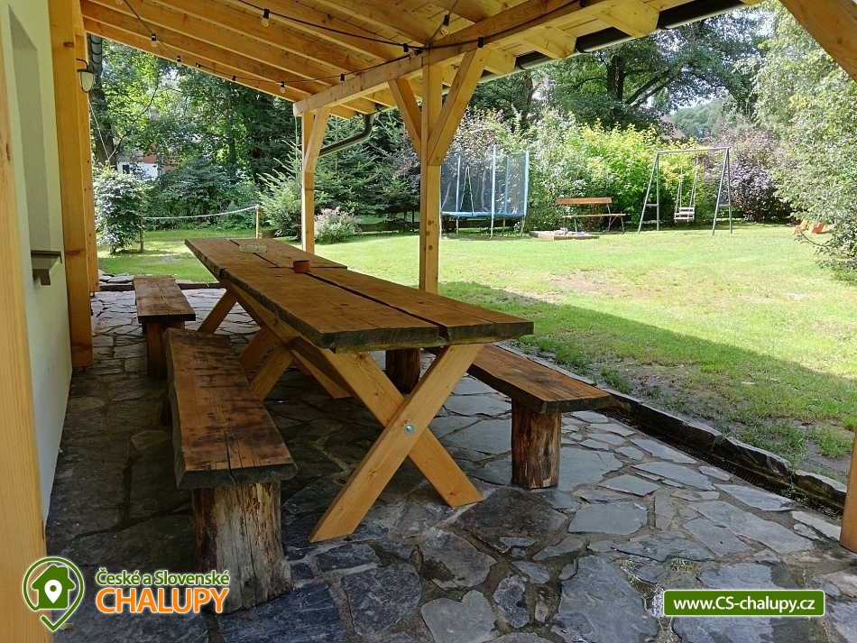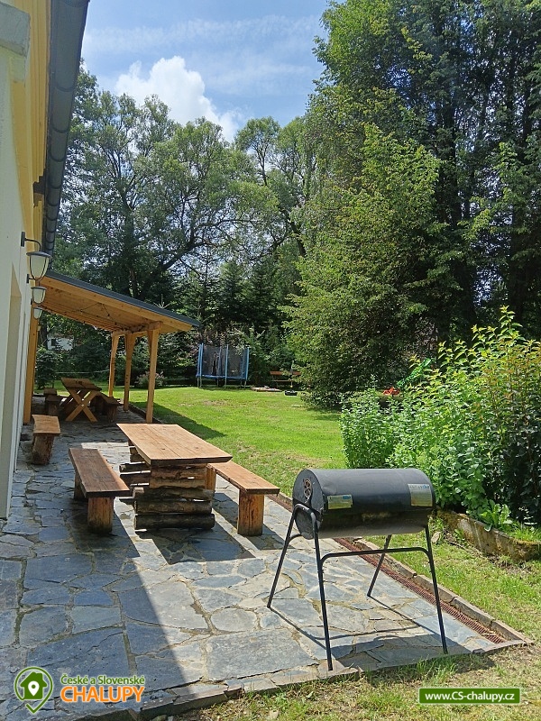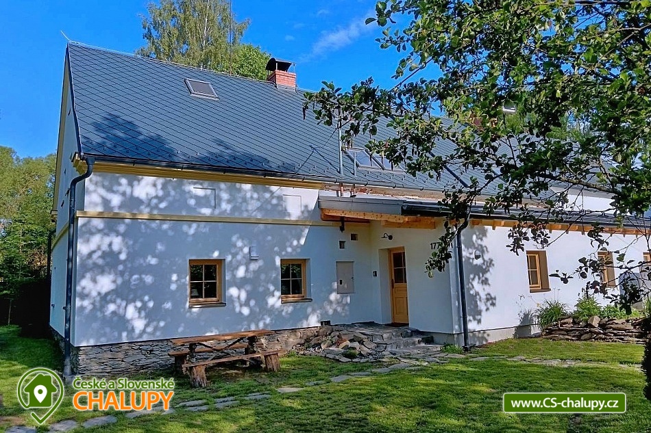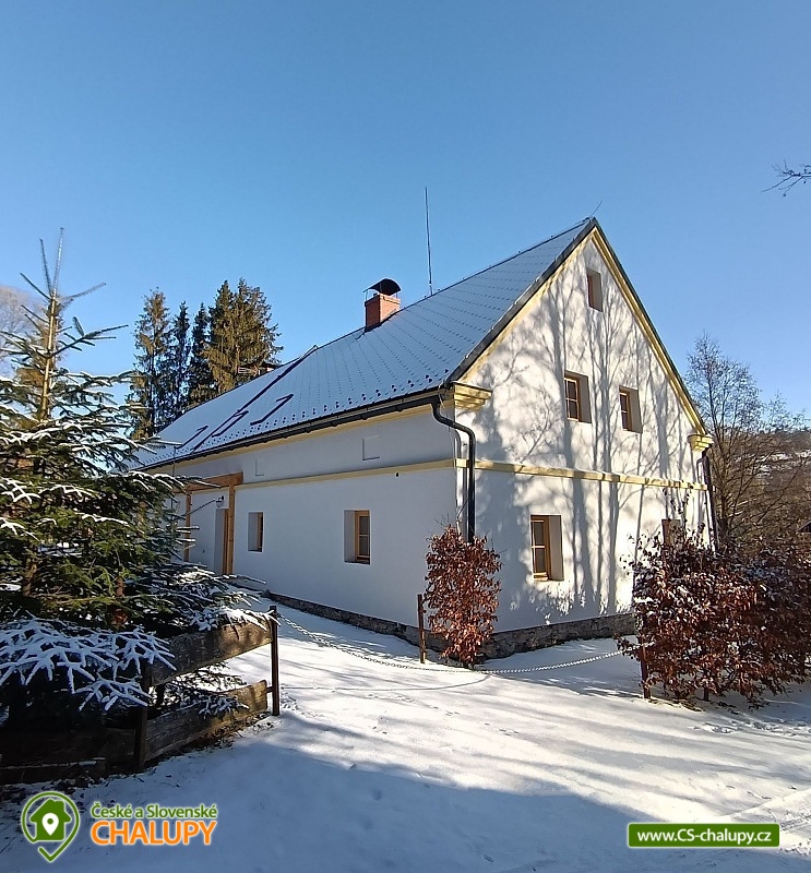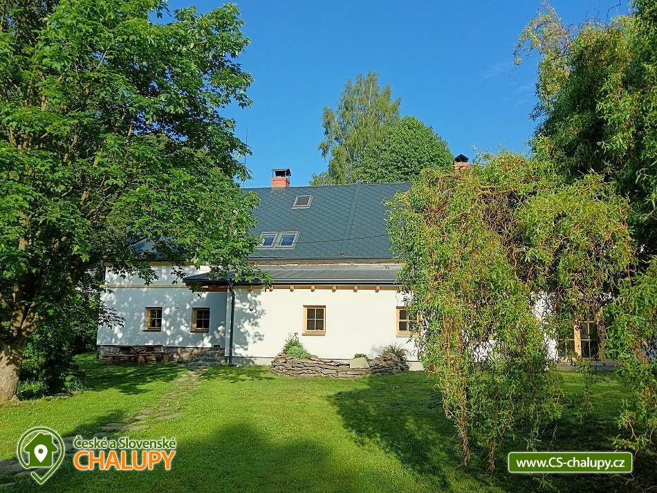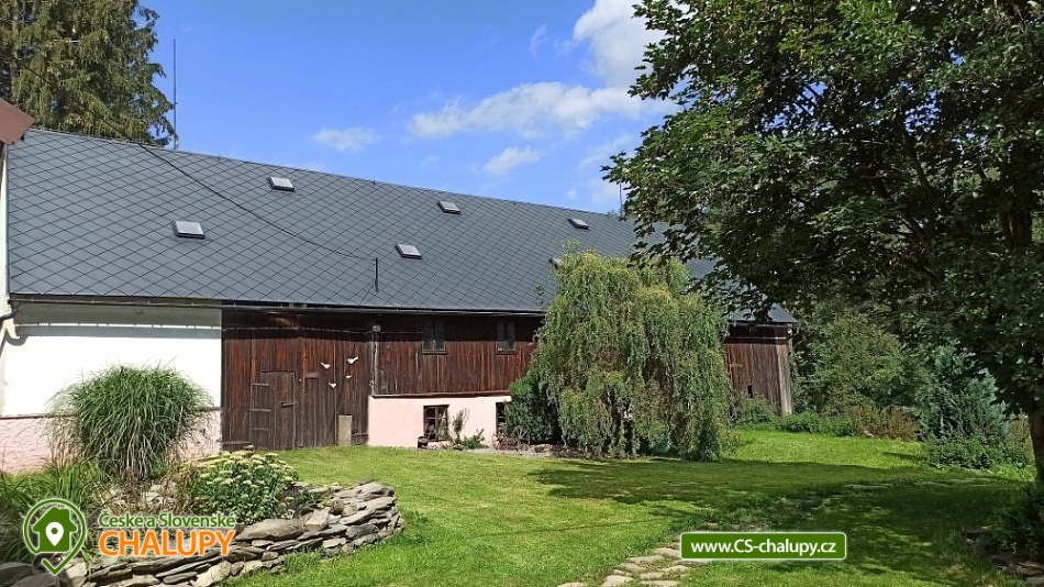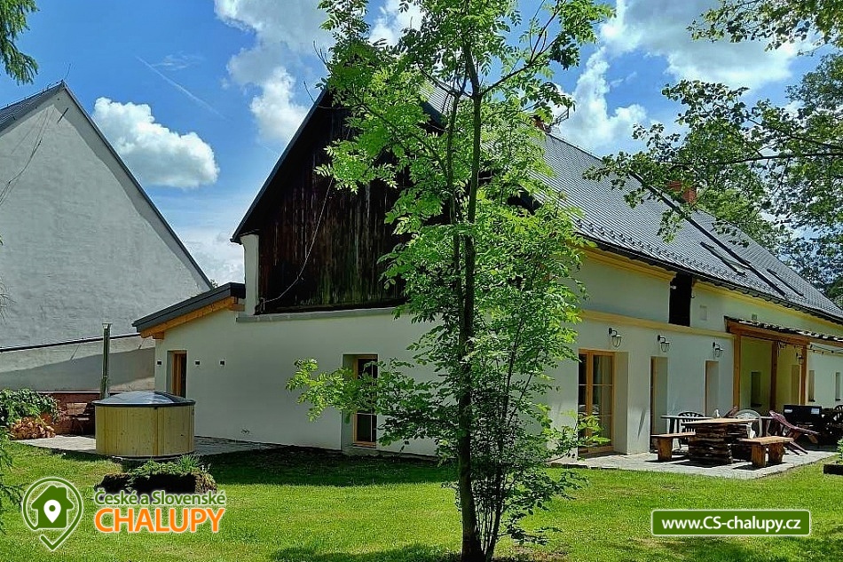 Chalupa s wellness Nízký Jeseník se nachází v obci Tylov - Lomnice, v okrese Bruntál, v Moravskoslezském kraji, poloha nedaleko nejvyšší hory zvané Slunečná. K chalupě náleží wellness relaxační zóna s vnitřní finskou saunou a venkovním koupacím sudem s vířivkou. Severně od obce leží Hrubý Jeseník a východně přehrada Slezská Harta. Na přední zahradě u chalupy se nachází původní stodola. Stodola vytváří nádherný pocit venkova a soukromí na přední zahradě. Chalupa nabízí ubytování jak v prostorách v přízemí, tak ve dvou dalších nadzemních podlažích, ve kterých byly v minulých letech zcela nově vybudovány ložnice s citem pro zachování venkovské atmosféry. Celková kapacita chalupy je až 27 lůžek v 7 ložnicích (dále wellness relaxační zóna s finskou saunou, koupací sud s vířivkou, 5x WC a 3x koupelna). Předností chalupy je nadstandardní společenská místnost o rozloze 60 metrů čtverečních s přímým přístupem do kuchyně a také na zadní zahradu s venkovním posezením, pergolou a grilem. Je to skvělé místo pro posezení všech hostů na jednom společném místě. Společenská místnost se navíc nachází v části chalupy, kde nejsou v blízkosti obytné pokoje a proto nejsou hosté v noci rušeni "životem" ve společenské místnosti. Zahrady o celkové ploše necelých 5 000 metrů čtverečních s malým lesním hájkem nabízející naprosté soukromí a nerušený pobyt v přírodě. Na zahradě se nachází velká venkovní terasa s posezením, pergolou a přenosným grilem. Pro děti najdete ve společenské místnosti regál se dětskými knížkami a hrami. V podkroví se dále nachází dětský koutek pro ty nejmenší. Zahrada nabízí velké vyžití pro děti - najdete na ní dětské pískoviště, dětskou houpačku, skluzavku, trampolínu, hamaku pro děti i dospělé. Zahrada nabízí také skvělé místo pro hraní společných her. Okolí nabízí širokou škálu možných aktivit. Je tady ráj pro houbaře v okolních lesích, rybáře v nedalekém Tylovském rybníce, milovníky koupání v přilehlé přehradě Slezská Harta, koupališti Nové Pláni, případně Welness Centru v nedalekém Bruntále. V blízkém okolí se dále nachází například hrad Sovinec, Pradědova galerie Jiříkov nebo Rešovské vodopády. Milovníci cykloturistiky zde najdou velké množství výletních cílů, lyžaři naopak lyžařské areály Karlov a další. Samotné Jeseníky nabízejí široké možnosti pěších, cyklo i lyžařských výletů. Těšíme se na Vás u nás.