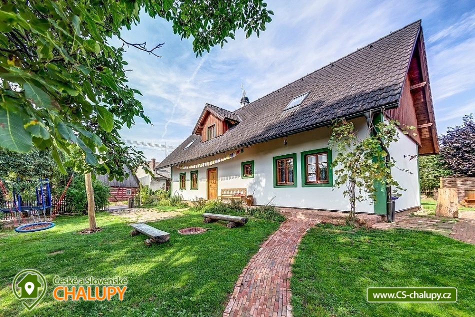Rodinná chalupa s wellness u hradu Pecka - Podkrkonoší. Saunování anebo cachtání v netradičním sudu? Snídaně v zahradě u kamenného stolu, večerní grilovačka nebo táborák pod hvězdami - Prostě fajn romantika, se vším všudy! Chcete zažít romantiku i s dětmi? Ano, jsme totiž baby friendly. U nás se mamči vůbec nemusí bát, že by pro jejich zlatíčka náhodou mohlo něco scházet. Skákací trampolína, bazének, zahradní sprcha, houpačky, stolní tenis, stolní fotbal, šipky, líný tenis, badminton, kopací míč, házení na basketbalový koš, pískoviště a jako bonus, pokud se někomu podaří trefit sezónu, zahrada plná ovoce. Chalupa k pronajmutí poskytuje ubytování pro až 12 osob ve 4 ložnicích. V chalupě je 8 místností a 2 koupelny: 4 x ložnice, světnice s kuchyní a kachlovými kamny, společenská místnost s TV, dětská hernička, chladna, 2 x koupelna. Na zahradě celoročně využívaný koupací sud, v jedné části stodoly možnost využití finské sauny, dětské herní prvky, ovocné stromy, funkční pumpa a kamenný stůl. Jedete si odpočinout a měli byste být off-line, ale kdo bude chtít může využít WIFI zdarma. Pečlivý úklid, čisté prostředí a větrání chaloupky před jejím předáním našim hostům je pro nás samozřejmostí. Úklid jsme doplnili o sterilizaci prostor generátorem ozónu. V okolí doporučujeme - Výlety pěšmo, koňmo, na kánoi, kole, koleběžce, běžkách, sněžnicích nebo s kočárkem: Přírodní rezervace Kamenná Hůra 1 km, Krkonošská vyhlídka u Pecky 1,5 km, Hrad Pecka 3,4 km, Městys Pecka 3,4 km, Lázně Bělohrad 8 km, Miletín 8 km, Přírodní památka Hřídelecká Hůra 9,8 km, Kostelní cesta z Horní Brusnice na Zvičinu 10 km, Zvičina 10 km, Klenotnice drahých kamenů Nová paka 10 km, Sochařský park u Sv. Gotharda 12 km, Hořice 12 km, Auto - moto muzeum 13 km, Vodní nádrž Les Království 16 km, Safari a Zoo Dvůr Králové nad Labem 17 km, Hrad Kumburk 17 km, Hospital Kuks 27 km. Vyhrazeno dětem: Dětské hřiště a pohádková procházka u bělohradského rybníka Pardoubek 4 km, Minifarma Lázně pod Zvičinou 12 km, Mladé Buky 33 km, Hrad a zámek Staré Hrady 37 km, Farmapark Muchomůrka 38 km, Fajnpark 43 km. Okolí nabízí spousty přírodních zajímavostí, nezapomenutelných vyhlídek do malebného kraje, památek, roubených vesniček, sjezdovek, cyklistických tras, turistických cest, splavnou řeku Labe a nepřeberné množství dalších zážitků a aktivit pro celou rodinu.