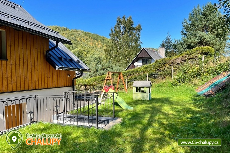 Wellness chalupa Praděd - ubytování s finskou saunou a vířivkou nedaleko Karlovy Studánky, obec Luvíkov - Jeseníky. Klidné ubytování v srdci Jeseníků přímo na říčce Bílá Opava. Chalupa disponuje velkorysým prostorem a je vhodná nejen pro rodiny s dětmi. Chalupa má vlastní wellness vybavení, jako je sauna či whirlpool, takže si pobyt náramně užijete. Každý rodič ocení rozmanitou zábavu pro své děti a na to jsme samozřejmě mysleli. Chalupa má vlastní herní zónu jak pro ty nejmenší, tak pro starší děti. Najdete zde od herní konzole až po houpačky, šipky, lezeckou stěnu a další. Chalupa má 4 samostatné ložnice a pojme 15 osob. Na chalupě najdete společné sociální zařízení: celkem 4 sprchy a 4 toalety. Najdete zde také prostornou plně vybavenou kuchyň. Moderní a prostorná kuchyň disponuje kávovarem, lednicí, mrazákem, troubou, mikrovlnou troubou a myčkou na nádobí. K dispozici také dětská jídelní židlička. K dispozici jsou 2 herní zóny pro malé i velké děti. Najdete zde stolní fotbálek, šipky, stůl na ping pong, TV, šipky, hračky, houpačky, domeček a další. V chalupě je velká prostorná finská sauna která pohodlně pojme 7 osob. Zrelaxujte tělo i mysl a naberte novou sílu. Venkovní whirlpool s okolní přírodou je něco, co si ihned zamilujete. Vířivku si užijete i v chladném počasí. Na venkovním hřišti můžete využít lezeckou stěnu, skluzavky nebo třeba houpačku. Parkoviště přímo před chatou je hlídané kamerou a disponuje kapacitou 5 aut. Zajistí tak pohodlné parkování pro vás a vaše hosty. V okolí je obrovské množství turistických tras. Blízko Karlova Studánka a Praděd. Stezka Bílé Opavy a vodopády Bílé Opavy. V zimě lyžařské areály: Praděd, Karlov, Kopřivná, Vrbno nebo například Myšák. Těšíme se na Vás u nás.