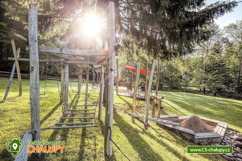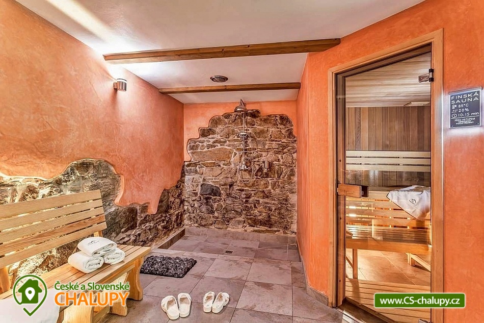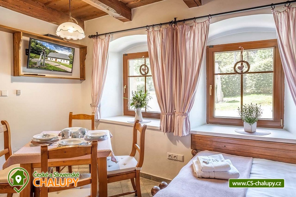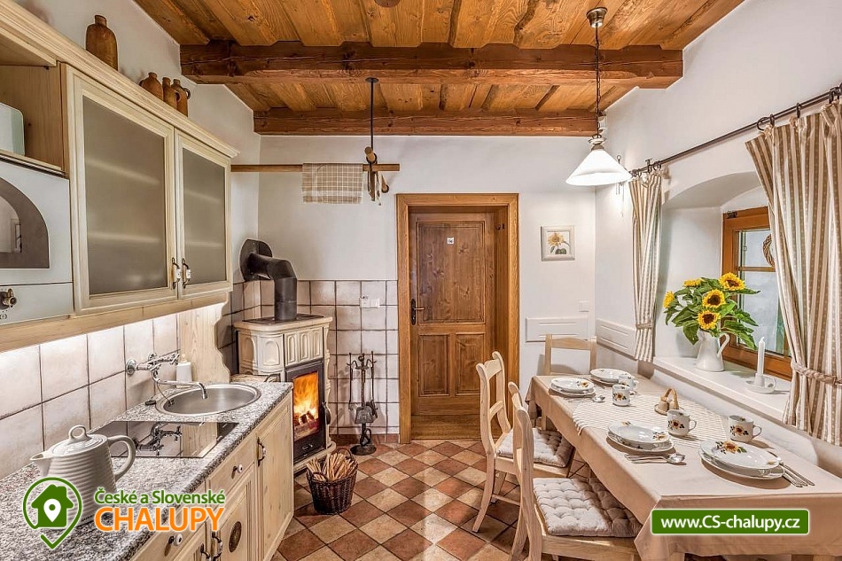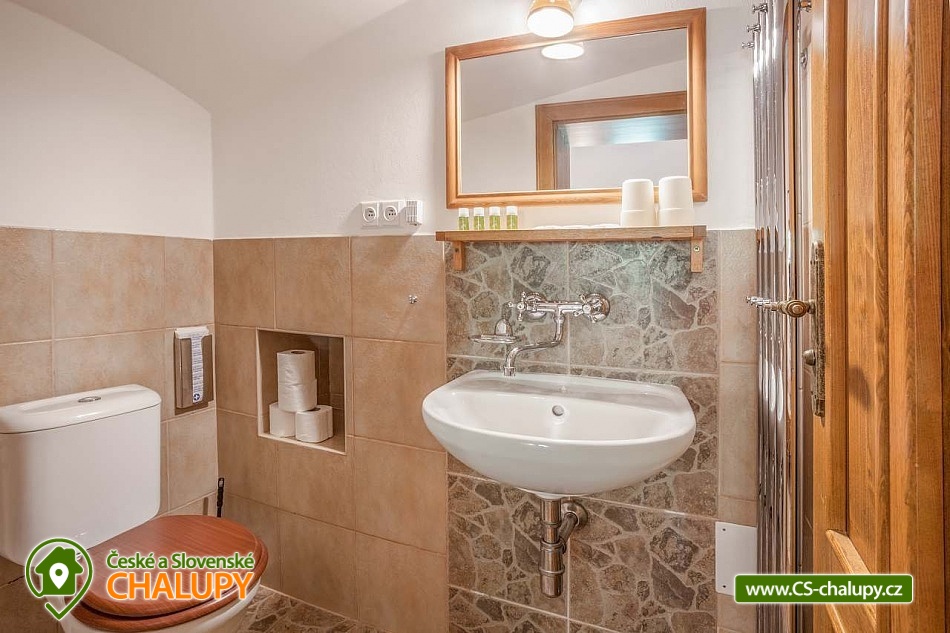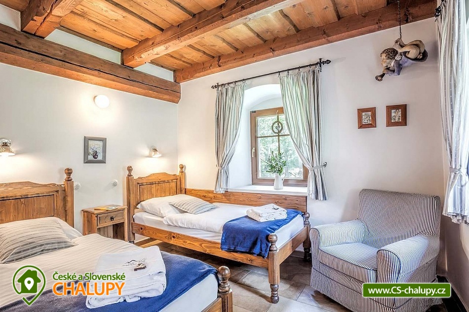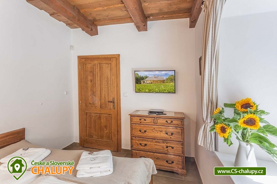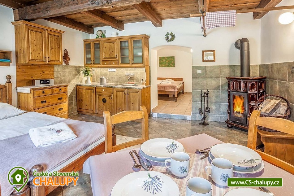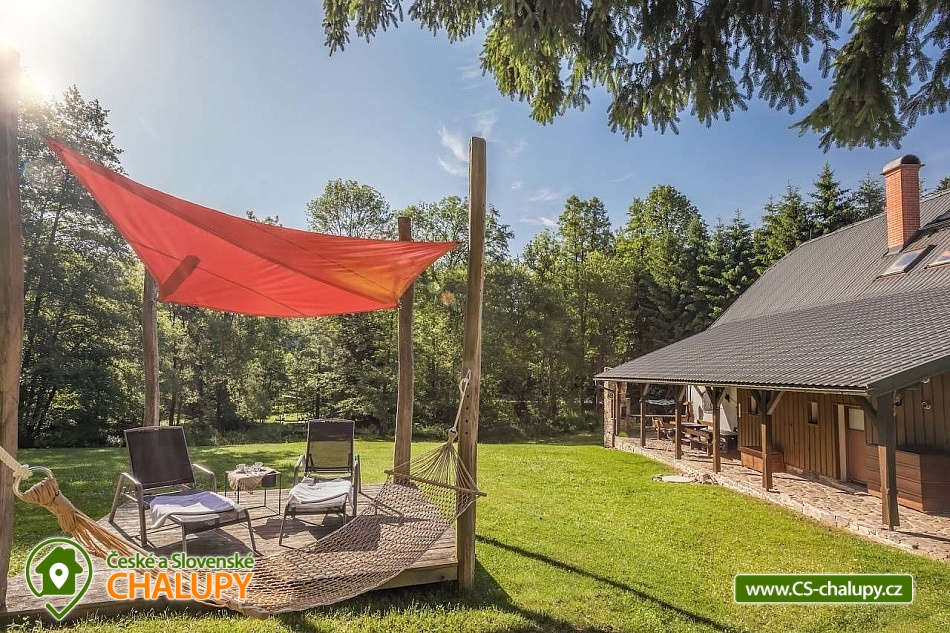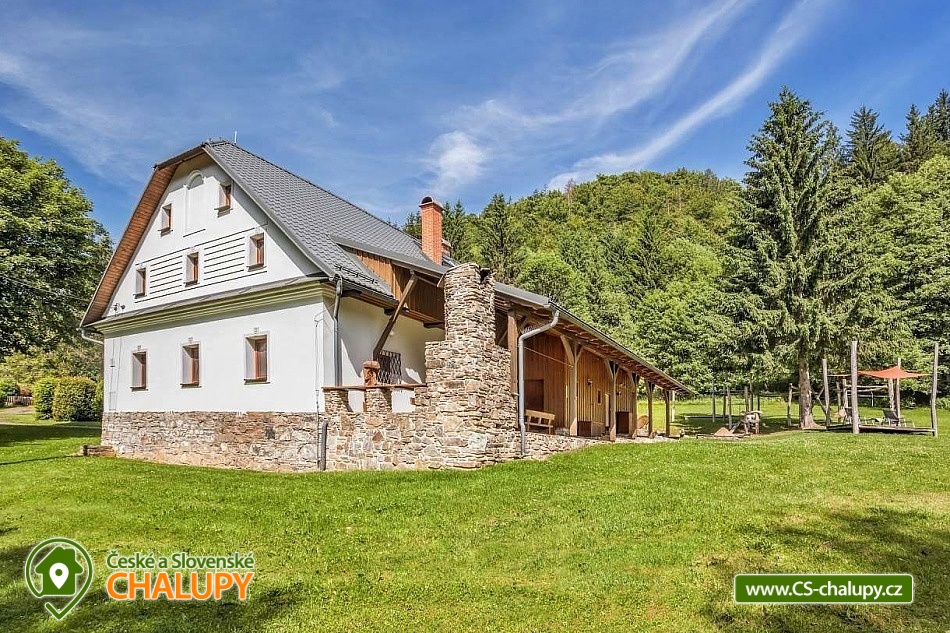Stylová chalupa Rodinná pohoda v srdci přírody - se třemi tematicky zařízenými světnicemi (Pomněnková, Levandulová a Slunečnicová). Chalupa s vlastním wellness a vinným sklípkem v malebném údolí osady Vlaské u Hanušovic a řeky Moravy. Chalupa k pronájmu poskytuje ubytování pro 12 osob. Chalupa je postavena uprostřed rozlehlého přírodního areálu, který je z jedné strany ohraničený řekou Moravou a z druhé strany lesem. V okolí chalupy je prostorná udržovaná louka vhodná v létě pro relaxaci, sport nebo posezení u velkého ohniště, v zimě pro sáňkování a bobování. K dispozici je velká krytá terasa s kamenným grilem a masivními stoly až pro 20 osob. Součástí chalupy je stylové wellness s finskou saunou včetně ozvučení, zážitkovou sprchou, odpočívárnou a dobře zásobený vinný sklep s příjemným posezením. U chalupy je dětské pískovitě s prolézačkami a lanové centrum (rodiče mají pohodlný dohled na své děti ze zastíněného pódia s lehátky a houpacími sítěmi), „Pohodárium“ na břehu řeky, ptačí domeček a malé hospodářství s vlastními ovcemi. Chalupa poskytuje ubytování pro 12 osob ve třech stylových světnicích - samostatných apartmánech (každý apartmán je pro 4 osoby + možnost dětské postýlky). Všechny apartmány se skládají z obytné místnosti s kachlovými krbovými kamny, plně vybaveným kuchyňským koutem a jídelním stolem, ložnice, koupelny a WC. Každý apartmán má vlastní koupelnu se sprchovým koutem, připravenými ručníky, osuškami a toaletními potřebami, WC. Apartmány jsou vytápěny elektrickým topením - pro větší teplotní komfort a příjemnou atmosféru je možnost topit v krbových kachlových kamnech (dřevo připraveno). Parkování přímo u chalupy. Přímé okolí chalupy nabízí - V letním období: horská turistika, cykloturistika, rybaření (lovení pstruhů), památky (Králíky, Velké Losiny, Šumperk), koupání (termální venkovní bazény, přehrada, řeka), houbaření. V zimním období: lyžování (Dolní Morava, Paprsek, Hynčice, Branná, Ramzová), turistika (zdarma zapůjčujeme sněžnice, teleskopické hole), běžkování, termální lázně i welness centra. Těšíme se na Vás u nás.