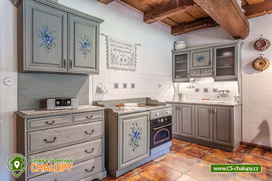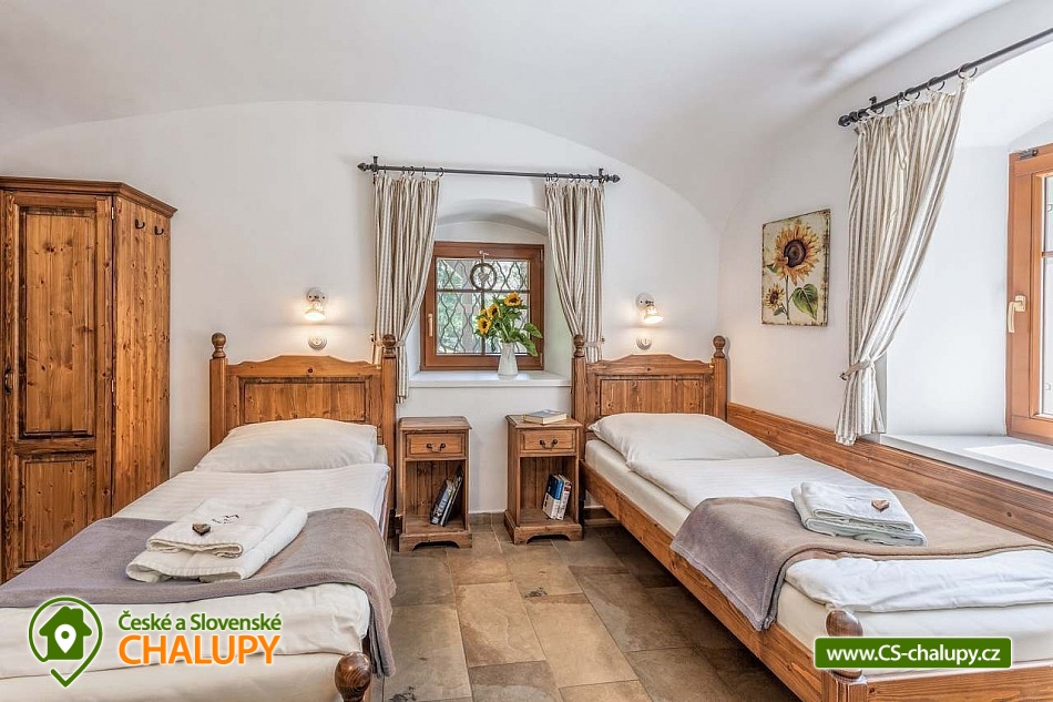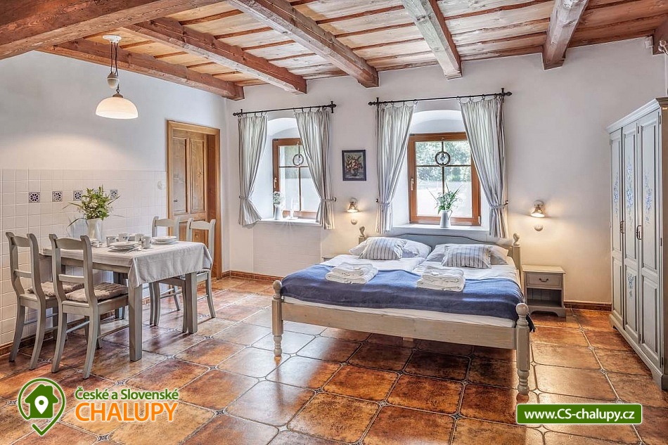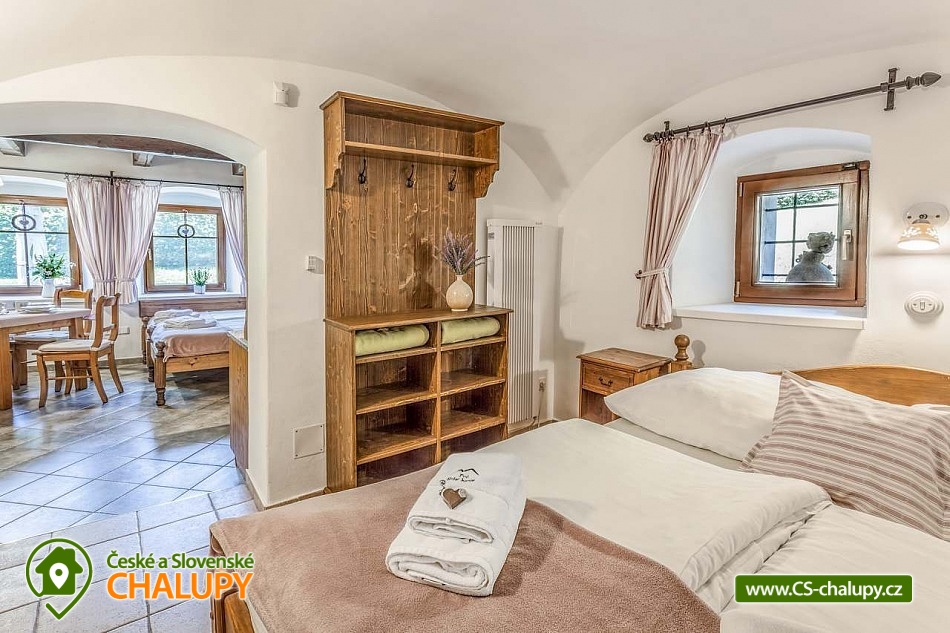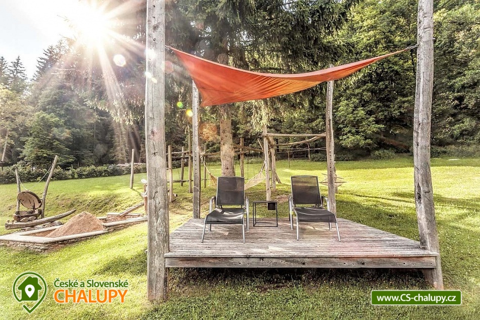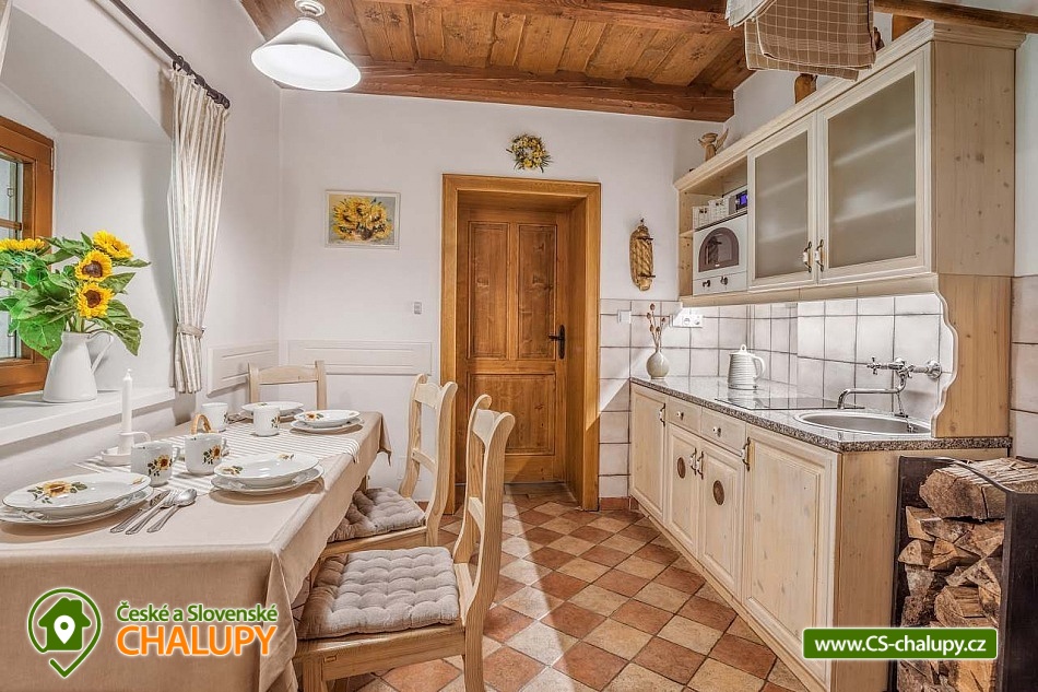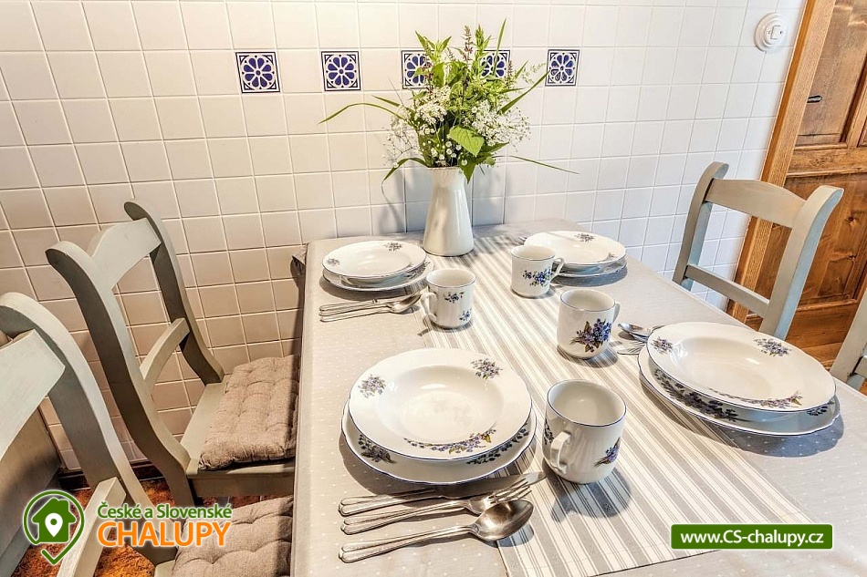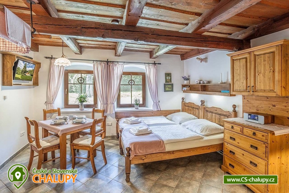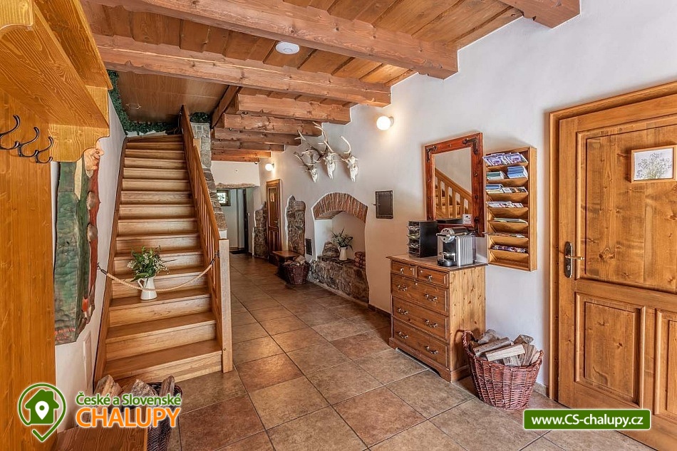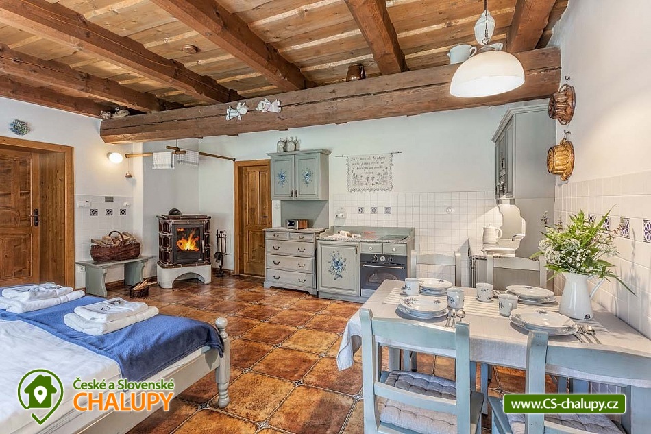 Stylová chalupa Rodinná pohoda v srdci přírody - se třemi tematicky zařízenými světnicemi (Pomněnková, Levandulová a Slunečnicová). Chalupa s vlastním wellness a vinným sklípkem v malebném údolí osady Vlaské u Hanušovic a řeky Moravy. Chalupa k pronájmu poskytuje ubytování pro 12 osob. Chalupa je postavena uprostřed rozlehlého přírodního areálu, který je z jedné strany ohraničený řekou Moravou a z druhé strany lesem. V okolí chalupy je prostorná udržovaná louka vhodná v létě pro relaxaci, sport nebo posezení u velkého ohniště, v zimě pro sáňkování a bobování. K dispozici je velká krytá terasa s kamenným grilem a masivními stoly až pro 20 osob. Součástí chalupy je stylové wellness s finskou saunou včetně ozvučení, zážitkovou sprchou, odpočívárnou a dobře zásobený vinný sklep s příjemným posezením. U chalupy je dětské pískovitě s prolézačkami a lanové centrum (rodiče mají pohodlný dohled na své děti ze zastíněného pódia s lehátky a houpacími sítěmi), „Pohodárium“ na břehu řeky, ptačí domeček a malé hospodářství s vlastními ovcemi. Chalupa poskytuje ubytování pro 12 osob ve třech stylových světnicích - samostatných apartmánech (každý apartmán je pro 4 osoby + možnost dětské postýlky). Všechny apartmány se skládají z obytné místnosti s kachlovými krbovými kamny, plně vybaveným kuchyňským koutem a jídelním stolem, ložnice, koupelny a WC. Každý apartmán má vlastní koupelnu se sprchovým koutem, připravenými ručníky, osuškami a toaletními potřebami, WC. Apartmány jsou vytápěny elektrickým topením - pro větší teplotní komfort a příjemnou atmosféru je možnost topit v krbových kachlových kamnech (dřevo připraveno). Parkování přímo u chalupy. Přímé okolí chalupy nabízí - V letním období: horská turistika, cykloturistika, rybaření (lovení pstruhů), památky (Králíky, Velké Losiny, Šumperk), koupání (termální venkovní bazény, přehrada, řeka), houbaření. V zimním období: lyžování (Dolní Morava, Paprsek, Hynčice, Branná, Ramzová), turistika (zdarma zapůjčujeme sněžnice, teleskopické hole), běžkování, termální lázně i welness centra. Těšíme se na Vás u nás.
