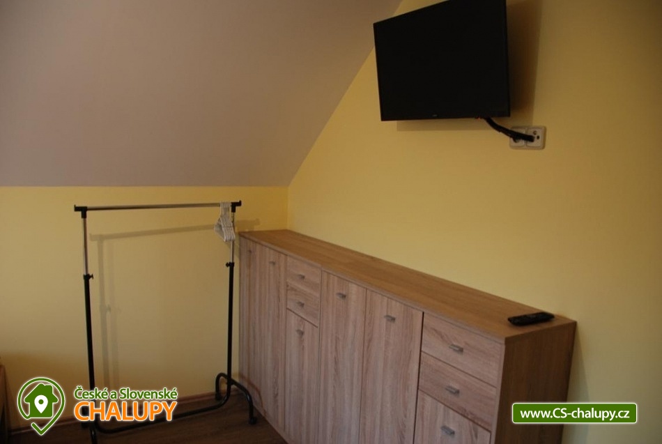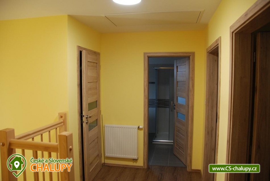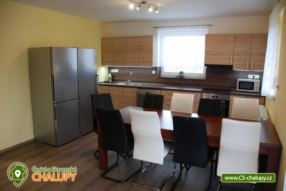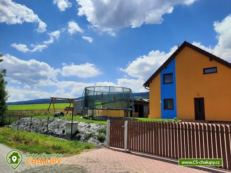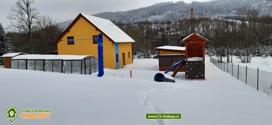 Wellness chalupa s bazénem (wellness - sauna a koupací sud s vířivkou) na zahradě a nadstandardním vybavením je zaměřená pro rodiny s dětmi a skupiny přátel. Nachází se pod Bukovou horou v obci Červená Voda - Mlýnice na pomezí Orlických hor a Jeseníků. Ideální pro letní i zimní dovolenou. Chalupa k pronajmutí poskytuje ubytování pro až 14 osob ve 4 ložnicích. Chalupu tvoří v přízemí vstupní místnost, kuchyně s jídelním koutem a obývacím pokojem, koupelna a dvoulůžkový pokoj. Po schodišti se dostanete do podkroví, kde jsou tři čtyřlůžkové pokoje, koupelna a WC. Vybavení: V celém objektu je WIFI signál pro přístup do internetu! Obývací pokoj - sedací souprava, taburety, stolek, chytrá LED TV s úhlopříčkou 126 cm, a šipkový automat (zdarma). Kuchyň je plně vybavená k vaření a stolování - sklokeramická deska s troubou a grilem, myčka na nádobí, lednice, lednice s mrazákem, mikrovlnná trouba, rychlovarná konvice a kontaktní gril. Dostatek talířů, misek, příborů, sklenic, hrnců, kastrolů atd. Jídelní kout s velkým stolem, pohodlnými židlemi a dětskou židličkou. Vstupní místnost - věšáky a velký botník (i na přeskáče). Pokoje: Maximální kapacita je 14 lůžek, dětská dřevěná postýlka. K dispozici jsou osušky, ručníky a povlečení. Všechny pokoje jsou vybaveny TV, komodou, věšákem na ramínka a lampičkami. Dětské zábrany proti pádu z postele. 1. ložnice je v přízemí - manželská postel, 2. ložnice je v 1. patře - manželská a patrová postel, 3. ložnice je v 1. patře - 2 postele a patrová postel, 4. ložnice je v 1. patře - 2 postele a patrová postel. Sociální zařízení: 1. koupelna je v přízemí - rohový sprchový kout, WC a bidet, 2. koupelna je v 1. patře - rohový sprchový kout, velká vana, pračka a 3. WC je také v 1. patře. Chalupa je vytápěna pomocí plynového kotle. Koupelny a obývací pokoj včetně kuchyně jsou vytápěny i podlahově. Zahrada: Vyhřívaný bazén 6x3x1,5 m s velkým zastřešením a možností koupání i za nepříznivého počasí. Sauna a koupací sud s vířivkou - vytápění dřevem. Velká pergola s posezením a krbem - rošt a gril do 18 kg masa, výčepní zařízení a stůl na stolní tenis. Atrakce pro děti - lanová dráha, fotbalové branky, zahradní domek se skluzavkou a horolezeckou stěnou, pískoviště, houpací sítě, péráci, houpačky, trampolína, trubkové skluzavky, rakety na badminton včetně sítě, koš na basketbal, kopec na sáňkování. Garáž je uzamykatelná. Držáky na lyže a snowboardy, stolní fotbálek, možnost úschovy kol nebo kočárků. Chalupa je vhodná pro letní i zimní dovolenou - Ski resort Buková hora, Dolní Morava, přehrada Pastviny a další. V okolí: 1,7 km Ski resort Buková hora v Červené Vodě disponuje vyhřívanou čtyřsedačkou a krytou bublinou, možnost přejet na stranu do Čenkovic, 15 km Ski resort Dolní Morava má sjezdovku širokou až 80 m, nejprudší černou sjezdovku v ČR, sáňkovou dráhu slouhou 2,5 km, v létě je otevřen Mamutíkův vodní park, pískoviště, fun park, Stezka V Oblacích a NOVINKOU je visutá lávka - nejdelší na světě! Dále Tvrz Hůrka, Tvrz Bouda, Vojenské muzeum Králíky a Lichkov, Areál biatlonu Letohrad, Acrobat Park Štíty. Těšíme se na Vás u nás.