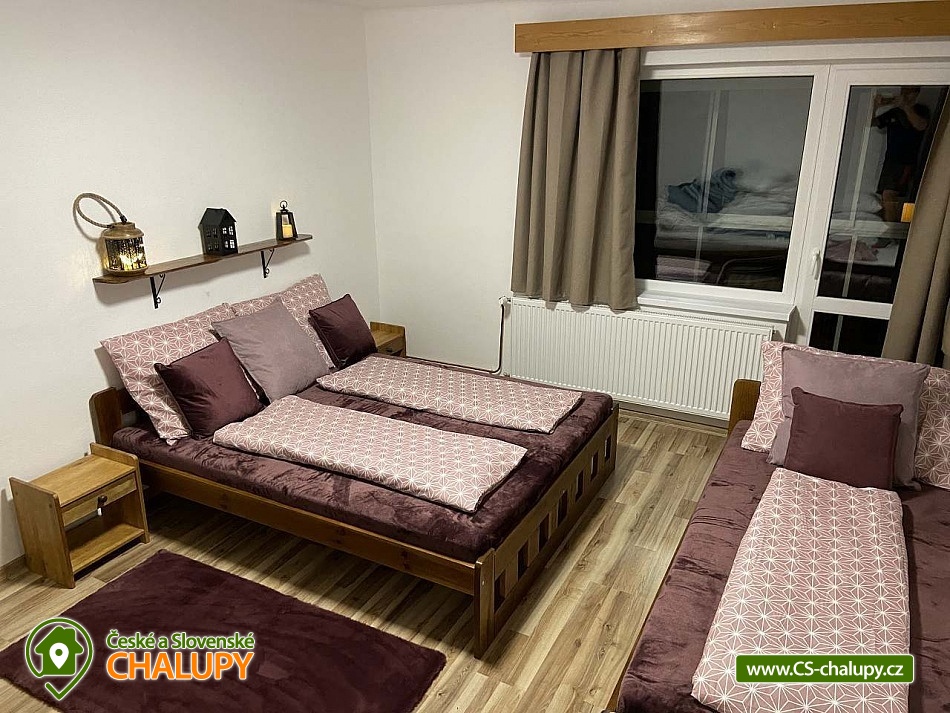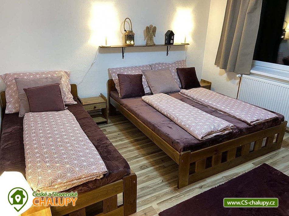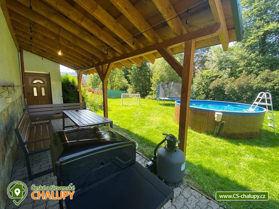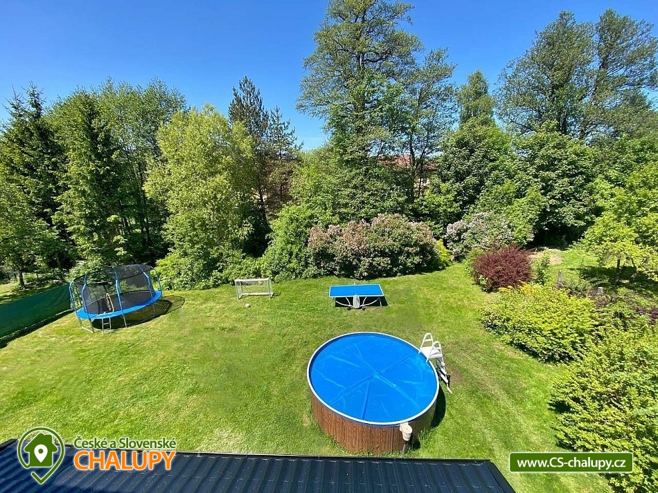 Wellness chalupa s bazénem Dolní Morava - pohodlí, zábava i relax pro celou rodinu. Prostorná chalupa na pomezí Orlických hor a Jeseníků vás nadchne svým komfortem i skvělou polohou u vyhlášených celoročních areálů Buková hora a Dolní Morava. Wellness chalupa v Červené Vodě nabízí ubytování pro až 12 osob ve 3 ložnicích. POPIS: 3 neprůchozí ložnice v podkroví (ideální pro více rodin nebo skupinu přátel). Společenská místnost s krbem, televizí a velkým jídelním stolem. Dětská postýlka pro nejmenší. VYBAVENÍ JAKO DOMA: Plně vybavená kuchyně (včetně kávovaru), Dvě koupelny koupelna s vanou, sprchami, Venkovní pergola s plynovým grilem. ZÁBAVA PRO DĚTI I DOSPĚLÉ: Celoroční vířivka pro 5 osob, stolní fotbálek, ping - pong, šipky. Venkovní hřiště: trampolína, fotbalové branky. Nadzemní bazén průměr 5 m. SPORTOVNÍ RADOVÁNKY NA DOSAH: SKI Bukovka – 1,5 km, moderní čtyřsedačková lanovka s vyhříváním kousek od chaty, Dolní Morava – 12 km, ideální na ski, populární v létě pro single - trail. Upravené běžkařské trasy v okolí. Možnost ski - alpových výletů do přírody a paraglidin. SKVĚLÉ VÝLETNÍ CÍLE: Stezka v oblacích a Skybridge na Dolní Moravě. Dvě rozhledny, vojenské tvrze, klášter Hora Matky Boží. Pastvinská přehrada pro letní koupání a vodní sporty. Skokanský můstek Aleše Valenty a mnoho dalšího. NĚCO NAVÍC: Parkování přímo u chalupy pro 5 aut na vlastním pozemku. Místní restaurace U Trojice 3 minuty od chalupy. Těšíme se na Vás u nás.