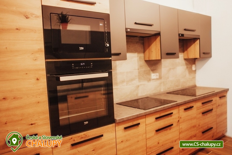 Wellness chalupa s vnitřním bazénem v srdci Krkonoš přímo na okraji Krkonošského národního parku u řeky Jizery, poloha u osady Hranice a obce Vilémov u Rokytnice nad Jizerou. Wellness nabízí vnitřní vyhřívaný bazén se slanou vodou, infra saunu pro 4 osoby a luxusní vířivku pro až 5 osob. Na pozemku protéká horský potok. Chalupa nabízí celkem 6 pokojů s kapacitou 25 lůžek + navíc 2 lůžka o délce 180cm. Pokoje: 4x čtyřlůžkový pokoj s manželskou postelí (140x200) a patrovou postelí (80x200), 1x čtyřlůžkový pokoj s manželskou postelí (140x200) a dvěma samostatnými postelemi (80x200), 1x sedmilůžkový pokoj se dvěma ložnicemi - (2x dvojlůžko 140×200, 1x jednolůžko 90×200, 1x patrová postel 80×180). Na každém pokoji je k dispozici HD TV s pevným připojením k internetu a signál WiFi. Každý pokoj má svou vlastní koupelnu se sprchovým koutem a WC. V přízemí se nachází dámské WC s umyvadlem a pánské WC s umyvadlem a pisoárem. Další sprchový kout a WC je součástí wellness. Kuchyně je plně vybavena moderními spotřebiči - 2x indukční deska s digestoří, horkovzdušná trouba s grilem, mikrovlnná trouba, myčka nádobí, americká lednice s výrobníkem ledu a kávovar na espresso. Společenská místnost nabízí příjemné posezení u kachlových kamen. Je zde velkoplošná TV, wifi, stolní fotbálek a plně vybavený bar s výčepem. Vytápění: nejvíce je využíváno vytápění elektrickými přímotopy, které umožňuje individuální nastavení teploty v každém pokoji/koupelně dle vašich představ. V prostorách wellness je po celé ploše instalováno podlahové topení a součástí společenské místnosti jsou velká krbová kamna na dřevo. Parkování je vyhrazeno na soukromém pozemku přímo u objektu s kapacitou cca 8 míst. Příjezd na parkoviště je přímo z hlavní udržované silnice. Chalupa je vhodným výchozím bodem pro letní i zimní sporty. Nejbližší vlek je pouze 250 m od chaty - Pašák ve Vilémově. Nejbližší velká střediska s lanovkami jsou 5 - 10 minut jízdy autem - Paseky, Rokytnice, Harrachov, Vysoké nad Jizerou, Jablonec nad Jizerou. Běžkařské tratě vedou v blízkosti chaty (do 1 km), případně nástup na Krkonošskou magistrálu v Harrachově nebo Rokytnici. V létě okolí přímo vybízí k turistice. Součástí chalupy je prostorná lyžárna/kolárna, takže je pobyt vhodný i pro milovníky cykloturistiky. Cyklotrasy vedou v okolí chaty - napojení na cyklotrasu Jizera je vzdáleno pouze 1,5 km. Těšíme se na Vás u nás.
