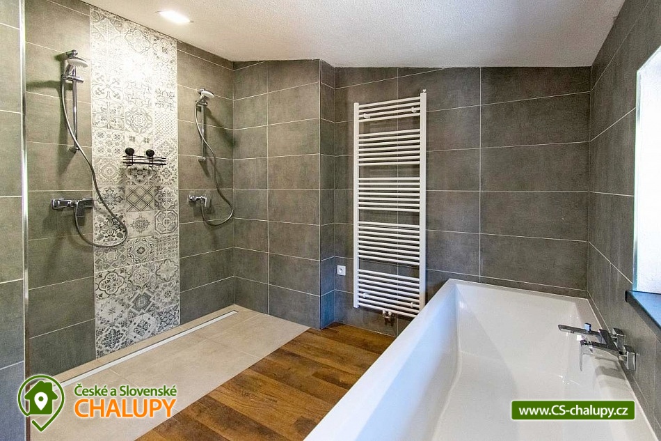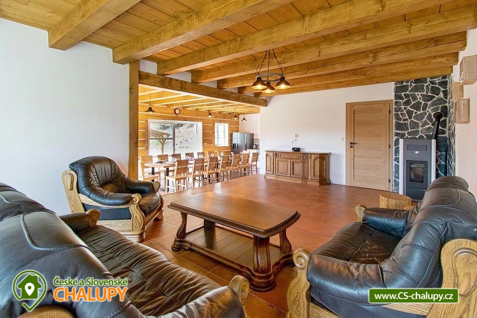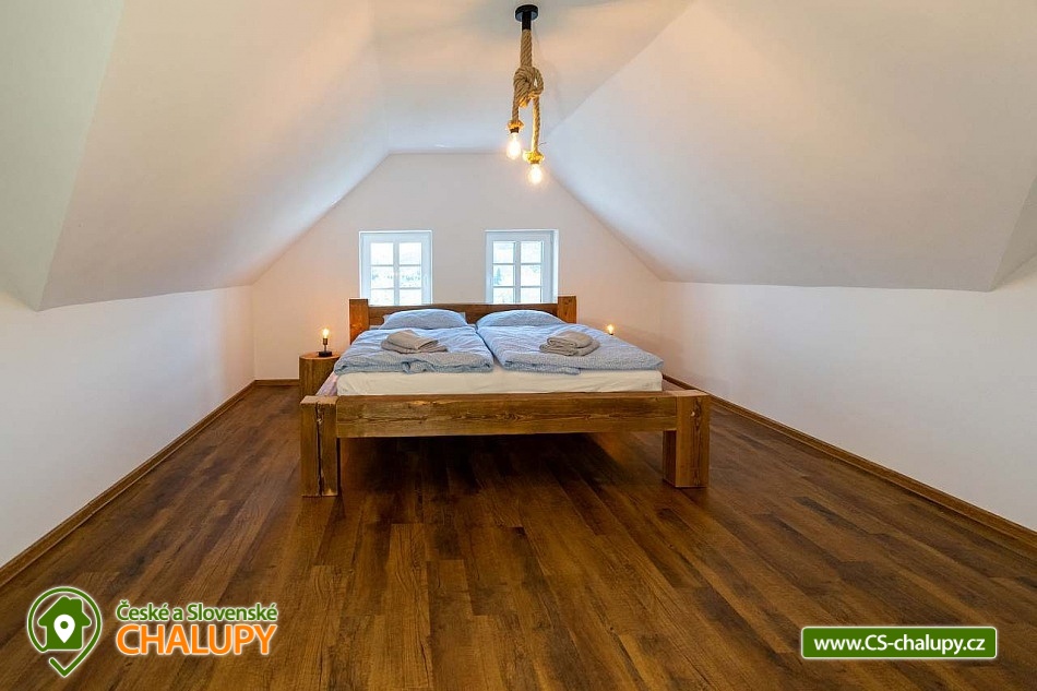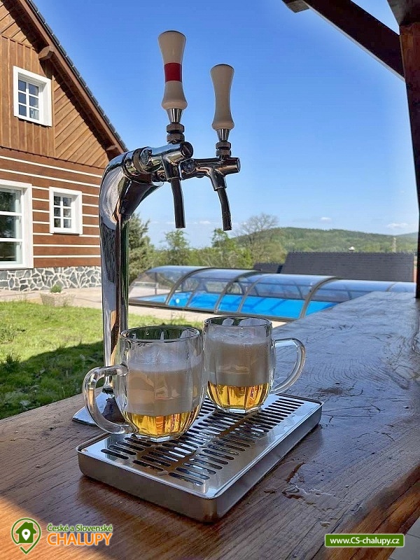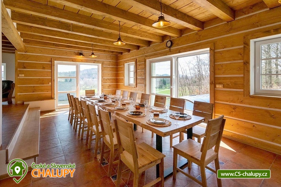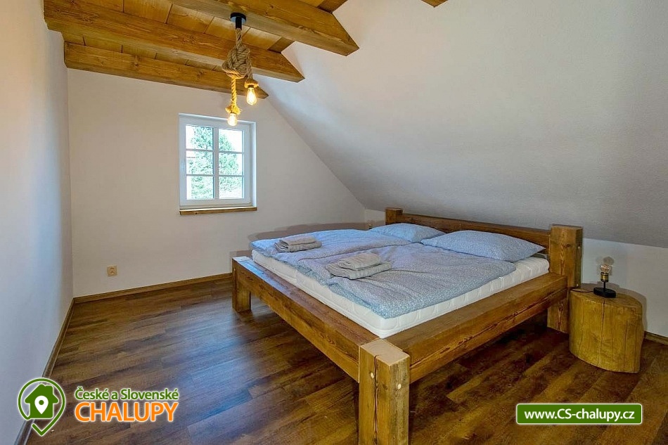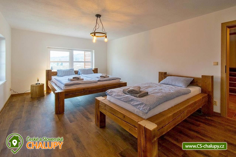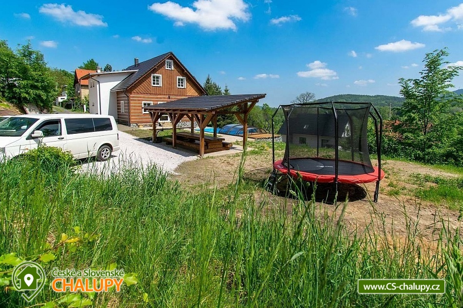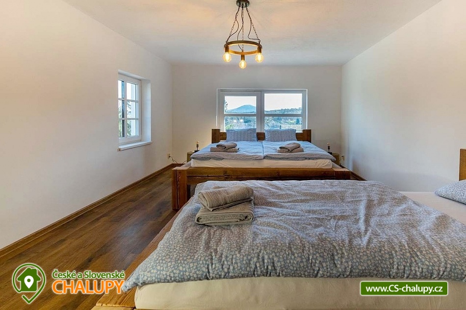 The newly built Chalupa u Bedrnů with a beautiful view of Jedlová hora is located on the edge of the forest in the small village of Rybniště between the towns of Chřibská and Krásná Lípa. In the immediate vicinity, the beautiful nature of the Lužické Mountains PLA and the Czech Switzerland National Park beckons for trips. During your stay, you can look forward to a covered outdoor pool and pleasant moments spent on a spacious terrace with a grill and a pipe. The cottage near Bedrnů offers accommodation for 15 people, there are 3 double bedrooms (double bed) and 3 triple bedrooms (double bed + single bed). The entire cottage is furnished comfortably, modernly and with a touch of country style. For shared moments, there is a common room with a living area with a fireplace, sofa set and TV and a dining area with a large wooden dining table and a view of nature through large balcony windows. The room includes a fully equipped kitchen (hob, dishwasher, hot air and microwave oven, American fridge with freezer and ice maker, kettle, coffee maker, dishes and all kitchen utensils). For children, a cot, toys and a dining chair can be rented. WIFI internet connection is available throughout the building. The sanitary facilities include one bathroom with shower and toilet and one separate toilet on the ground floor and one bathroom with shower, bathtub and toilet on the first floor. Heating is provided by underfloor heating and a pellet stove with an exchanger. Around the cottage there is a spacious plot (approx. 1800 m²) with a grassy garden, a covered terrace with a barbecue and a pipe, deckchairs and a covered swimming pool. Children can enjoy the trampoline. There is a storage room for bikes and skis. You can park directly at the building. In the vicinity of the building, hiking, cycling, swimming, fishing, mushroom picking, cross-country skiing and skiing are possible. There are tennis courts nearby. Swimming options include, for example: Školní pond, Chřibská swimming pool, Tomiškův pond, Doubice pond, Kyjovská dam, Jiřetín pod Jedlovou swimming pool, Lesenská dam, Kytlice - Lesní pond, Jetřichovice swimming pool, Mašíňák pond, Rumburk swimming pool, etc. In winter nearby ski resorts are available: Horní Podluží, Jedlová, Mezičky and Kytlice. Directly under the cottage there are prepared cross-country trails or you can use the cross-country trails on the contours of the Jedlové mountain. Pravčická brána, Šaunštejn, Falkenštejn, Pavlina údolí, Ostrovské skály, Kamenický Castle, Tolštejn or Pastýřská stěn are alluring for trips in the area. We look forward to seeing you here.