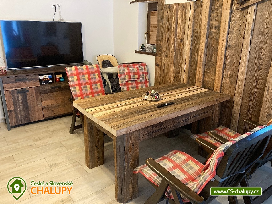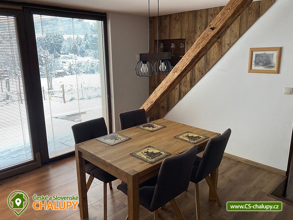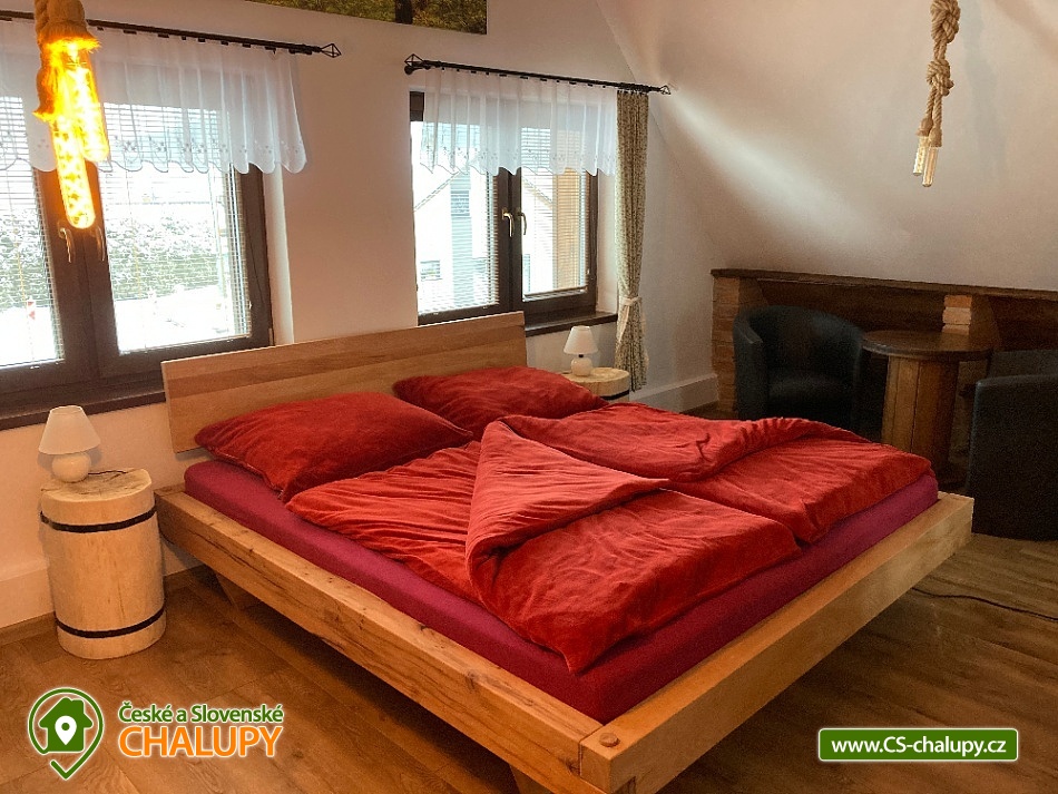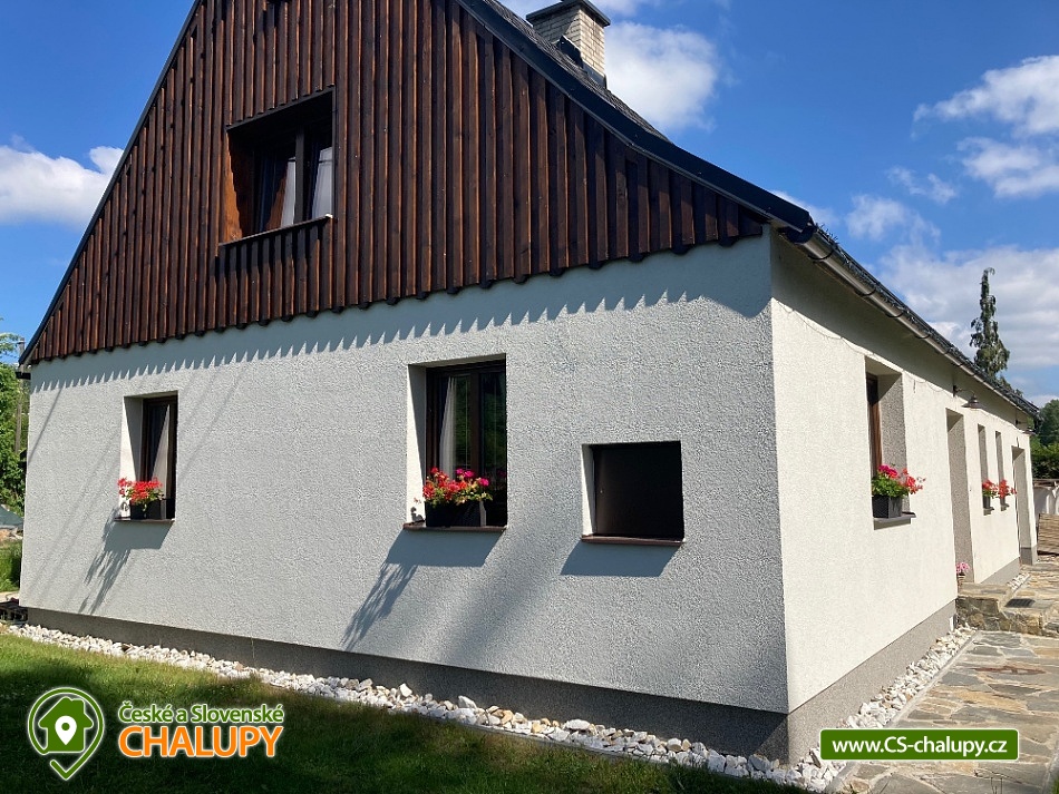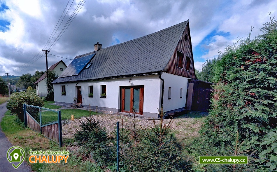 Wellness chalupa s bazénem nedaleko města Jeseník a přírodní rezervace Rejvíz nabízí celoročně ubytování pro až 12 osob ve 3 ložnicích. Wellness - finská sauna a infra sauna s relaxační zónou plus venkovní vyhřívaný bazén. POPIS: 3 ložnice vybavené manželkou postelí, v jedné ložnici rozkládací dvoulůžko, 2 obýváky s komfortním rozkládacím dvoulůžkem, 2 koupelny - v jedné koupelně je umístěná pračka, 2 kuchyně - komfortně vybavené i pro náročnější kuchaře (sklokeramická varná deska, el. trouba, lednička s mrazničkou, mikrovlnná trouba, myčka na nádobí, topinkovač, el. konvice a vše ostatní), 1 finská sauna pro 5 osob + 1 infra sauna s karbonovými topidly pro 2 osoby + relaxační místnost, 1 společenská místnost s dětským koutkem, internetovou televizí + přístup na NETFLIX, elektronickými šipkami, umyvadlem a servírovací deskou, 1 místnost pro kola a lyže vybavená vysoušeči bot + sušičkou na prádlo, 1 venkovní zastřešená pergola 4x8 m s venkovním krbem a posezením pro 10 osob, venkovní vyhřívaný bazén pomocí tepelného čerpadla 3,7 x 6 m, venkovní dětský kout + ohniště , 4 parkovací stání na zpevněné ploše u chalupy. Možnost zapůjčení 1 polohovacích dětské jídelní židličky s pultíkem. Les začíná cca 200 m za chalupou stejně jako upravená běžecká stopa pro běžkaře (z Jeseníku do Filipovic). V zimě možnost lyžovaní v blízkých zimních střediscích (Filipovice 4 km, Červenohorské sedlo 10 km, Ramzová 12 km ). Na Pradědu se uzavírá lyžařská sezóna na přelomu měsíce dubna a května. V docházkové vzdálenosti 5 minut od chalupy je sportovně zábavní centrum pod střechou, které zahrnuje dětský svět s provazovou stezkou, balonkovým koupalištěm, skluzavkami, prolézačkami a dalším vybavením pro děti včetně enviromentálního vzdělávání jako poznávání stop zvířat a jiné. Dále svět sportu s lyžařským simulátorem, lezeckou stěnou, elektronickým biatlonem, balanční plošinou, lanovými překážkami a další. Těšíme se na Vás u nás.