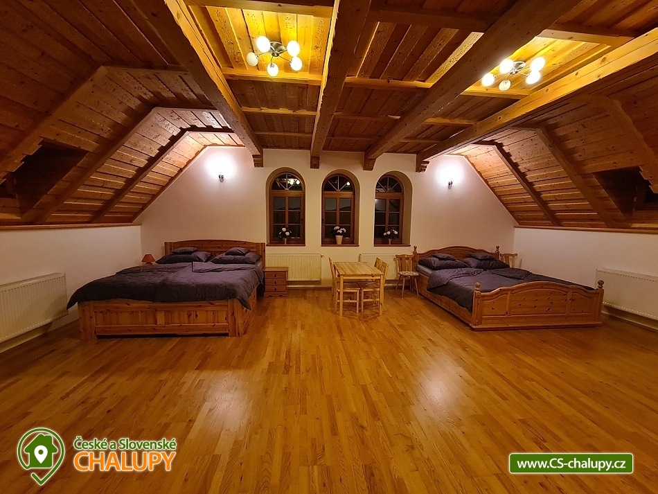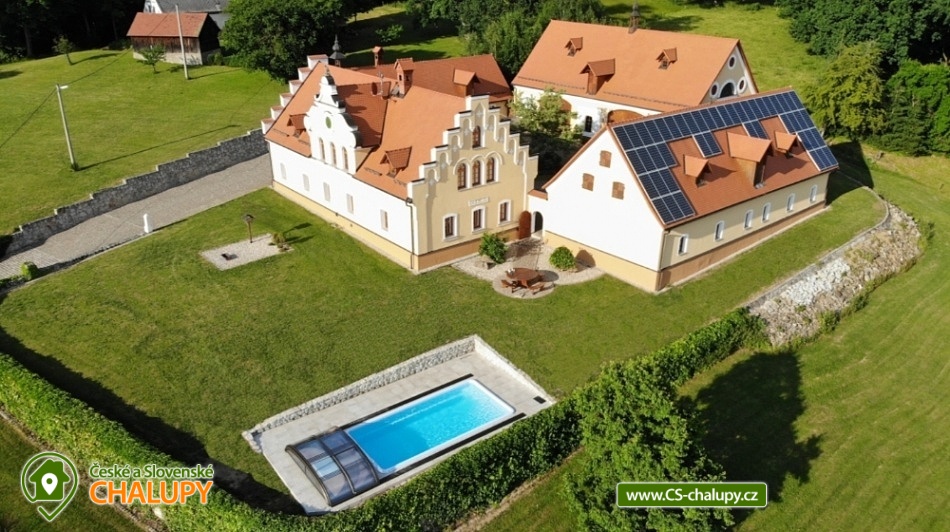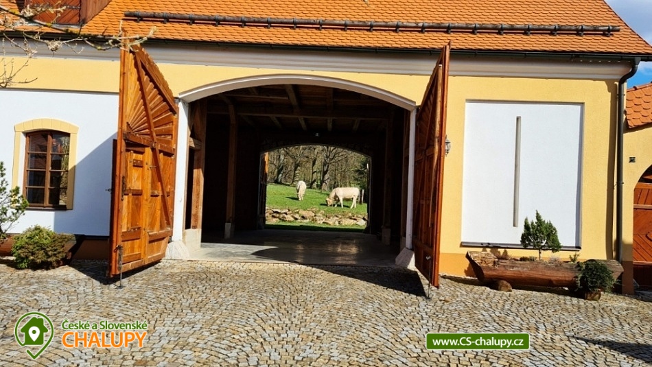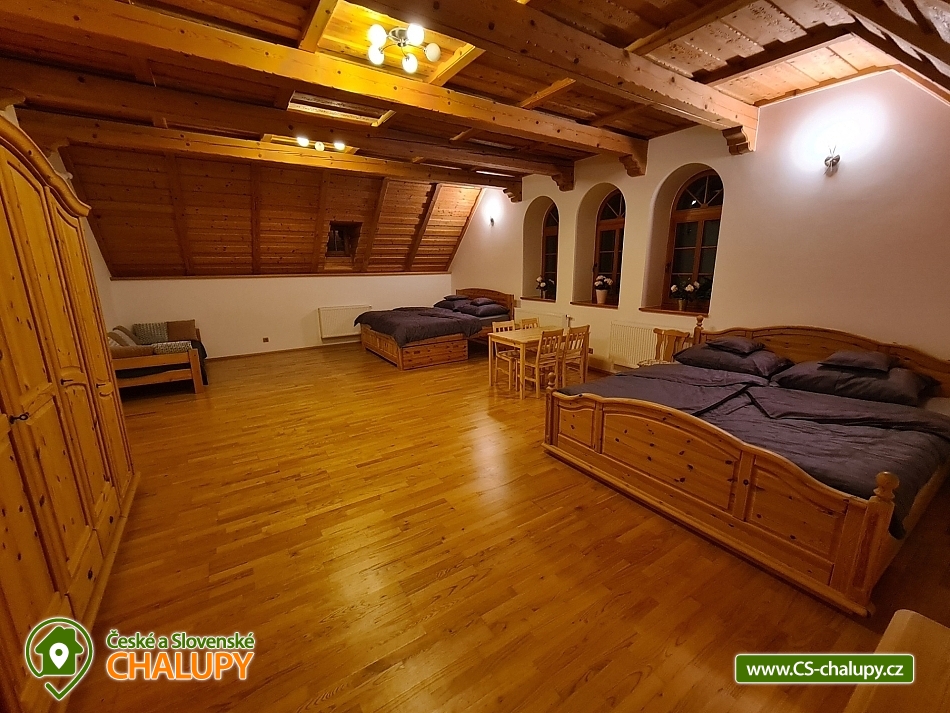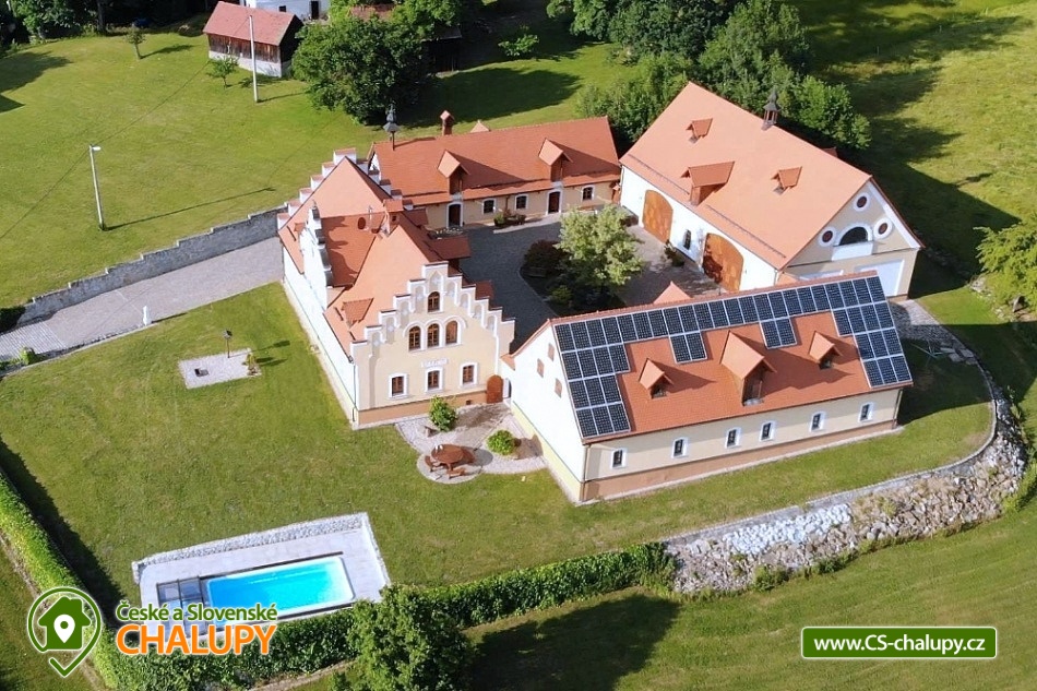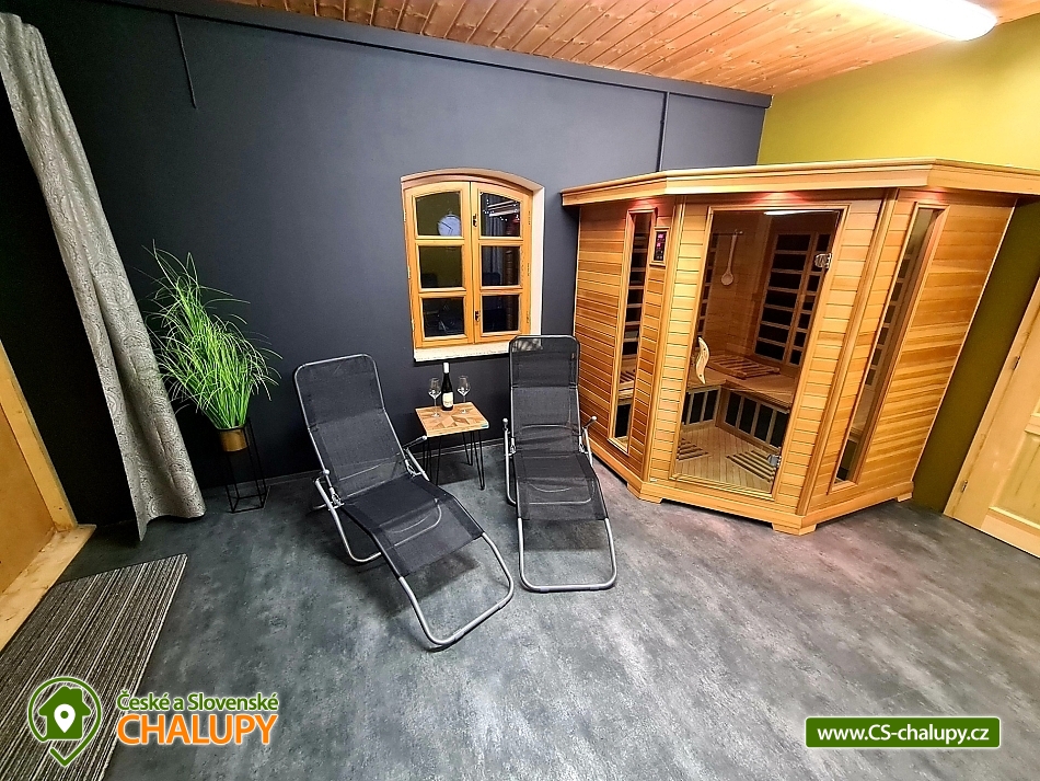 Wellness chalupa s bazénem na úpatí Krušných hor u jezera Medard. Stylová chalupa leží v lázeňském trojúhelníku - Františkovy Lázně, Mariánské Lázně a Karlovy Vary. Chalupa - původně venkovský statek po celkové rekonstrukci s vlastním wellness a venkovním bazénem je ideální k prožití pohodové dovolené, popř. víkendu s rodinou nebo přáteli. Chalupa je pronajímána pouze jako celek 1 skupině klientů - skládá se ze 4 budov s uzavřeným dvorem a okolními pozemky 1,1 hektaru, tedy skýtá dokonalé soukromí a klid. Chalupa nabízí velkorysé ubytování ve 4 ložnicích (40 m2, 50 m2, 32 m2 a 32 m2) pro až 17 osob. V přízemí je 50 m2 obývák s kuchyní a velkými kachlovými kamny, v patře společenská místnost s fotbálkem. Plně vybavená kuchyň - 2x lednice, myčka, mikrovlnka, trouba, varná konvice, kávovar, toustovač a základní potraviny (sůl, cukr.... ). Obytná budova 300 m2: Stylová společenská místnost s kachlovými kamny, Smart Led TV, internet a WiFi. Pračka a sušička, vířivá vana, fotbálek, společenské hry. Otevřená pergola 150 m2: Venkovní krytá pergola s grilem. Stolní tenis, šipky, dětská houpačka. Taverna 75 m2: 2 místnosti: 1) Vytápěná místnost vhodná k posezení větší skupiny, k dispozici chlazení na sudové pivo. 2) Wellness s finskou saunou a infrasaunou s vlastním vchodem do zadního vnějšího traktu objektu. Stodola 220 m2: Prázdná stodola s gletovaným betonem vhodná pro větší akce, svatby. Sociální zařízení v přízemí: koupelna 12 m² s vířivou vanou, sprchovým koutem, záchodem, pračkou a sušičkou, samostatný záchod. V patře koupelna s vanou, sprchovým koutem a záchodem. Vytápění: Elektrokotel a kotel na dřevo, vytápění je v ceně pobytu. Venkovní gril. Venkovní bazén. Parkování na vlastním pozemku před chalupou, motorkáři mohou zaparkovat ve stodole. Kraj patří k regionům s velkou koncentrací památek, bohatou nabídkou zážitků a přírodních krás a proto je turisty hojně navštěvovaný. V okolí doporučujeme: Lázně: Františkovy, Mariánské a Karlovy Vary. Hrady a zámky: Loket, Vildštejn, Chebský hrad, Hartenberg, Seeberg, Bečov nad Teplou. Památky: Areál proboštství Chlum Svaté Maří, Statek Bernard - Centrum tradičních řemesel, Cheb - náměstí, Špalíček. Příroda: Soos národní přírodní rezervace, Svatošské skály, Krušné hory, Jezírko Amerika - zoo, půjčení lodiček. Koupání: Rybník Boden, Jezero Medard a aquapark Aquaforum - Františkovy Lázně.