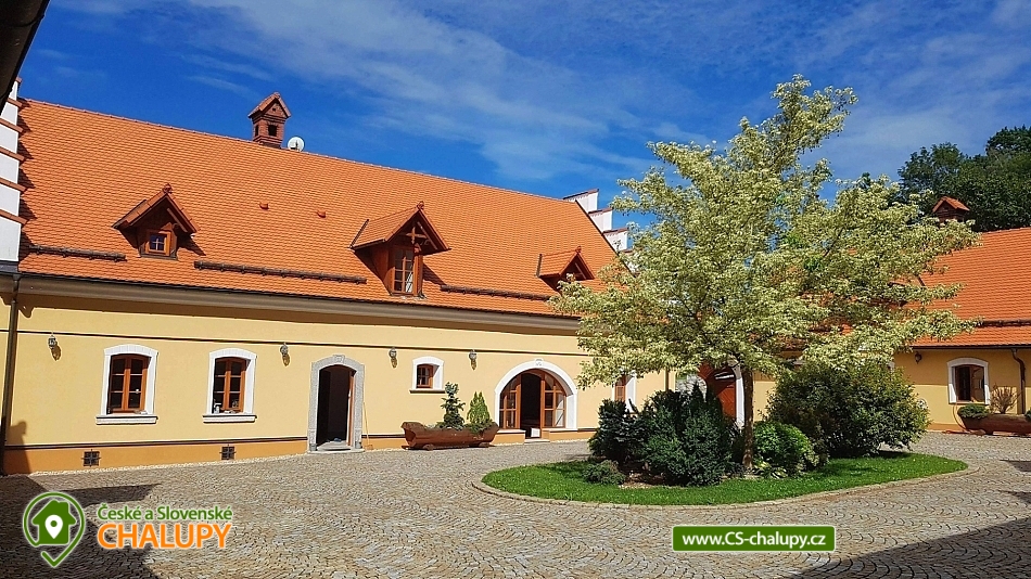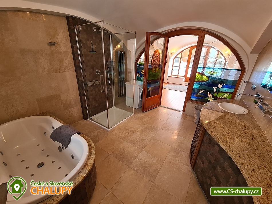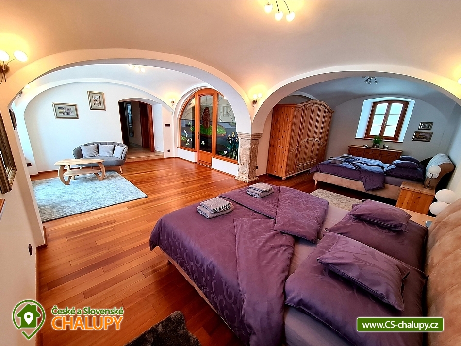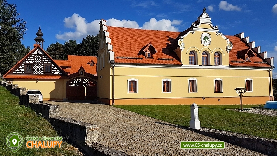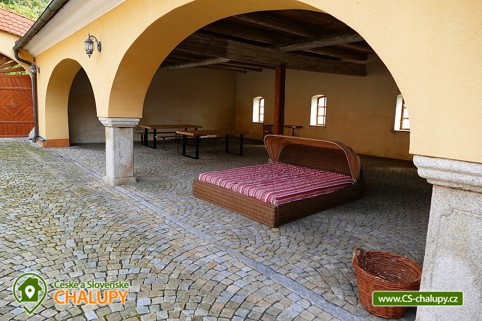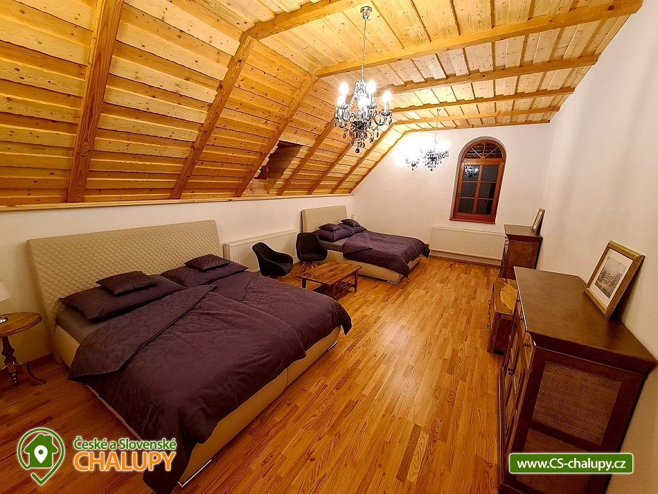 Wellness chalupa s bazénem na úpatí Krušných hor u jezera Medard. Stylová chalupa leží v lázeňském trojúhelníku - Františkovy Lázně, Mariánské Lázně a Karlovy Vary. Chalupa - původně venkovský statek po celkové rekonstrukci s vlastním wellness a venkovním bazénem je ideální k prožití pohodové dovolené, popř. víkendu s rodinou nebo přáteli. Chalupa je pronajímána pouze jako celek 1 skupině klientů - skládá se ze 4 budov s uzavřeným dvorem a okolními pozemky 1,1 hektaru, tedy skýtá dokonalé soukromí a klid. Chalupa nabízí velkorysé ubytování ve 4 ložnicích (40 m2, 50 m2, 32 m2 a 32 m2) pro až 17 osob. V přízemí je 50 m2 obývák s kuchyní a velkými kachlovými kamny, v patře společenská místnost s fotbálkem. Plně vybavená kuchyň - 2x lednice, myčka, mikrovlnka, trouba, varná konvice, kávovar, toustovač a základní potraviny (sůl, cukr.... ). Obytná budova 300 m2: Stylová společenská místnost s kachlovými kamny, Smart Led TV, internet a WiFi. Pračka a sušička, vířivá vana, fotbálek, společenské hry. Otevřená pergola 150 m2: Venkovní krytá pergola s grilem. Stolní tenis, šipky, dětská houpačka. Taverna 75 m2: 2 místnosti: 1) Vytápěná místnost vhodná k posezení větší skupiny, k dispozici chlazení na sudové pivo. 2) Wellness s finskou saunou a infrasaunou s vlastním vchodem do zadního vnějšího traktu objektu. Stodola 220 m2: Prázdná stodola s gletovaným betonem vhodná pro větší akce, svatby. Sociální zařízení v přízemí: koupelna 12 m² s vířivou vanou, sprchovým koutem, záchodem, pračkou a sušičkou, samostatný záchod. V patře koupelna s vanou, sprchovým koutem a záchodem. Vytápění: Elektrokotel a kotel na dřevo, vytápění je v ceně pobytu. Venkovní gril. Venkovní bazén. Parkování na vlastním pozemku před chalupou, motorkáři mohou zaparkovat ve stodole. Kraj patří k regionům s velkou koncentrací památek, bohatou nabídkou zážitků a přírodních krás a proto je turisty hojně navštěvovaný. V okolí doporučujeme: Lázně: Františkovy, Mariánské a Karlovy Vary. Hrady a zámky: Loket, Vildštejn, Chebský hrad, Hartenberg, Seeberg, Bečov nad Teplou. Památky: Areál proboštství Chlum Svaté Maří, Statek Bernard - Centrum tradičních řemesel, Cheb - náměstí, Špalíček. Příroda: Soos národní přírodní rezervace, Svatošské skály, Krušné hory, Jezírko Amerika - zoo, půjčení lodiček. Koupání: Rybník Boden, Jezero Medard a aquapark Aquaforum - Františkovy Lázně.