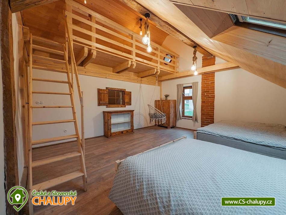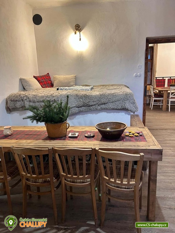 Wellness cottage with swimming pool - Lanšperk Castle. The cottage is located in a quiet location on the outskirts of the village of Knapovec, part of the city of Ústí nad Orlicí. In the summer you can enjoy the lavender field with 300 bushes every day or relax in the wellness with a sauna, jacuzzi, hot tub and swimming pool. The cottage offers accommodation for 16 people in 3 bedrooms. 1x triple on the ground floor, 1x four-bed upstairs and 1x nine-bed upstairs - in this bedroom there is another floor with mill stairs, where 5 of the nine beds are located. There is a living room, which serves as a common room. There is a sofa, TV, oven and a play corner for children. There is also a fully equipped kitchen (dishes, fridge with freezer, dishwasher, ceramic hob, oven, toaster, microwave, kettle, coffee maker) and a dining table for 10 people. The sanitary facilities include two bathrooms with a sink, shower and toilet. There is also a washing machine, cots and Wi-Fi connection. The heating is electric underfloor. It is possible to heat with wood in the fireplace. Parking is possible directly at the property. You can relax in the USSPA massage whirlpool for 5 - 6 people, in the sauna for 5 - 6 people, there is also a cooling tub and a tub that you can heat with wood. You can also play table tennis or grill something good on the fireplace or on the outdoor grill. In the summer, a swimming pool will be available. A trampoline and swings are prepared for your children. Approximately 200m from the cottage you can use the playground where you can play tennis, football or volleyball. In the winter you can rent the local hall for sports activities. The surroundings are suitable for cycling, hiking, wellness, mushroom picking, inline skating, outdoor and indoor sports. Tips for trips: Ústí nad Orlicí city museum, ruins of Lanšperk castle, summer penguin park, Andrlův chlum lookout tower, ruins of Žampach castle, Letohrad chateau. Swimming options: Ústí nad Orlicí aquapark, Litomyšl swimming pool. There is a ski lift in almost every village, in the vicinity there are several renowned ski resorts and many cross-country trails. SKI Čenkovice, Dlouhoňovice, Buková hora, Peklák. We look forward to seeing you.