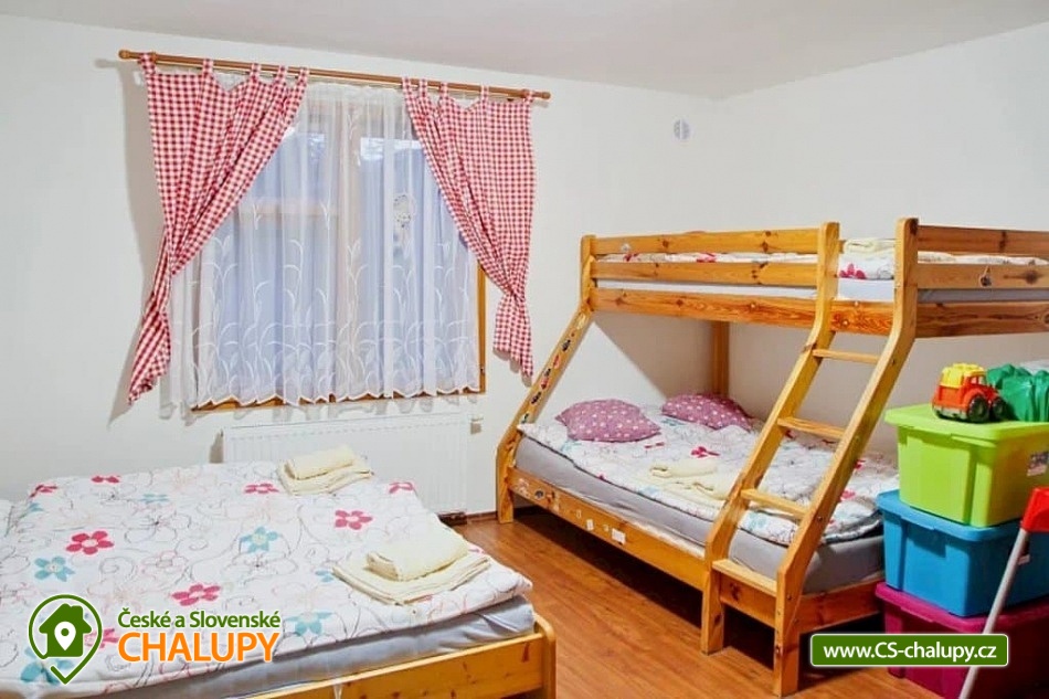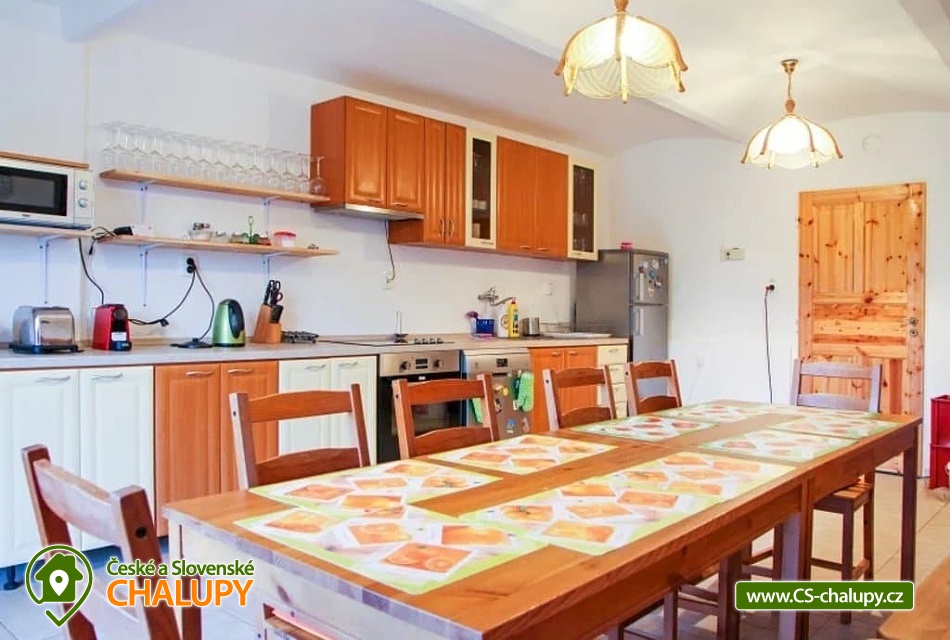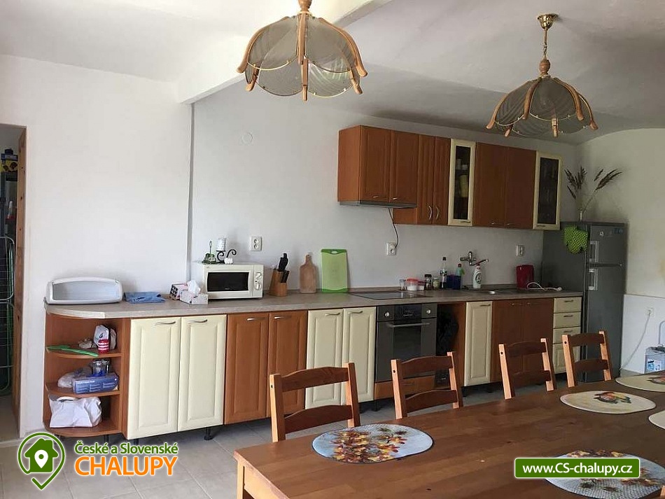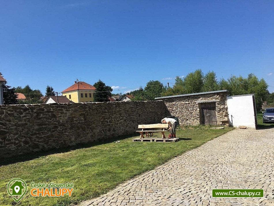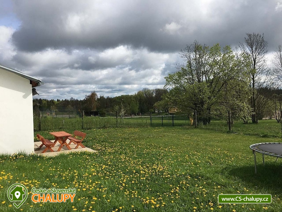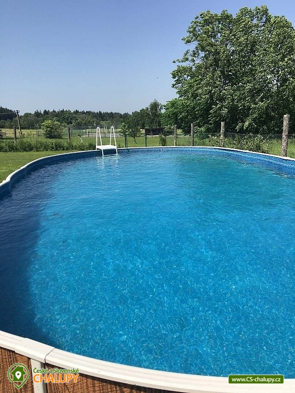 Wellness cottage with swimming pool (outdoor pool 9x4 m, indoor jacuzzi and sauna) is located in the western part of the Vysočina region and on the edge of South Bohemia. The cottage offers accommodation for 12 people in two four-bed bedrooms with a cot. There is also a single bed and an extra bed on the sofa in the living room and 2 mattresses in the kitchen. In the living room you will find a fireplace, TV and seating. In the fully equipped kitchen you have a ceramic hob, electric oven, electric kettle, dishwasher, fridge with freezer, microwave and capsule coffee maker. The kitchen also has a dining area including a high chair. In case of a large amount of dirty dishes, you have another dishwasher in the summer kitchen. The sanitary facilities include two bathrooms, one with a shower and toilet, the other has a bathtub. The second toilet is separate. There is a washing machine with iron and ironing board. The entire cottage has Wi-Fi and is heated by a stove with a solid fuel exchanger (wood). Wood is provided for you. Parking is possible in the enclosed yard or in front of the cottage. In the garden there is a roofed pergola with a summer kitchen, grill, sauna, whirlpool and outdoor pool and fireplace. There is also a trampoline for children. In the immediate vicinity of the cottage you can visit the St. Kateřiny Well, which is located in the area of the spa of the same name. Tips for trips: Kamenice nad Lipou Castle, Žirovnice Castle or Horní Cerekev Castle, Míchova skála, Roštejn Castle, the ruins of Štamberk Castle. Take the children to the Křemešník Rope Center, on a hike to the Vysočina Geopark or take a trip to the Hubenov Reservoir. Swimming options in the area: Kamenice nad Lipou swimming pool, Antonka quarry, Horní Cerekev quarry. Cross-country skiers and skiers can visit one of the ski areas Křemešník, Čeřínek or Mrákotín. We look forward to seeing you at our place.