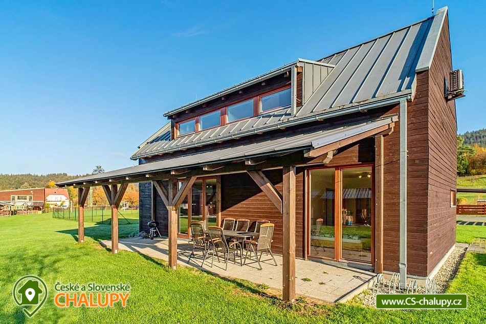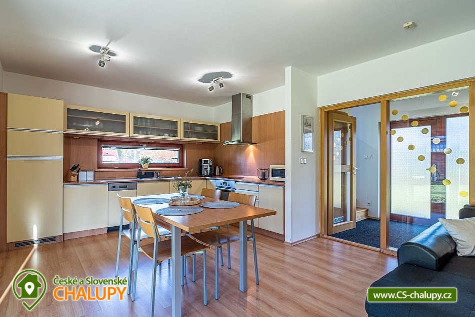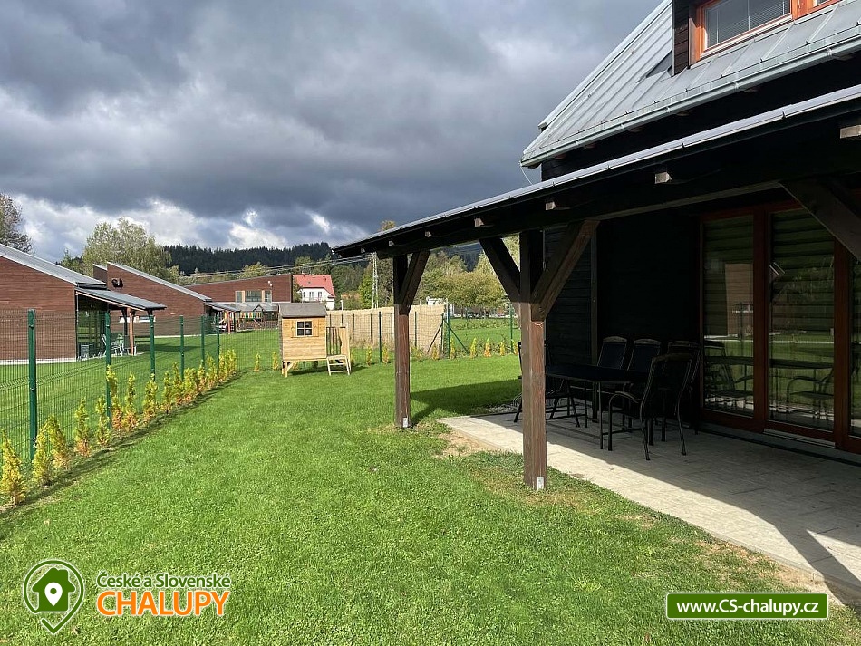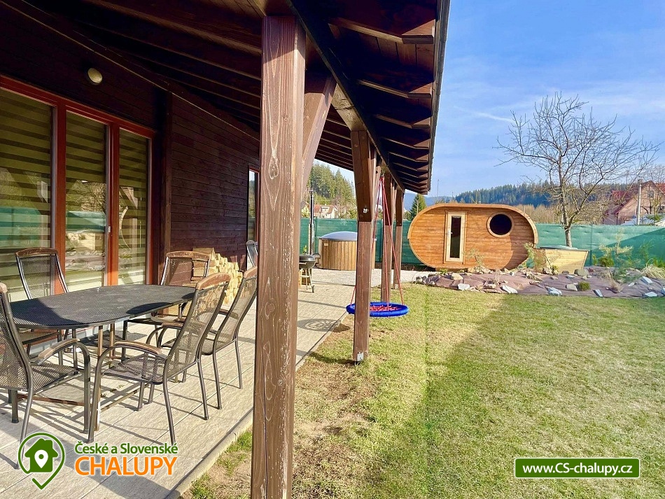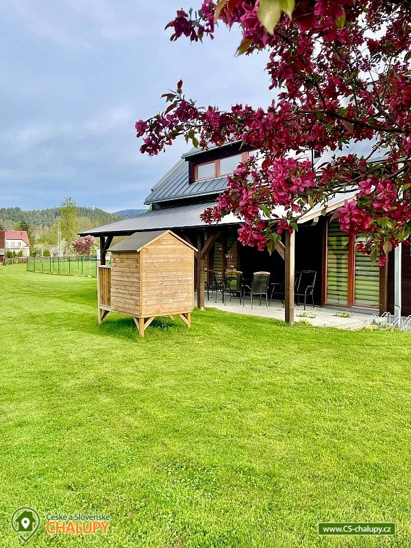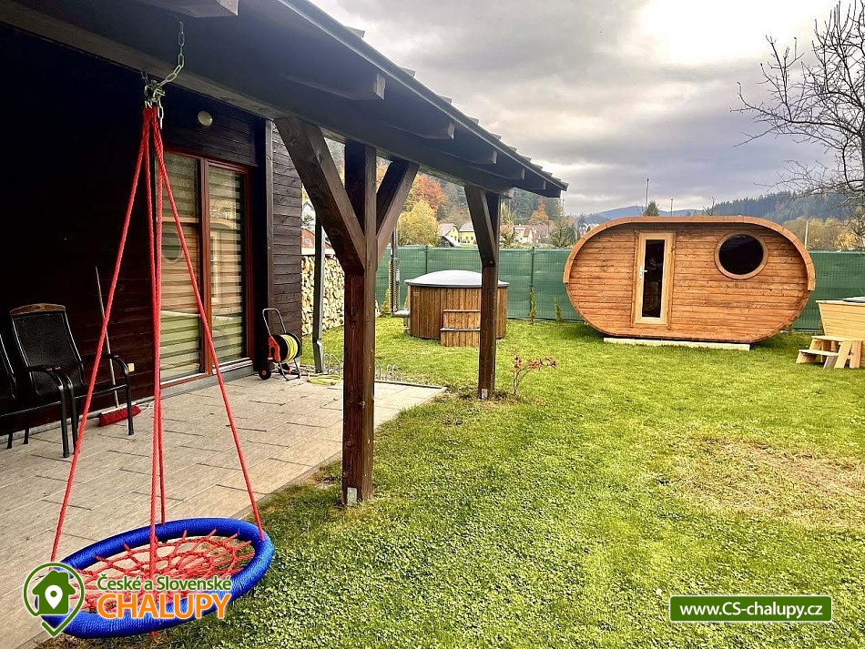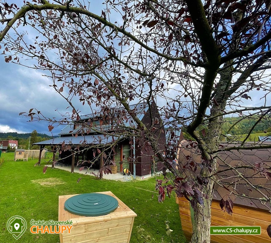 Wellness cottage Beskydy - sauna, whirlpool - Pustevny. The cottage is located in the beautiful countryside of the Beskydy Protected Area, in the village of Horní Bečva and near the towns of Rožnov pod Radhoštěm and Frenštát pod Radhoštěm. It is part of the Bečva resort, where you can spend an active holiday or a holiday full of rest and relaxation. The cottage offers accommodation for 10 people in three bedrooms (1 double, 2 triple) and also the possibility of two extra beds in triple bedrooms. Possibility of renting a cot. There is a living room with a sofa, TV, dining table and also access to the terrace. The fully equipped kitchen includes dishes, a refrigerator, a freezer, a charcoal grill, a microwave, an electric kettle, a dishwasher with tablets, a convection oven, a ceramic hob, a tea set, a toaster, a Delonghi coffee maker with a full container of good coffee, a jar for dishes, tea towels and basic equipment such as salt, pepper, oil, spices, etc.). There is also a high chair, a vacuum cleaner, a clothes dryer, towels and bath towels. There is a laundry room on site, where you can use a washing machine and dryer for a small fee. The sanitary facilities include two bathrooms (one with a shower, the other with a bathtub) and 2 toilets. The cottage has Wi-Fi and air conditioning. The property is heated by air conditioning and a gas boiler. Parking is possible directly at the cottage on private land for 2 cars. Possibility to park more cars on site and the possibility of charging an electric car. The cottage has a covered terrace with seating, a grill, a fireplace and a wellness area with a hot tub and a Finnish sauna. There is a children's playground with swings, a slide, climbing frames, a trampoline and a sandpit. In the area around the cottage you can go hiking, cycling, mushroom picking, swimming, or skiing and cross-country skiing. Swimming options: Biotope Bečva, Horní Bečva dam, Hutisko-Solanec swimming pool, Vigantice swimming pool, Velké Karlovice swimming pool, Rožnov pod Radhoštěm swimming pool, Water World Velké Karlovice aquapark, Rožnov pod Radhoštěm swimming pool, Velké Karlovice thermal pools. Tips for trips: Statue of Radegast and Radhošť peak, Pustevny, Tarzanie mountain rope park in Trojanovice, Jurkovič lookout tower in Rožnov pod Radhoštěm, Tarzanie - mountain rope park and the Wallachian open-air museum. Nearby ski resorts: Pod Soláněm, Rališka, Kociánka, Pustevny, Solisko, Mečová, Soláň, Kubiška, Soláň - Bzové, U Sachovy studánky and others. We look forward to seeing you at our place.