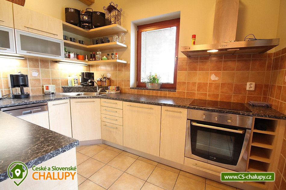 Wellness cottage under Hostýn - Chvalčov. Accommodation cottage with whirlpool Bystřice pod Hostýnem. Rental cottage Hostýnské vrchy - Kroměřížsko. On the ground floor of our chalet there is an entrance hall, fully equipped kitchenette (ceramic hob and electric oven, microwave, refrigerator, dishwasher, coffee maker, kettle, toaster, toaster), bar and living room: dining table with seating , Fireplace, TV + SAT, DVD player and radio. Upstairs there are 2 bedrooms: the first with 4 beds (2x double bed) and TV, the other with 4 beds (1x double bed and 1 bunk bed) with 1 extra bed (pull-out bed under the double bed). There is a bathroom with shower, washing machine, 2x toilet and cot. The heating is in the building and the fireplace in the living room. The cottage includes 2 loggias and a partly roofed terrace with a seating area. On the fenced plot there is an outdoor whirlpool with year-round operation (1,2 x 1,4 m for up to 4 persons), garden furniture with outdoor seating, grill and playground: trampoline, slide, swing, climbing frame and sandpit. Parking is available directly at the property. Bystřice pod Hostýnem is located southeast of Přerov. At the peak of Hostýn, under which the cottage is situated, a lookout tower was built, with views of the peaks of the surrounding hills and the towns spread over the valley. The Bystřička river runs through the town. Near the town of Bystrice are sought after recreational centers Tesák and Troják with ski resorts. Approximately 300 m from the cottage is the Harmonice restaurant (swimming pool, whirlpool, countercurrent, sauna, whirlpool bath, massage jets) or about 500 m wagon (playground, local tramp specials). There are also shops, a city swimming pool, minigolf, tennis court, squash and bowling.