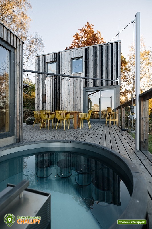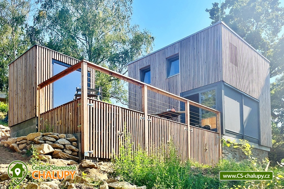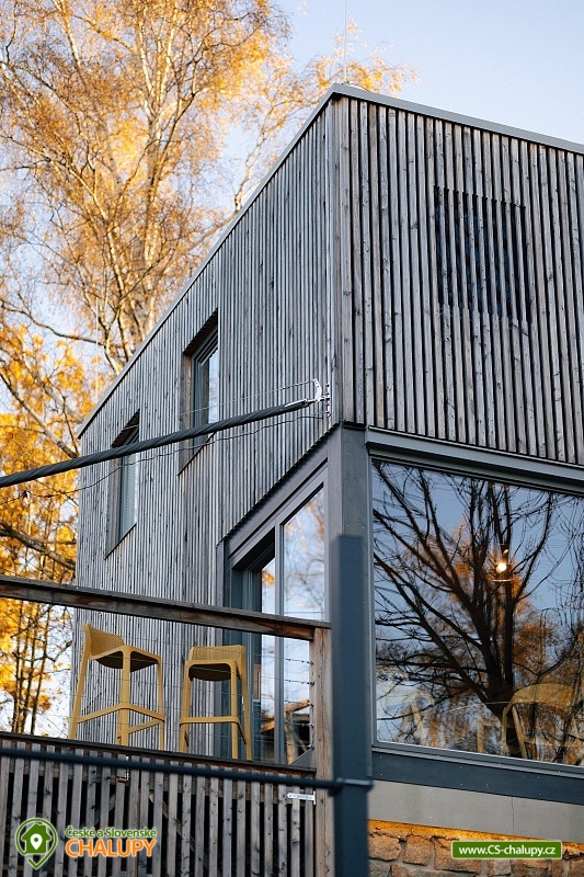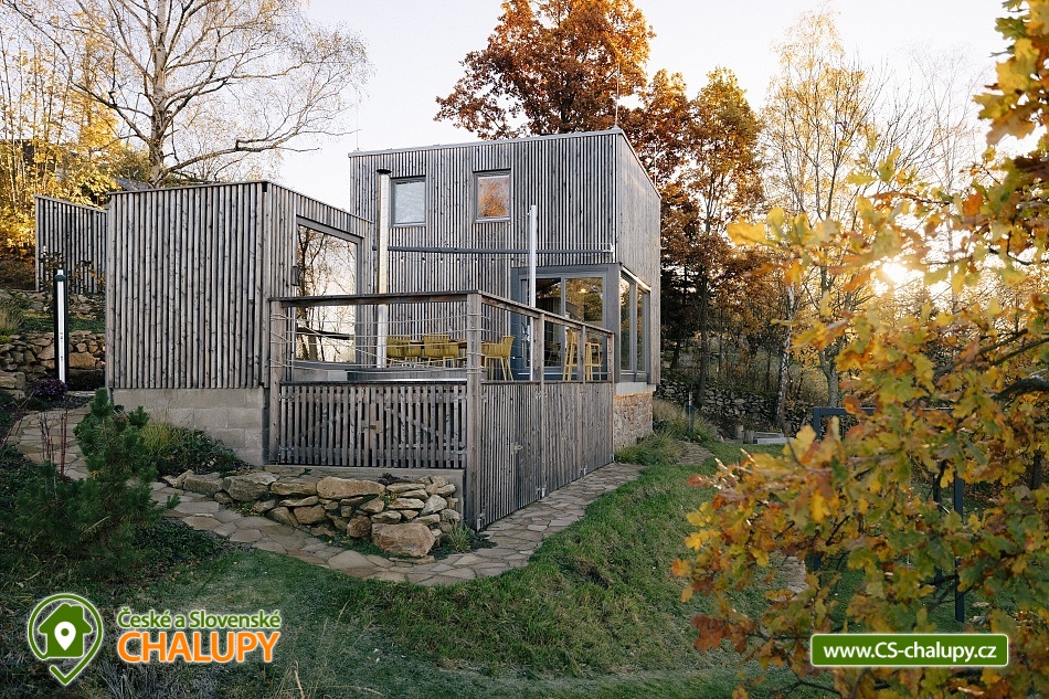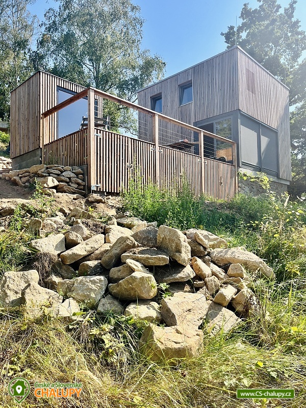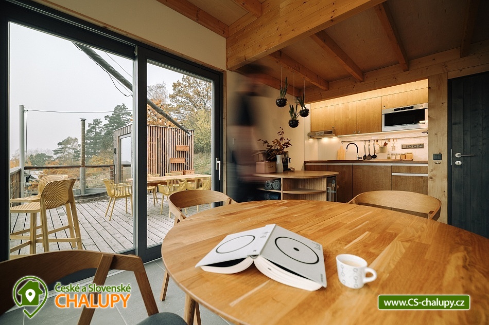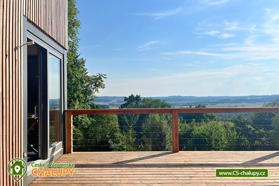 Luxusní designová glamping chata s nádherným výhledem do přírody a vlastním wellness - sauna a horký koupací sud u hradu Lipnice. Poloha chaty: jižní svah v malebné obci Lipnice nad Sázavou, u měst Havlíčkův Brod, Světlá nad Sázavou a Humpolec. Kapacita chaty je 5 osob ve dvou klimatizovaných ložnicích (1x dvoulůžková a 1x třílůžková). K dispozici je také skládací dětská postýlka. Obývacímu pokoji dominují panoramatická okna s venkovními roletami, jídelní stůl s pohodlnými židlemi a s dětskou židličkou na vyžádání. Za kamny je poležení, odkud můžete pozorovat krajinu za okny, odpočívat u knížky, či sledovat oblíbené televizní pořady (Disney+ a Oneplay Extra Sport). V plně vybaveném kuchyňském koutu naleznete nejen indukční vařič, lednici, myčku nádobí, mikrovlnnou troubu, rychlovarnou konvici, kávovar, výrobník ledu, vinotéku, remosku na pečení, ale i základní suroviny jako olej, cukr, mouku, sůl, pepř, kávu a čaje. Sociální zařízení zahrnuje koupelnu se sprchovým koutem, umyvadlem, vestavěnou pračkou a sušičkou. WC je oddělené. V celé chatě je podlahové topení, ale pro pocit pohody a příjemnou atmosféru si můžete zatopit i v kamnech. Z chaty se vychází přímo na rozlehlou terasu s barovými židličkami, venkovním jídelním stolem s křesílky a vestavěným koupacím horkým sudem. Před sluncem či mírným deštěm je terasa krytá navinovací plachtou. Naproti chatě je sauna s krásným výhledem. Od jara do podzimu je k dispozici také venkovní sprcha a plynový gril. Níže pod terasou je houpačka s hrazdou, vedle chaty také ohniště, kde si můžete opéct buřty, nebo jen tak sedět s drinkem a koukat do plamenů. Parkování cca 25 m od objektu. V okolí se můžete věnovat turistice, cykloturistice, houbaření a koupání. Tipy na výlety: Hrad Lipnice nad Sázavou, Haškův památník a hostinec U České koruny, Návštěvnické centrum Bernard, Zřícenina hradu Orlík, Zámek Světlá nad Sázavou, Skanzen Zichpil v Humpolci, Hrad Ledeč nad Sázavou, Včelí naučná stezka, Klášter Želiv. Možnosti koupání: lom Lipnice nad Sázavou, lom Trojka Lipnice, rybník Ředkovec, rybník Kachlička, Kouty - rybník Homole, koupaliště Humpolec - Žabák , Plačkovský rybník Pařezáč, lom Pavlov u Herálce, koupaliště Havličkův Brod, bazén Havlíčkův Brod, atd. V zimním období jsou k dispozici blízká lyžařská střediska Kadlečák a Melechov. Těšíme se na Vás u nás.