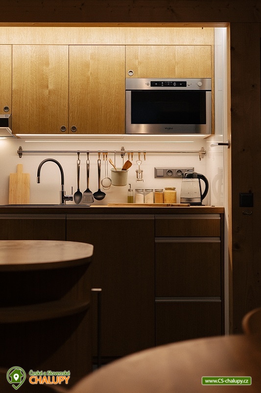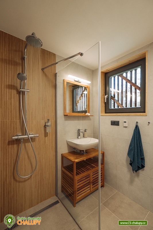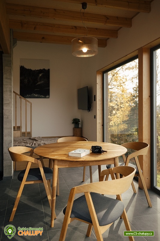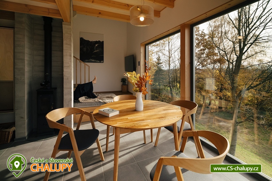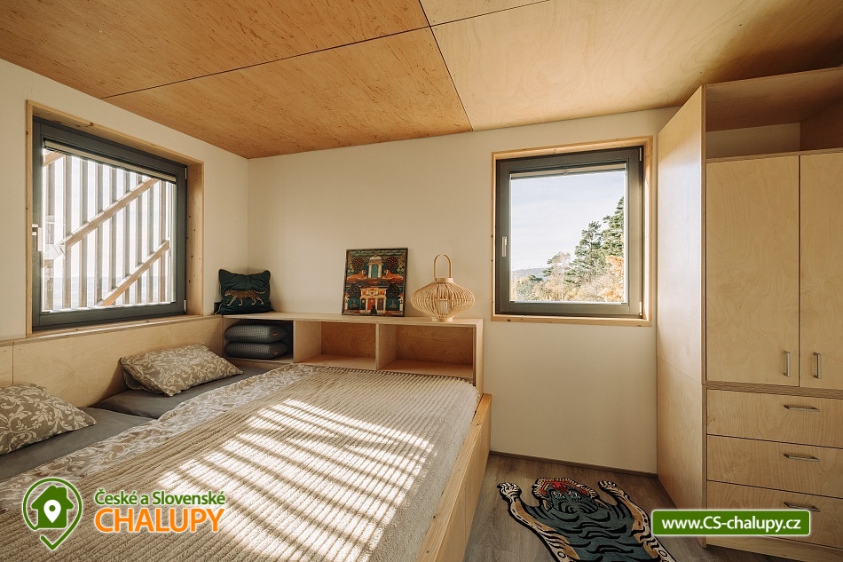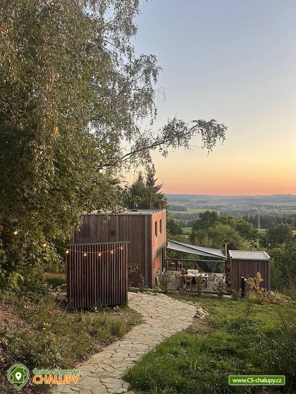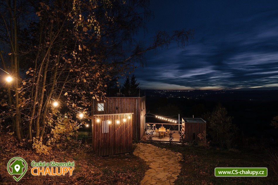 Luxusní designová glamping chata s nádherným výhledem do přírody a vlastním wellness - sauna a horký koupací sud u hradu Lipnice. Poloha chaty: jižní svah v malebné obci Lipnice nad Sázavou, u měst Havlíčkův Brod, Světlá nad Sázavou a Humpolec. Kapacita chaty je 5 osob ve dvou klimatizovaných ložnicích (1x dvoulůžková a 1x třílůžková). K dispozici je také skládací dětská postýlka. Obývacímu pokoji dominují panoramatická okna s venkovními roletami, jídelní stůl s pohodlnými židlemi a s dětskou židličkou na vyžádání. Za kamny je poležení, odkud můžete pozorovat krajinu za okny, odpočívat u knížky, či sledovat oblíbené televizní pořady (Disney+ a Oneplay Extra Sport). V plně vybaveném kuchyňském koutu naleznete nejen indukční vařič, lednici, myčku nádobí, mikrovlnnou troubu, rychlovarnou konvici, kávovar, výrobník ledu, vinotéku, remosku na pečení, ale i základní suroviny jako olej, cukr, mouku, sůl, pepř, kávu a čaje. Sociální zařízení zahrnuje koupelnu se sprchovým koutem, umyvadlem, vestavěnou pračkou a sušičkou. WC je oddělené. V celé chatě je podlahové topení, ale pro pocit pohody a příjemnou atmosféru si můžete zatopit i v kamnech. Z chaty se vychází přímo na rozlehlou terasu s barovými židličkami, venkovním jídelním stolem s křesílky a vestavěným koupacím horkým sudem. Před sluncem či mírným deštěm je terasa krytá navinovací plachtou. Naproti chatě je sauna s krásným výhledem. Od jara do podzimu je k dispozici také venkovní sprcha a plynový gril. Níže pod terasou je houpačka s hrazdou, vedle chaty také ohniště, kde si můžete opéct buřty, nebo jen tak sedět s drinkem a koukat do plamenů. Parkování cca 25 m od objektu. V okolí se můžete věnovat turistice, cykloturistice, houbaření a koupání. Tipy na výlety: Hrad Lipnice nad Sázavou, Haškův památník a hostinec U České koruny, Návštěvnické centrum Bernard, Zřícenina hradu Orlík, Zámek Světlá nad Sázavou, Skanzen Zichpil v Humpolci, Hrad Ledeč nad Sázavou, Včelí naučná stezka, Klášter Želiv. Možnosti koupání: lom Lipnice nad Sázavou, lom Trojka Lipnice, rybník Ředkovec, rybník Kachlička, Kouty - rybník Homole, koupaliště Humpolec - Žabák , Plačkovský rybník Pařezáč, lom Pavlov u Herálce, koupaliště Havličkův Brod, bazén Havlíčkův Brod, atd. V zimním období jsou k dispozici blízká lyžařská střediska Kadlečák a Melechov. Těšíme se na Vás u nás.