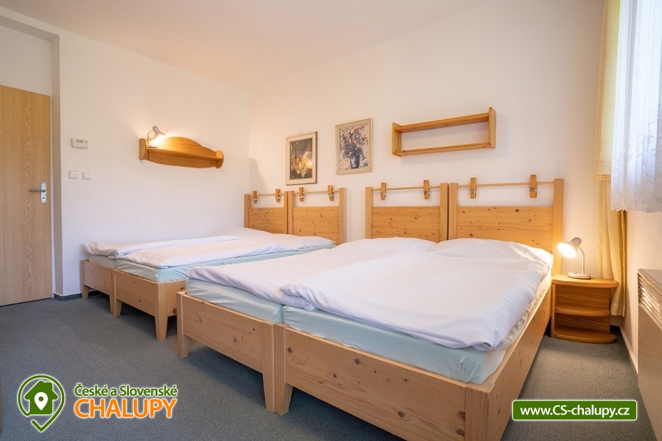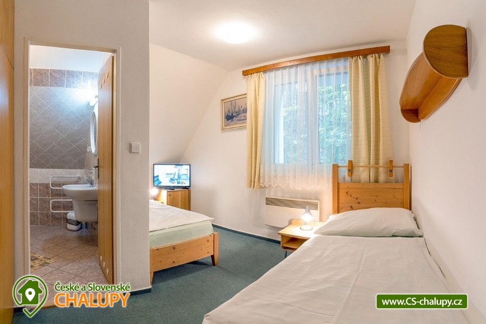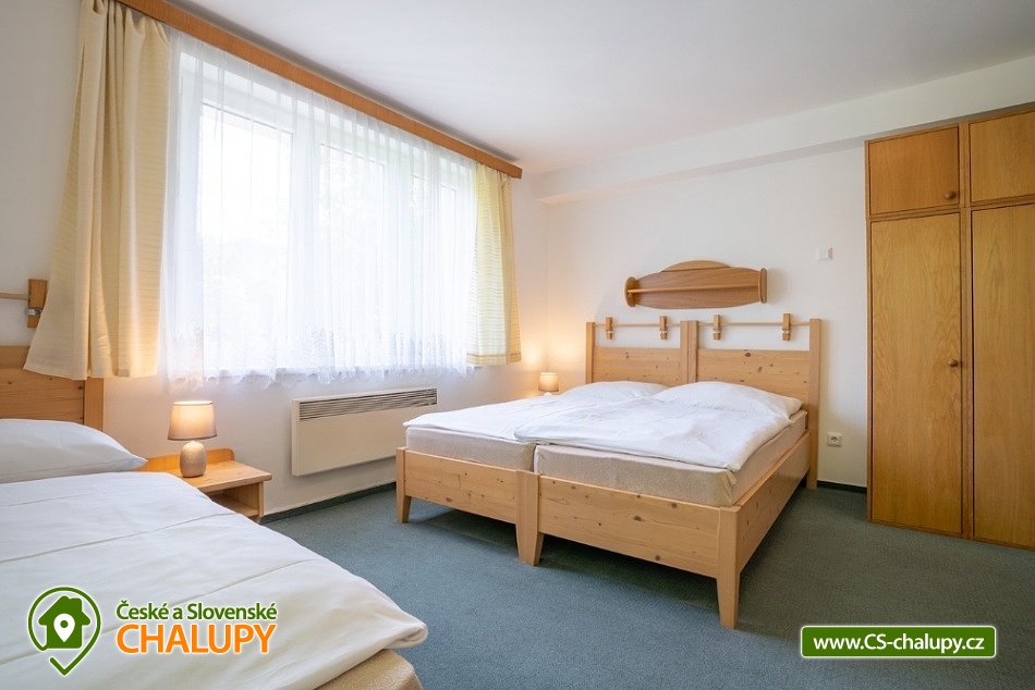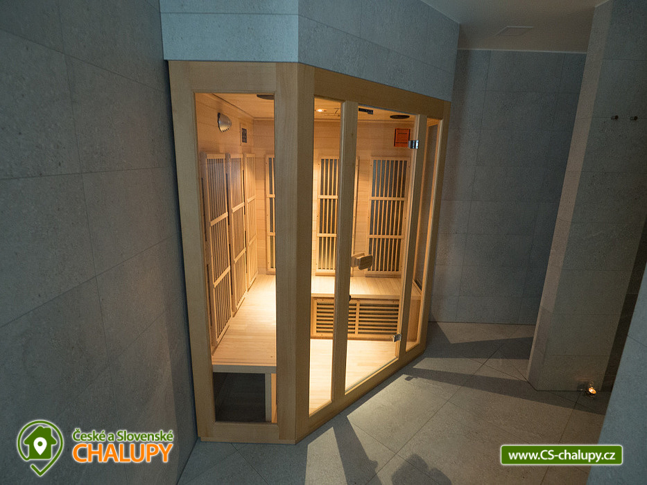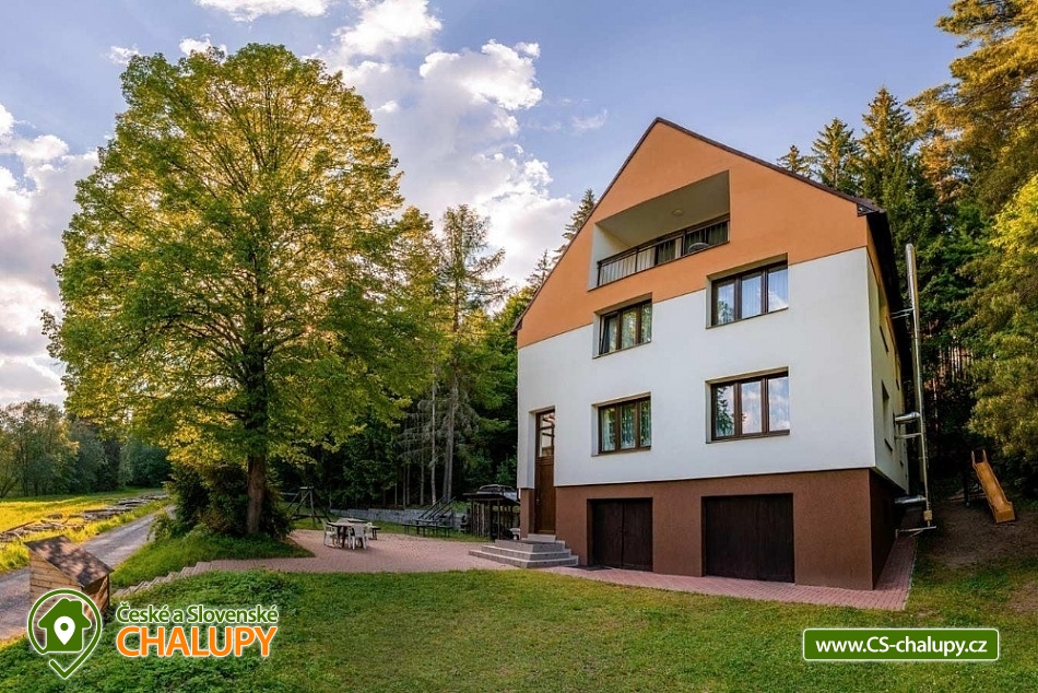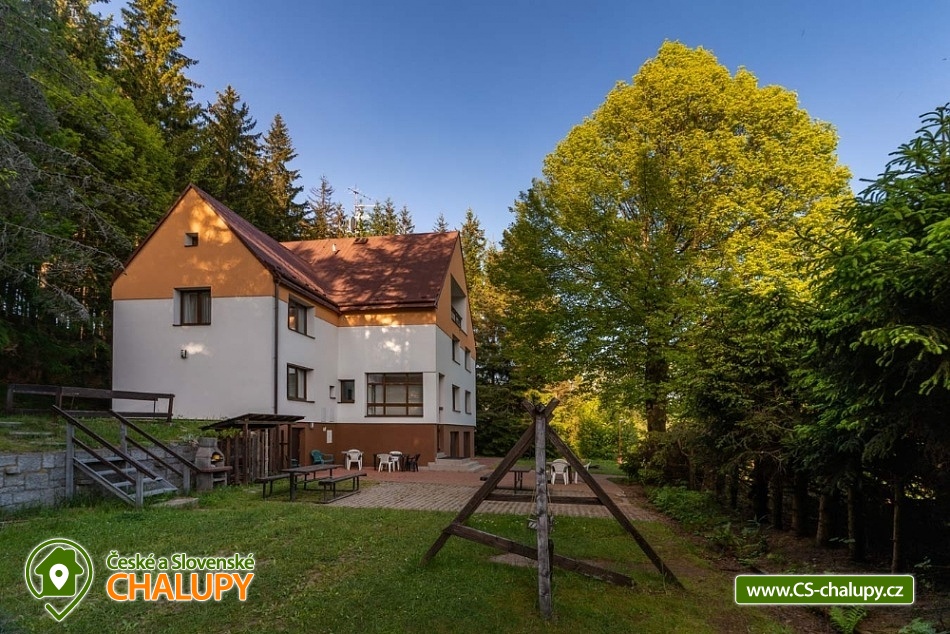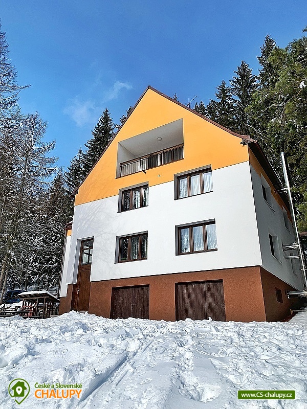 Wellness chata v lokalitě Hrubý Jeseník pod horou Praděd. K dispozici vlastní wellness - sudová sauna a vířivka. Celková kapacita chaty je až 30 osob: 9 pokojů - ke každému vlastní sociální zařízení. Chata je vybavená tak, aby se zde cítily dobře nejen rodiny s dětmi, ale i větší skupiny, které si pronajmou celý objekt na narozeniny, oslavu Silvestra nebo jinou soukromou akci. Všechny pokoje jsou prostorné, mají vlastní sociální zařízení se sprchovým koutem, vytápěnou podlahu, TV a Wi-Fi. Možnost dětské postýlky po dohodě. Součástí ubytování je zapůjčení ložního prádla. Je možný pronájem pouze celé chaty. Cena je stanovena fixně za celý objekt v závislosti na období a počtu obsazených nocí. V přízemí domu se nachází plně vybavená kuchyň s jídelnou a společenskou místností. Chata má vinárnu a pivní bar, ze kterého se vychází rovnou k ohništi. Ve vinárně se nachází vlastní pípa na pivo, stylové posezení a krb. Pro Váš relax můžete využít nové venkovní wellness přímo v chatě. Užijete si sudovou saunu a vířivku i příjemné posezení. Vytápění chaty je elektrickými přímotopy. Hosté chaty mohou využít veškeré sportovní a relaxační zázemí hotelu Kamzík, který je vzdálený 680 metrů: hotelové wellness centrum, vnitřní vyhřívaný bazén s venkovní terasou a malý whirlpool, velkou tělocvičnu, tenisový a badmintonový kurt, posilovnu, lanové centrum s dětským hřištěm před hotelem Kamzík, dětskou hernu a bowling. V létě: chata je ideálním výchozím bodem pro turistiku a cykloturistiku. Leží totiž u hlavní výchozí trasy do hor Hrubého Jeseníku - na Velký Kotel, Alfrédku a Praděd, kam od nás dojdete krásnou 8 km dlouhou vycházkou. Okolní lesy nadchnou také houbaře. Podívejte se na podrobnější tipy na výlety a koupání. V zimě: asi 200 m od chaty se nachází nejdelší sjezdovka Ski Arény Karlov, v centru obce pak další lyžařské svahy, parkování je zdarma. Na další oblíbená zimní střediska Ovčárna, Praděd a Ramzová jezdí z Karlova několikrát denně skibus. Hrubý Jeseník je známý i pro své nádherné běžecké trasy a např. do bílé stopy na Praděd nastoupíte přímo u chaty.