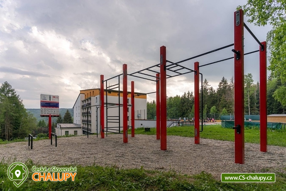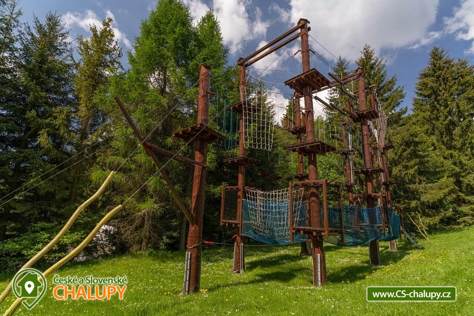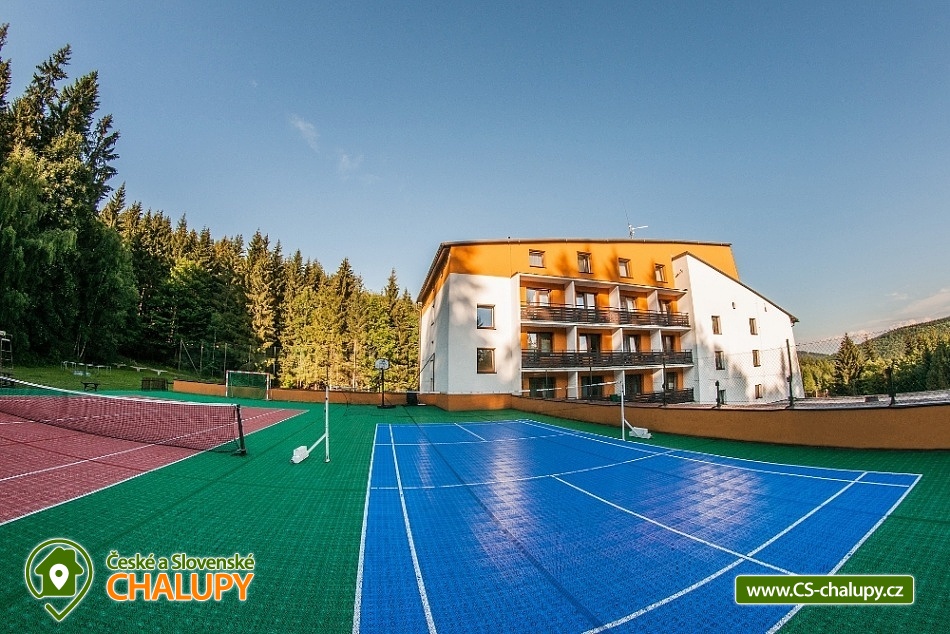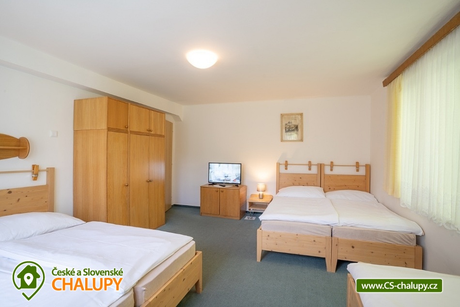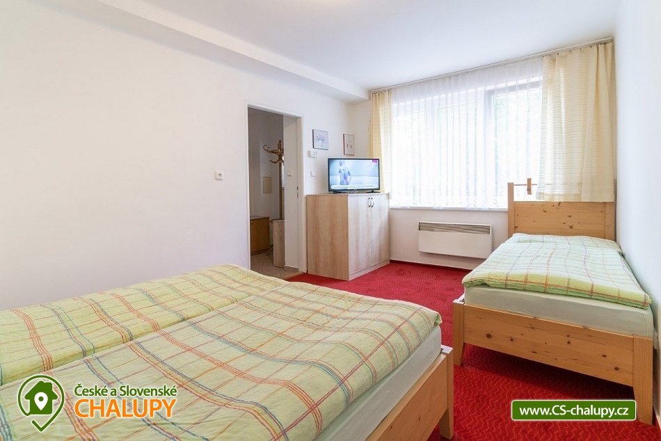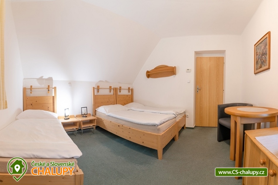 Wellness chata v lokalitě Hrubý Jeseník pod horou Praděd. K dispozici vlastní wellness - sudová sauna a vířivka. Celková kapacita chaty je až 30 osob: 9 pokojů - ke každému vlastní sociální zařízení. Chata je vybavená tak, aby se zde cítily dobře nejen rodiny s dětmi, ale i větší skupiny, které si pronajmou celý objekt na narozeniny, oslavu Silvestra nebo jinou soukromou akci. Všechny pokoje jsou prostorné, mají vlastní sociální zařízení se sprchovým koutem, vytápěnou podlahu, TV a Wi-Fi. Možnost dětské postýlky po dohodě. Součástí ubytování je zapůjčení ložního prádla. Je možný pronájem pouze celé chaty. Cena je stanovena fixně za celý objekt v závislosti na období a počtu obsazených nocí. V přízemí domu se nachází plně vybavená kuchyň s jídelnou a společenskou místností. Chata má vinárnu a pivní bar, ze kterého se vychází rovnou k ohništi. Ve vinárně se nachází vlastní pípa na pivo, stylové posezení a krb. Pro Váš relax můžete využít nové venkovní wellness přímo v chatě. Užijete si sudovou saunu a vířivku i příjemné posezení. Vytápění chaty je elektrickými přímotopy. Hosté chaty mohou využít veškeré sportovní a relaxační zázemí hotelu Kamzík, který je vzdálený 680 metrů: hotelové wellness centrum, vnitřní vyhřívaný bazén s venkovní terasou a malý whirlpool, velkou tělocvičnu, tenisový a badmintonový kurt, posilovnu, lanové centrum s dětským hřištěm před hotelem Kamzík, dětskou hernu a bowling. V létě: chata je ideálním výchozím bodem pro turistiku a cykloturistiku. Leží totiž u hlavní výchozí trasy do hor Hrubého Jeseníku - na Velký Kotel, Alfrédku a Praděd, kam od nás dojdete krásnou 8 km dlouhou vycházkou. Okolní lesy nadchnou také houbaře. Podívejte se na podrobnější tipy na výlety a koupání. V zimě: asi 200 m od chaty se nachází nejdelší sjezdovka Ski Arény Karlov, v centru obce pak další lyžařské svahy, parkování je zdarma. Na další oblíbená zimní střediska Ovčárna, Praděd a Ramzová jezdí z Karlova několikrát denně skibus. Hrubý Jeseník je známý i pro své nádherné běžecké trasy a např. do bílé stopy na Praděd nastoupíte přímo u chaty.
