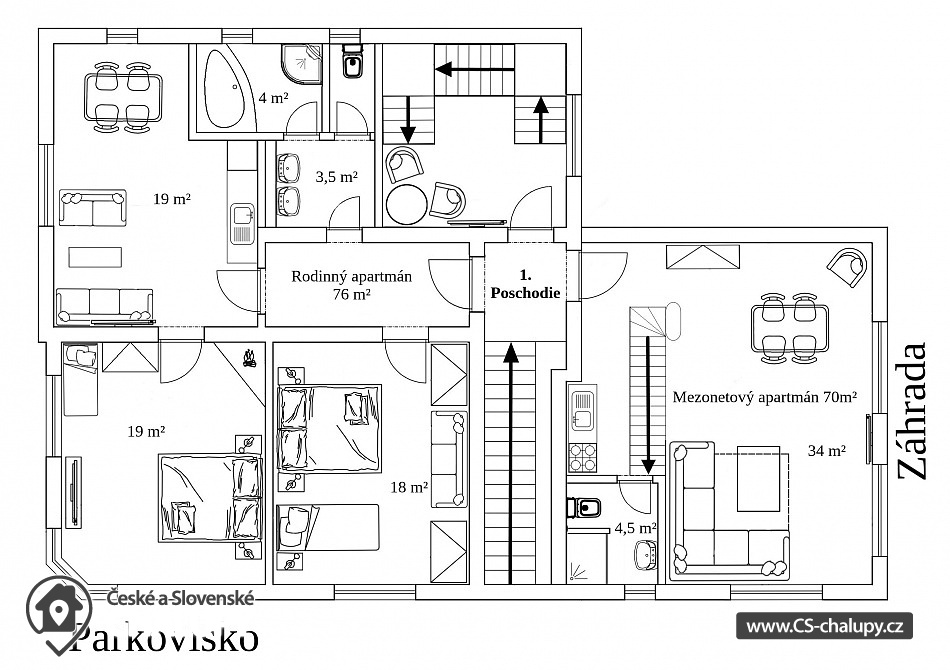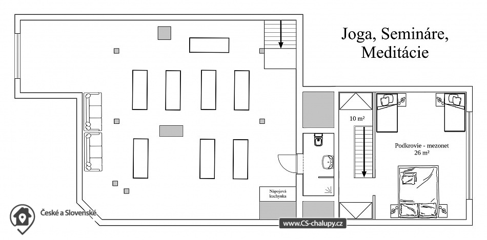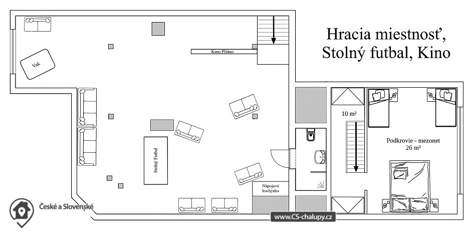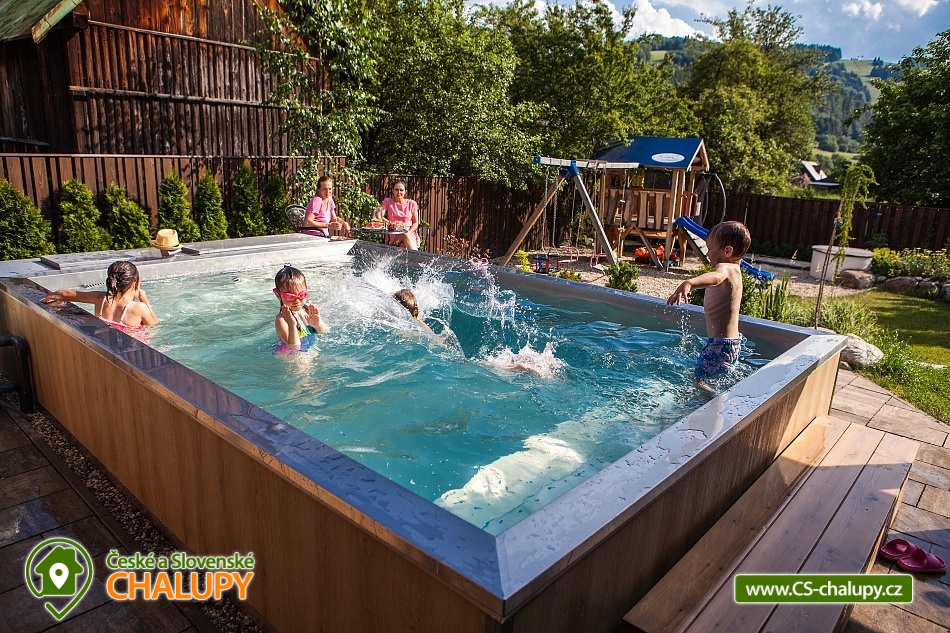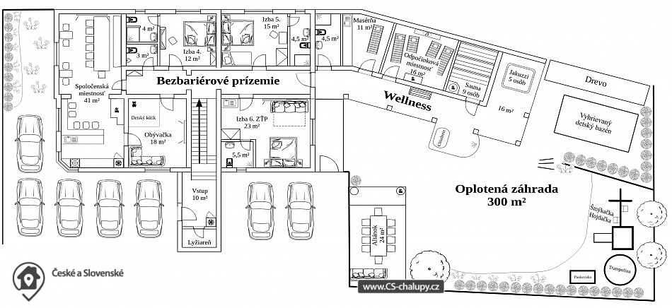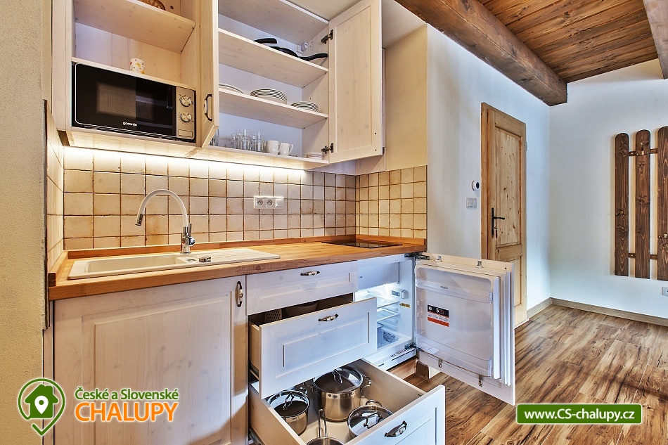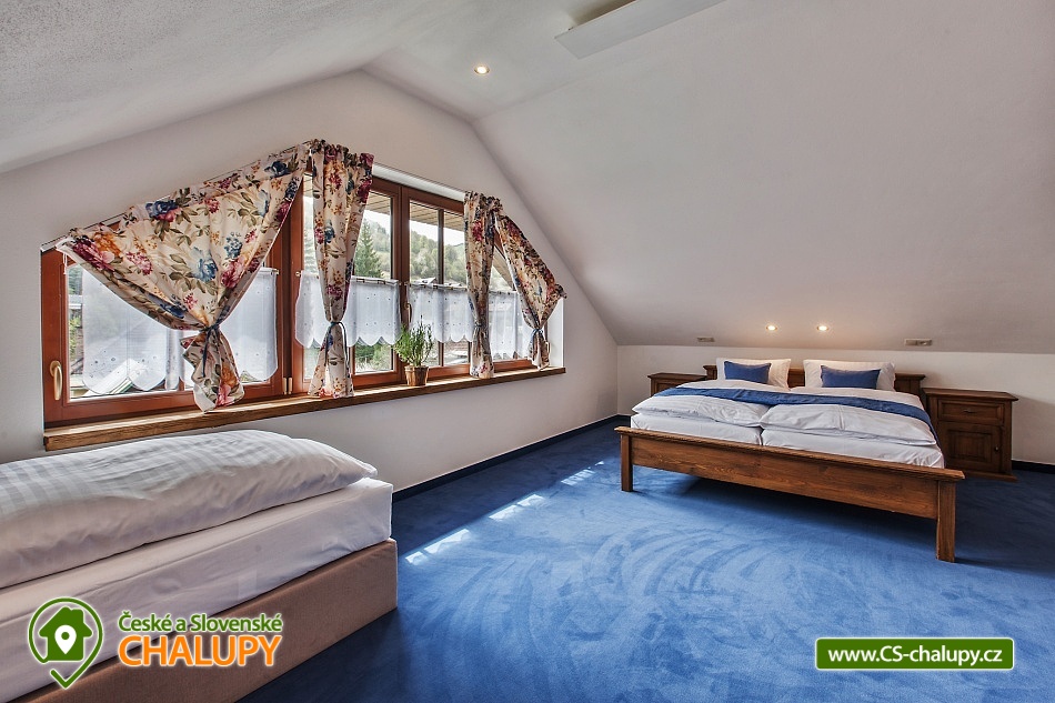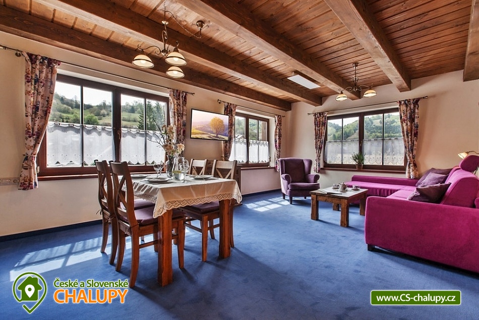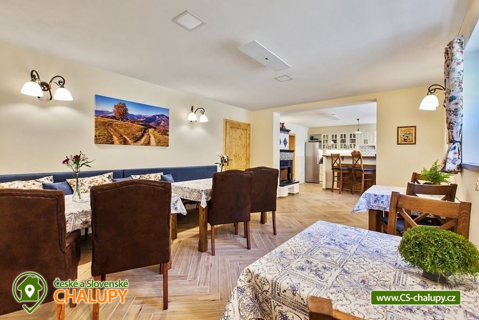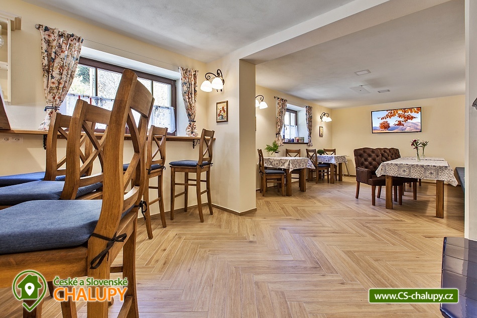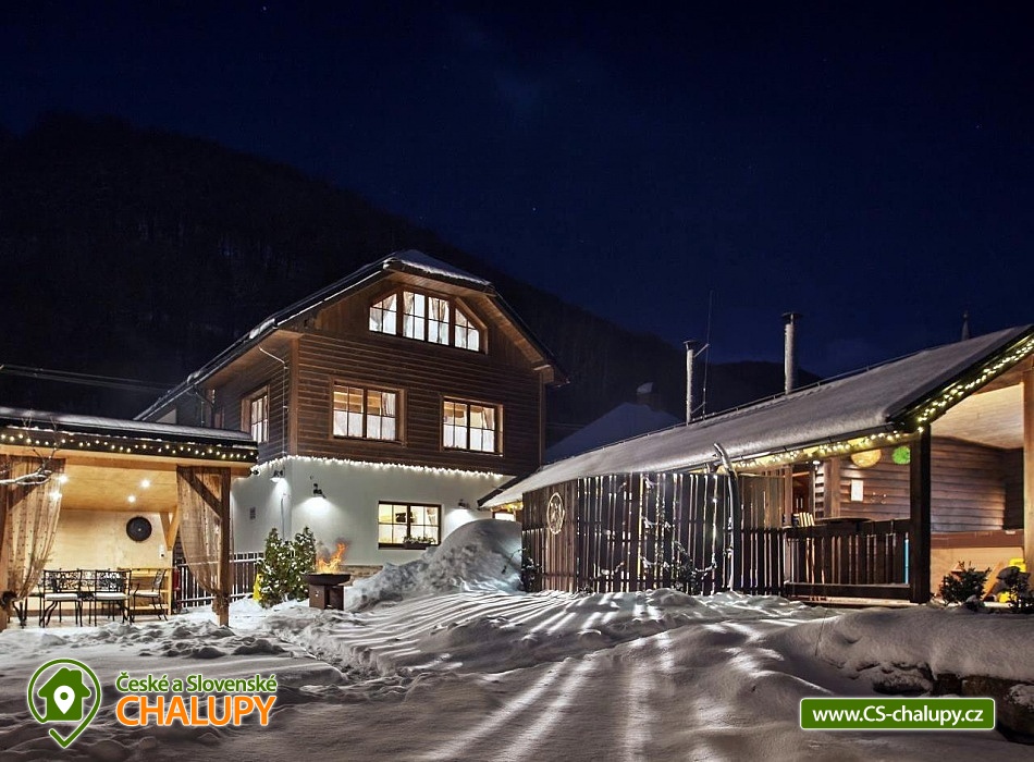 Wellness Horská Vílenka - Mýto pod Ďumbierom - Finnish sauna and whirlpool. We offer comfortable cottages for rent for up to 24 people. For most groups and families, the layout and layout of the rooms is very important. Therefore, we have adapted the overall space to groups with different composition, multi-generational families and companies with different requirements for comfort and privacy. In most cases, we rent the building as a whole and the following accommodation units are available to you: two 2-bed rooms, one 3-bed room, one 2-bed room with 2 extra beds and wheelchair access, a spacious 7-bed family apartment and a 6-bed maisonette bed apartment. You can spend time together in a large common room with a bar. The kitchen is equipped with an electric stove with an oven, a fridge with a freezer, a microwave oven, a kettle and a dishwasher. Mothers will also be pleased with the children's corner, which is equipped with toys and a separate TV. Children can thus play undisturbed or watch fairy tales. The entrance to the corner is directly from the kitchen. After an active day, relax in our wellness center with a Finnish sauna. It also includes a relaxation room with salt walls. A tiled stove and relaxing music create a pleasant atmosphere. We can also provide you with massage services. Within the accommodation you will also find a ski storage room with ski boot dryers. Each accommodation unit is equipped with its own television and bathroom with shower and toilet. In the 4-bed room, you will also find a kitchenette, which, thanks to the stove and refrigerator, will serve you to prepare breakfast or a quick dinner. The family apartment has two bedrooms. One 3-bed room with a double bed, a fixed bed and a fireplace stove, the other 3-bed room with a double bed, a fixed bed and an extra bed in the form of a sofa. In the family apartment, you can also use the fully equipped kitchen, where you will find a ceramic hob, electric oven, microwave oven, kettle and fridge with freezer. There is also a living room with a TV, a sofa and a dining area. The maisonette apartment is beautifully sunny and a peaceful sleep can be found here in the bedroom, where there is a double bed and two single beds. From the bedroom you go down the stairs to the living area. The sofa easily turns into an extra bed for two people at night. There is also a dining area. We have provided free Wi-Fi internet connection throughout the building. We have 4 cots and two high dining chairs available, which we will be happy to prepare for you upon agreement. Mýto pod Ďumbierom is a popular tourist and recreation area. You can easily pack your bike, high-altitude hiking boots or even Nordic walking poles and explore the Low Tatras. Together with the children, you can visit the Bystrian Cave or the Cave of Dead Bats, climb the ropes in Tarzánia or visit the Forest Open-Air Museum in Vydrov.