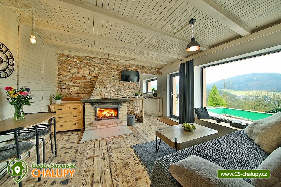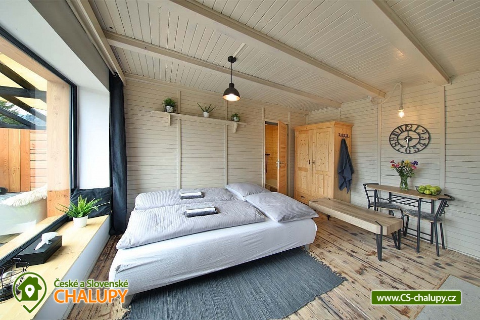 Wellness chata pro dva - Český ráj - ubytování se saunou a koupacím jezírkem - Malá Skála - Vranové. Nabízíme ubytování pro max. 2 osoby v klidné části obce Malá Skála. Chata nabízí nádherný výhled na skály, pohodlné posezení u jezírka s rybičkami, poležení v hamace, odpočinek v sauně nebo u sálajícího krbu - prostě pohoda za každého počasí. V kuchyni najdete vše, co na chatě potřebujete - sklokeramickou desku, odsavač, lednici, mikrovlnnou troubu, topinkovač, rychlovarnou konvici, kávovar a navíc udírnu. V chatě je pohodlná rozkládací pohovka pro dvě osoby. Ubytování je opravdu pro maximálně dvě osoby - nevolejte prosím, že se tři vejdete - třetí postel není kam dát. Ručníky, povlečení ani utěrky s sebou neberte, ty už máte připravené. Topíte si sami - v obývacím pokoji v krbu, v sauně v kamnech. Dřevo je u chatky. Parkování je na pozemku na velkém vydlážděném parkovišti. V blízkosti je půjčovna kol, lodí, koloběžek, koupání přímo v řece, cyklostezka Greenway Jizera z Dolánek u Turnova do Malé Skály a Líšného, zřícenina hradu Vranov - Pantheon, zřícenina hradu Potštejn, hrad Frýdštejn, zámek Sychrov, zámek Hrubý Rohozec, Žlutá plovárna nebo například lanové centrum. Těšíme se na Vás u nás.