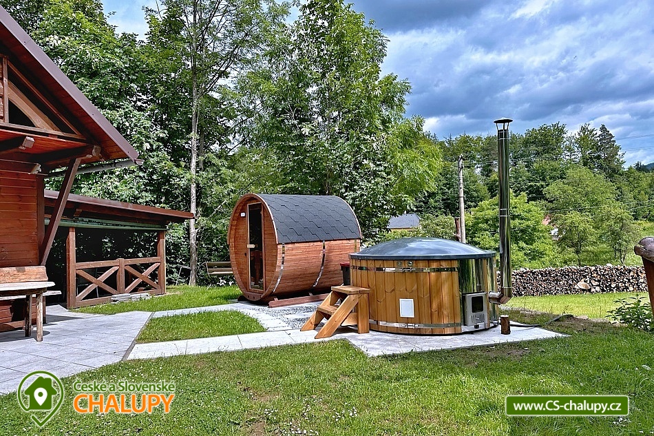 „Wellness chata Rychlebské stezky - sauna a koupací sud - hrad Kaltenštejn“