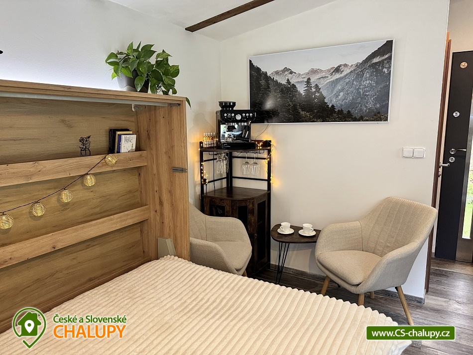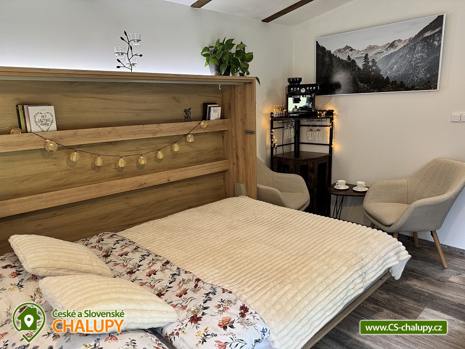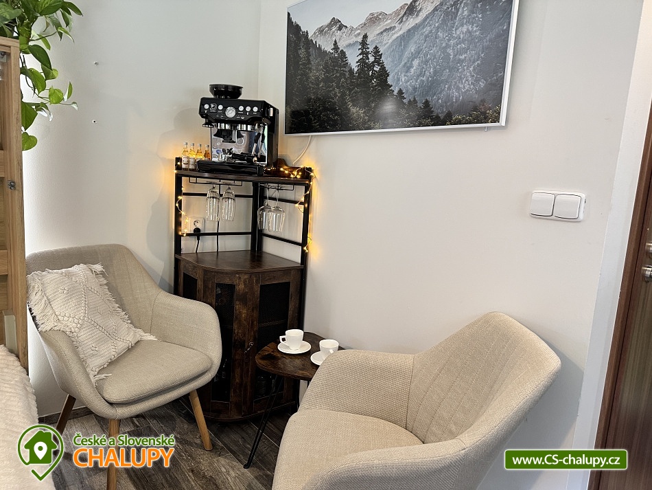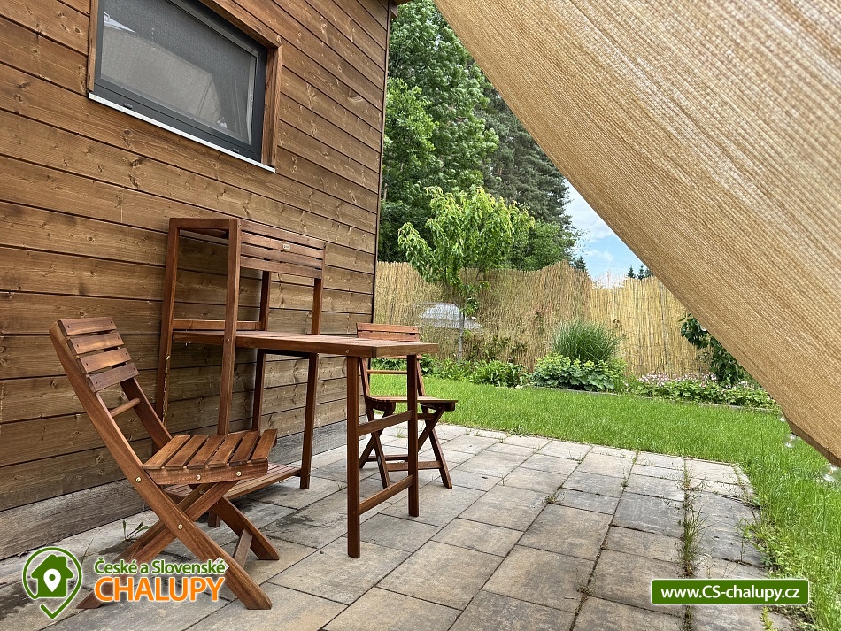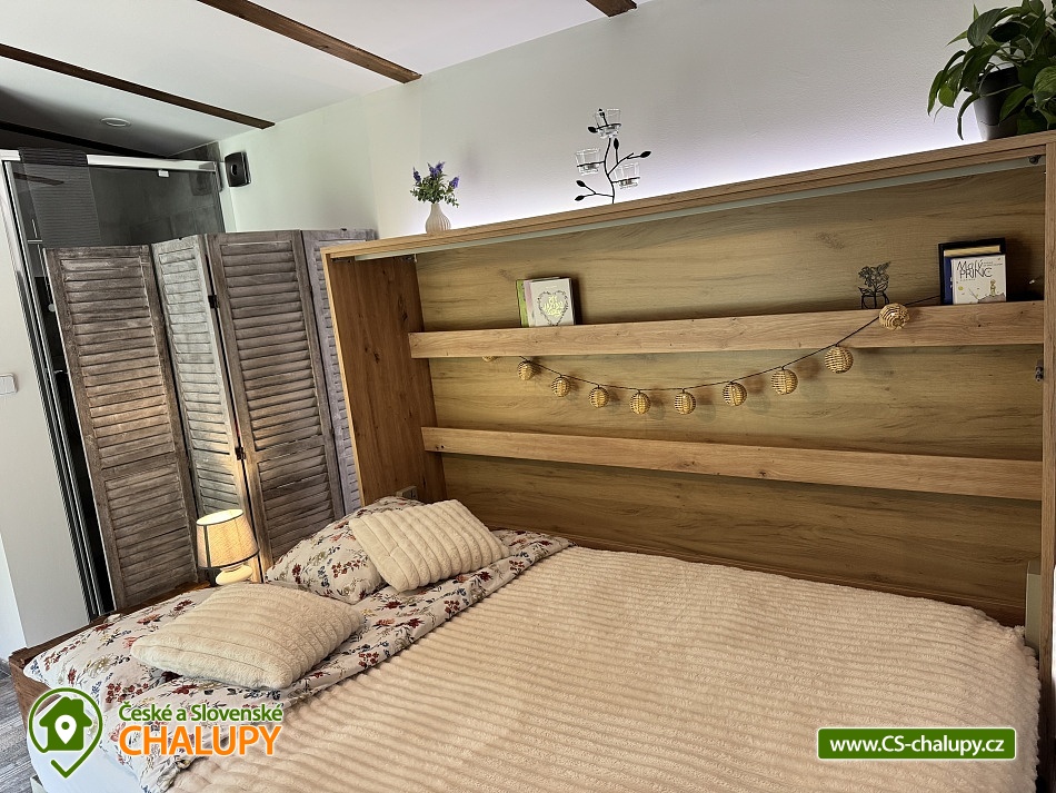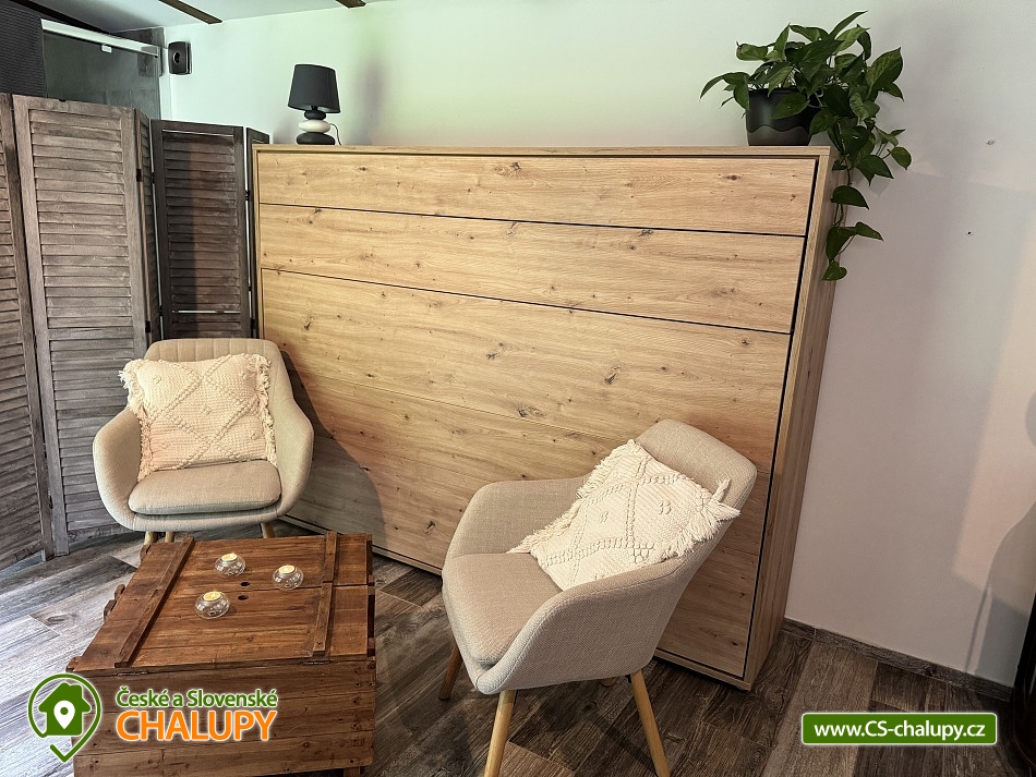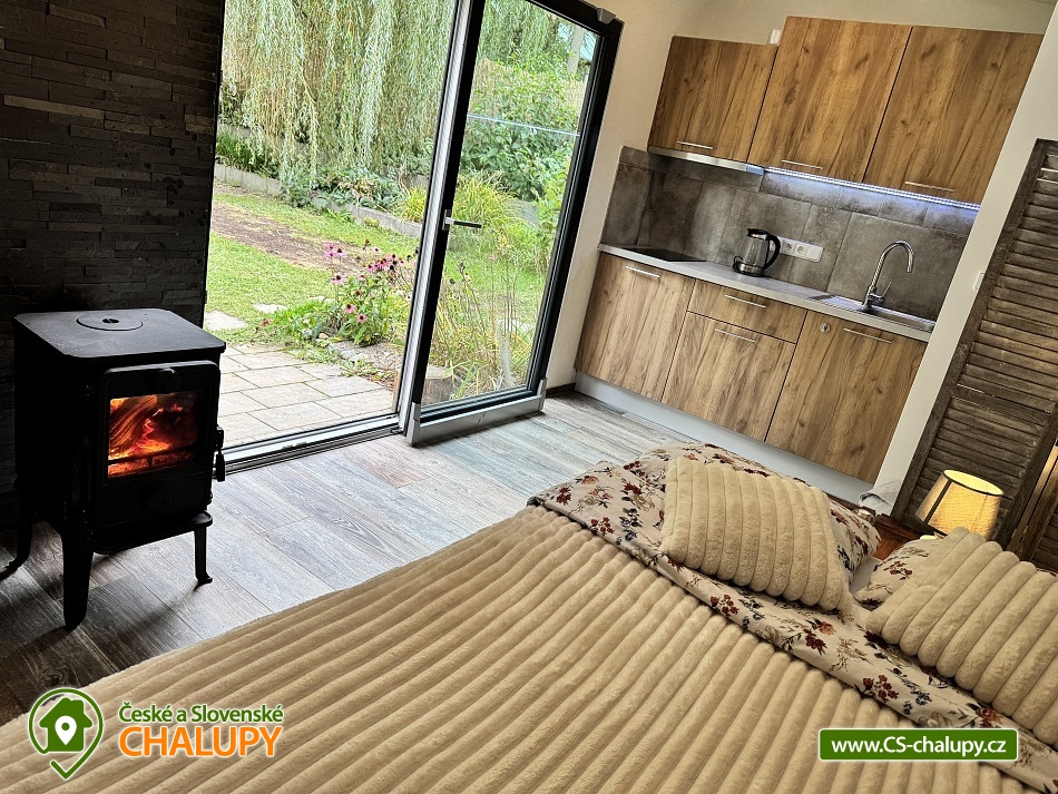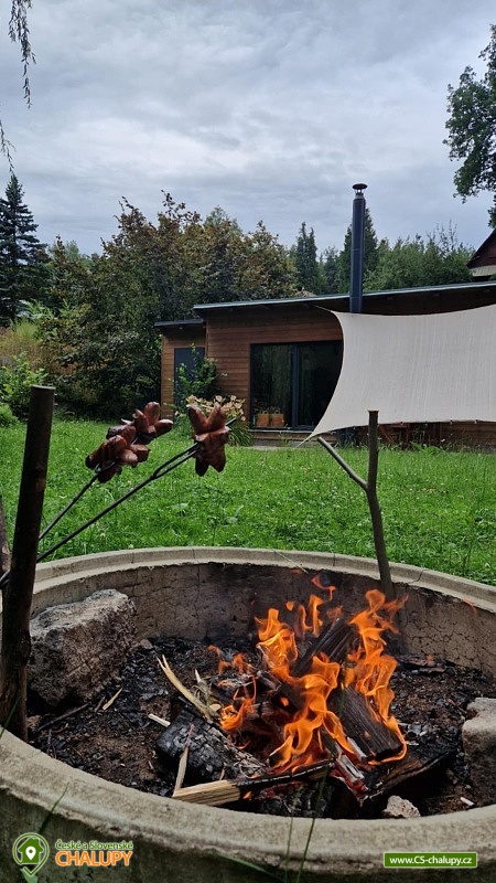 Wellness cottage by the forest - Křivoklátsko - Beroun is located in the village of Chyňava, near the towns of Beroun, Kladno and Hostivice. Chillzóna u Medojeda is a cozy stylish cottage that lies on the edge of the Křivoklátské lesy and offers quiet accommodation for 2 people. There is one living room with a sofa bed for 2 people, a fireplace, an equipped kitchenette (dishes, kettle, hob, fridge, coffee maker), a self-service bar with quality drinks and small snacks that will make every evening more pleasant. For coffee lovers, there is a coffee machine, thanks to which they can enjoy a cup of first-class coffee at any time of the day. The sanitary facilities include a bathroom with a shower and a toilet. There is also a barrel sauna and a hot tub with a view of the garden, which complete the perfect wellness experience under the open sky. You also have a grill, a fireplace, a garden swing and a terrace with seating and the possibility of covering it. There is a garden lockable house on the property, in which all the necessary tools for grilling and roasting are stored. The cottage also has Wi-Fi access. Parking is possible directly at the object, which can be reached via a forest path. If you drive from the direction of Beroun, the navigation shows a turnoff between the fields. However, this access road is unmaintained and we do not recommend driving there. You need to drive from the bottom of Dědkov Mlýn, see the photo and instructions in the gallery. There is a possibility of hiking, cycling and mushroom picking in the vicinity of the Chillzóna. Swimming options: Kladno swimming pool, Beroun aquapark, Kladno swimming pool - u Sletiště, Kladno aquapark. Trip tips: Lhotka lookout tower, Karlštejn castle and zoopark, Křivoklát castle, city bear park in Beroun, Tetín castle ruins, Alkazar limestone quarry, Bubovické waterfalls, Amerika limestone quarries. We look forward to seeing you there.