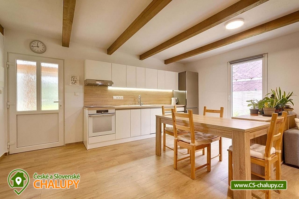 Wellness chata u lesa - rybník Komorník - jižní Čechy. Chata je ideální místem pro klidnou dovolenou s rodinou či přáteli. Nachází se v krásné přírodě v obci Leština u Strmilova a nedaleko měst Jindřichův Hradec a Telč. Jen kousek (cca 150m) od chaty se nachází oblíbený rybník Komorník s písčitým dnem, ideální pro koupání a vodní sporty. Chata nabízí ubytování pro 22 osob ve čtyřech ložnicích. Přízemí: Obývací pokoj - místnost určená pro posezení všech ubytovaných, posezení, krbová kamna, jídelní sestava, rozkládací sedačka (s možností 2 x dvoulůžko), kuchyně. Ložnice A - dvoulůžkový pokoj s možností přistýlky. Koupelna s toaletou (společná pro obývací pokoj a ložnice A). První patro: Ložnice B - dvoulůžkový pokoj s možností přistýlky. Ložnice C - rozkládací sedačka (s možností 2 x dvoulůžko), koupelna s toaletou (společná pro ložnici B a C, D). Ložnice D - moderní paletové spaní dvoulůžkové (6 lůžek) a jednolůžkové (4 lůžka). Další možné přistýlky jsou v podobě matrací s lůžkovinami. Sociální zařízení: 2x koupelna se sprchovým koutem a WC. K dispozici jsou také dětské postýlky a Wi-Fi připojení. V kuchyni najdete vybavení jako je: sklokeramická deska, el. trouba, lednička, mikrovlnná trouba, myčka, rychlovarná konvice, kuchyně s jídelním stolem. Objekt je vytápěn ústředním topením. Parkování možné přímo u objektu. K chatě náleží velká terasa pro posezení a relaxaci, wellness (finská sauna, vířivka) s venkovní koupací kádí a bazénem. K dispozici je také prostorná osvětlená pergola s grilem, dětské hřiště, ohniště. K objektu náleží oplocená zahrada. Možnost úschovy kol. V okolí se můžete věnovat turistice, cykloturistice, koupání, houbaření. Tipy na výlety: Skalní útvar Ďáblův chléb, Vysoký kámen, rozhledna u Jakuba, Zámek Žirovnice, Chadimův mlýn, zámek Jindřichův Hradec, hrad Landštejn, Zoopark na Hrádečku. Možnosti koupání: rybník Komorník, aquapark Jindřichův Hradec, koupaliště Dačice. Lyžování: lyžařský vlek Mrákotín, Dolní Radíkov, Ski Bystřice. Těšíme se na Vás u nás.